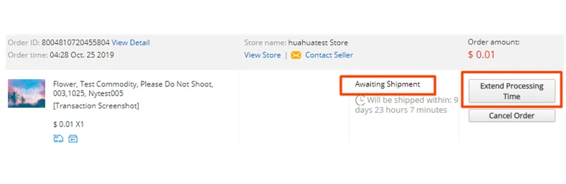 If you want to extend an order’s Processing Time, please follow the below steps: