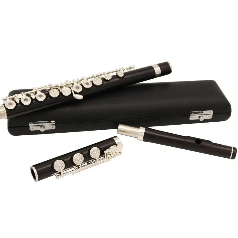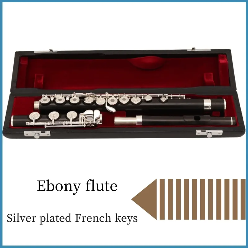 Ebony Flute Open Hole Silver Plated French Keys Grenadilla Wood Body w/ Case
