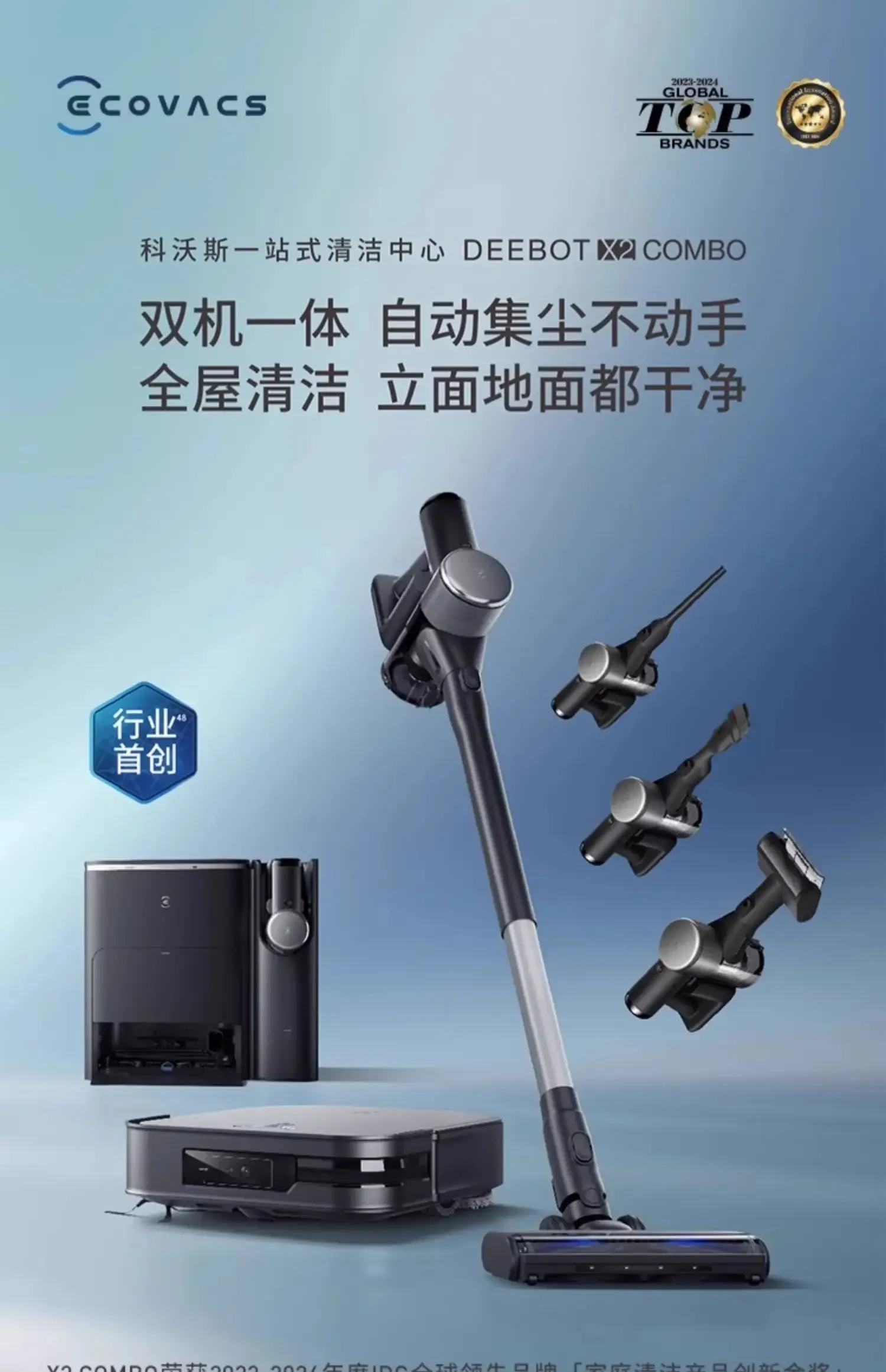 ECOVACS X2 COMBO 8700pa Base Station Vacuum Cleaner Automatic Cleaning Dust Collection 60°C Hot Water Washing Mop Plumbing