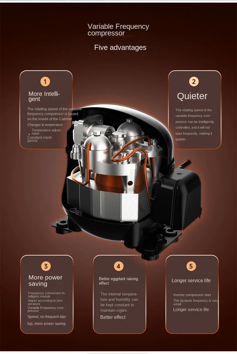 Electric Cigar Humidor Cedar Wood Shelf Compressor Water Tank Control Temperature Humidity Wifi Fingerprint unlocking Humidor