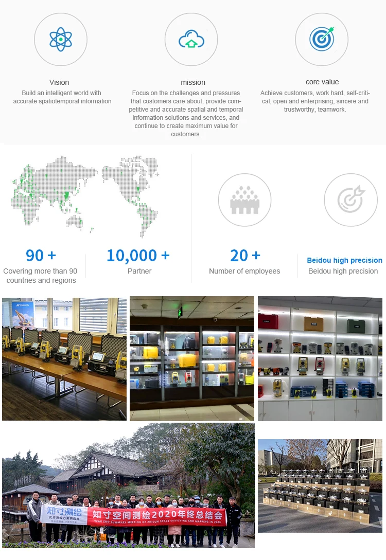 Chengdu Zhicun Space Surveying and Mapping Instrument Co.Ltd inJanuary 2019,is a professional manufacturer andexporter that is concerned with the sale, development and production ofSurveying instrument. We are located inChengDu, with convenient transportation access. All ofour products comply with international quality standards and are greaappreciated in a variety of different ChengDu markets throughout the worlde have over50 employees, an annual sales figat exceeds USD6000000 and are currently exporting20% of our production worldwide.Ourwquipped facilities and excellent quality control throughout all stages of productionabto guarantee total customattactionAs a result of our high quality products and outstanding customer service, we have gained a global sales network reaching(Indonesia.Southeast Asia.South Asia.Africa.Russia.Middle East)you are interested in any of our products or would like to discuss a custoorder, please feel free to contact us.e looking forward to forming successfubusineselationships with new clients around the world in the near future.