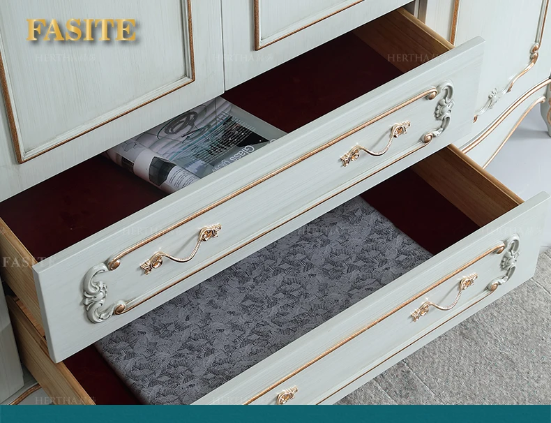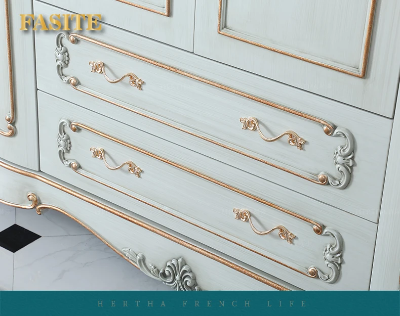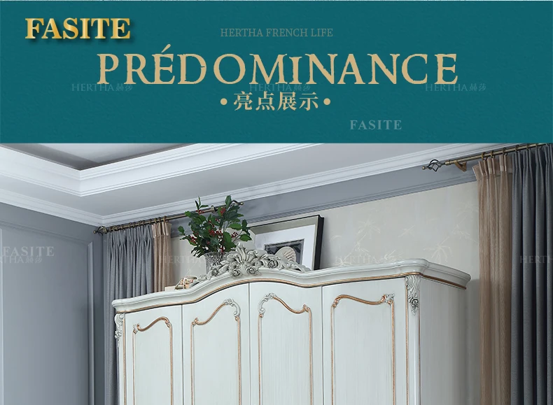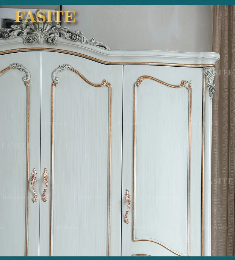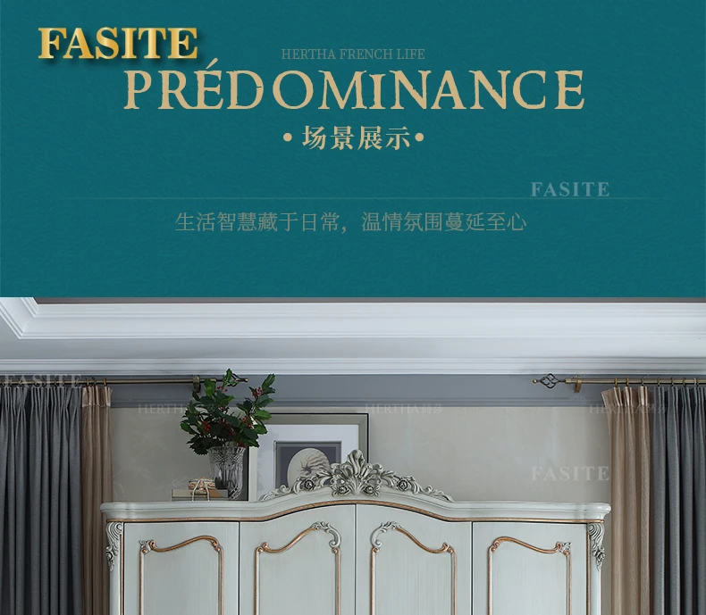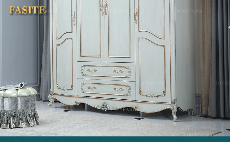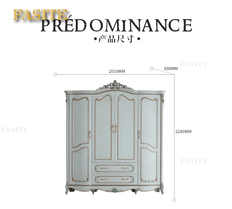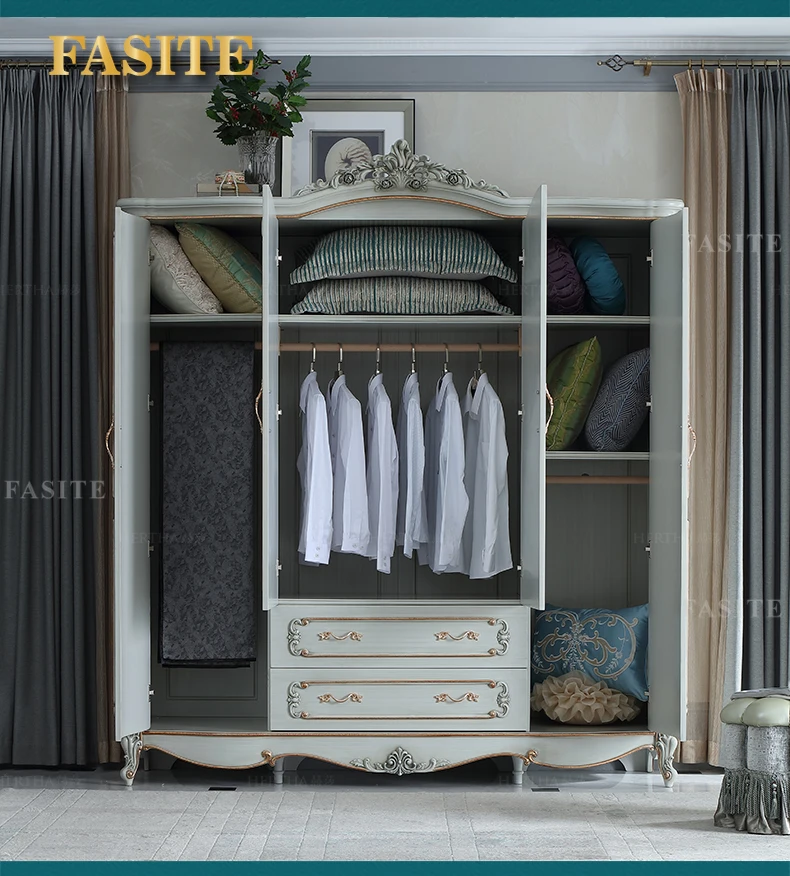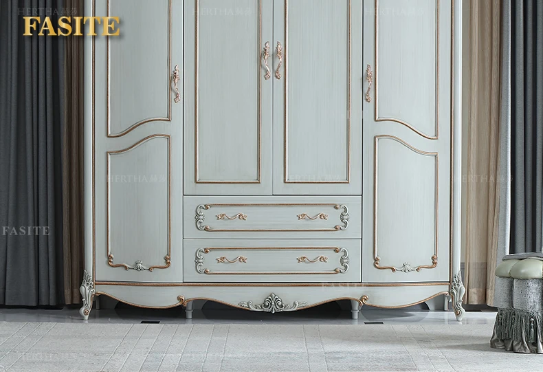 Emerald 4-door 2-meter wardrobe Solid wood carved wardrobe Master bedroom storage cabinet