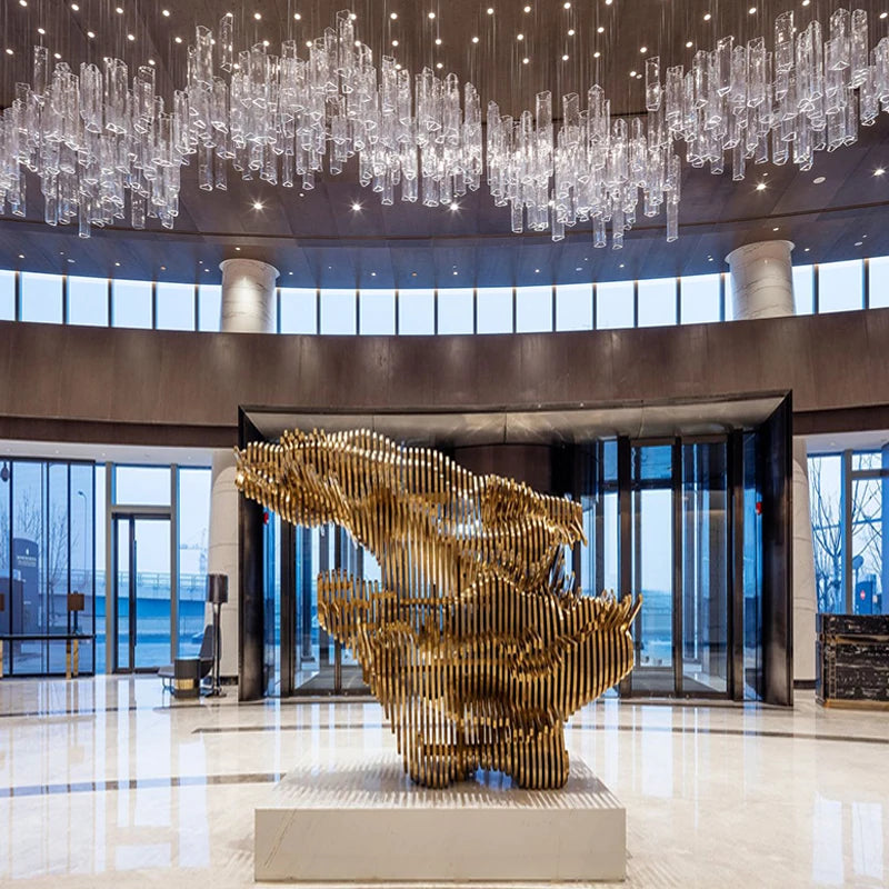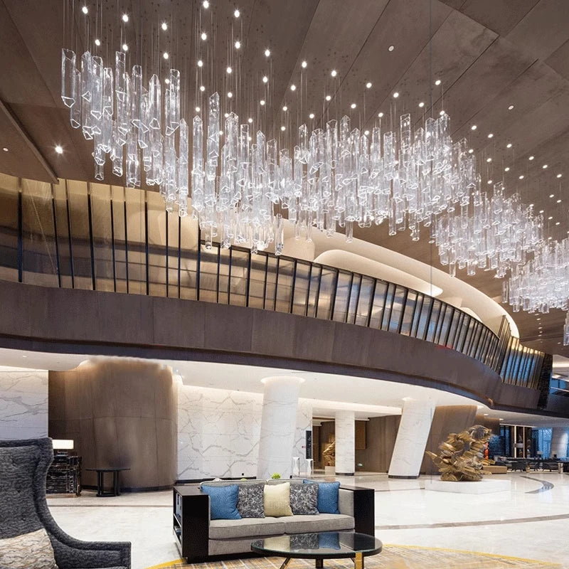 Engineering custom glass strip design Glass chandelier Stair light Villa Hall Living room Interior lighting Attic kitchen light