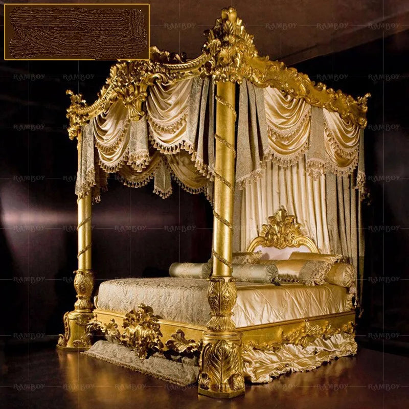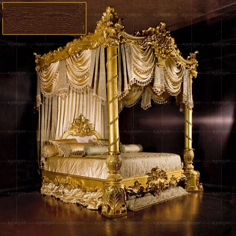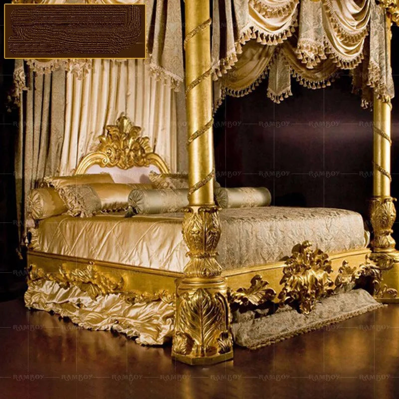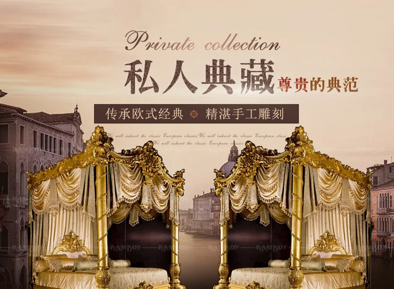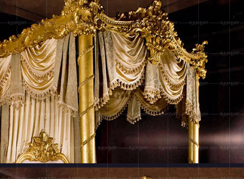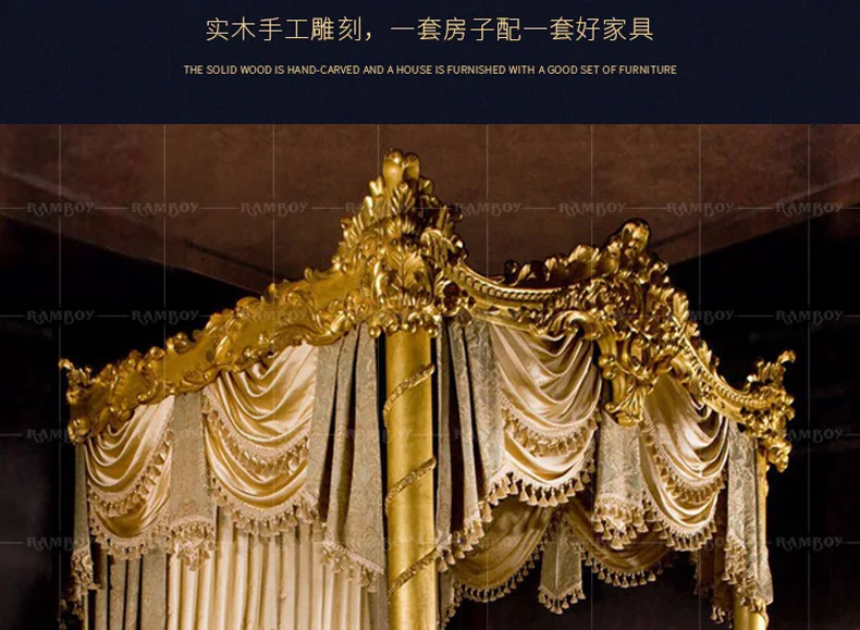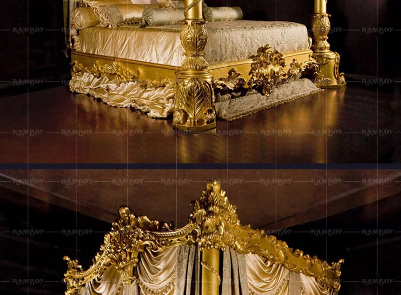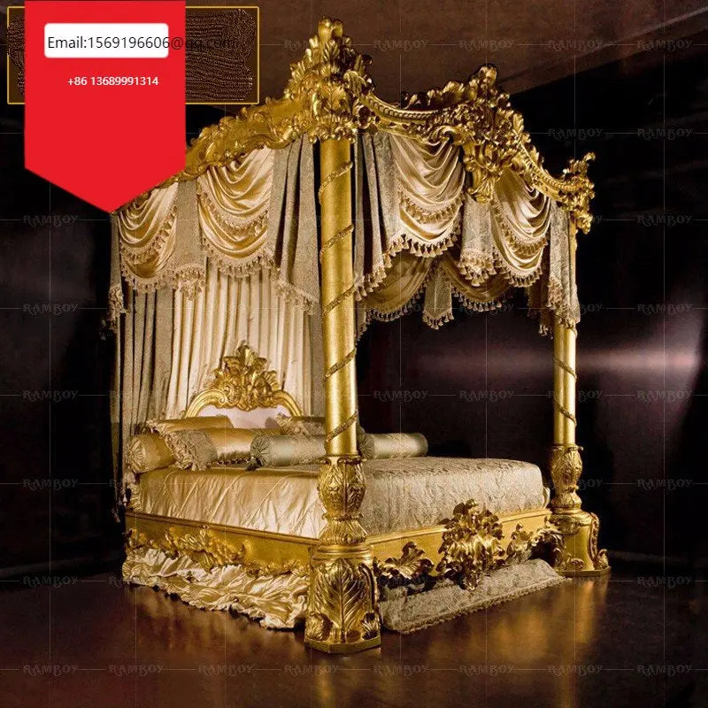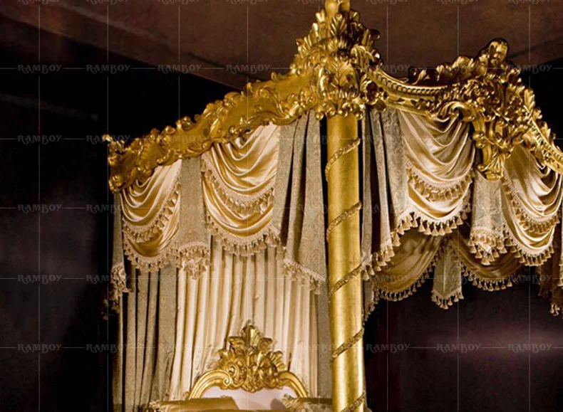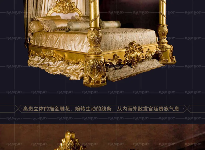 European court prince bed villa bedroom princess wedding bed Italy solid wood gold foil shelf curtain bed