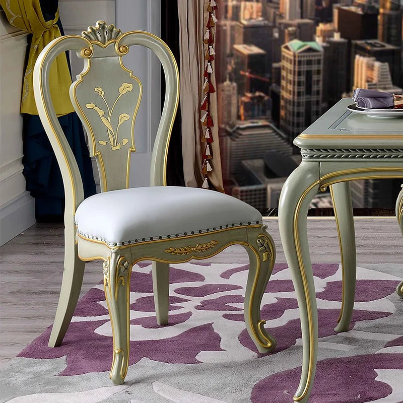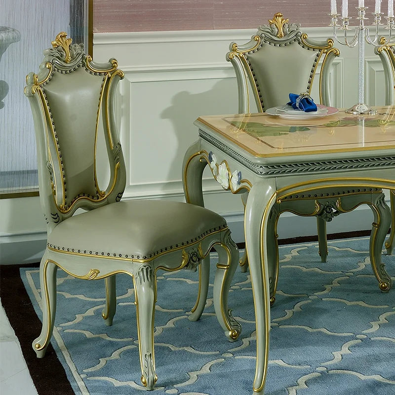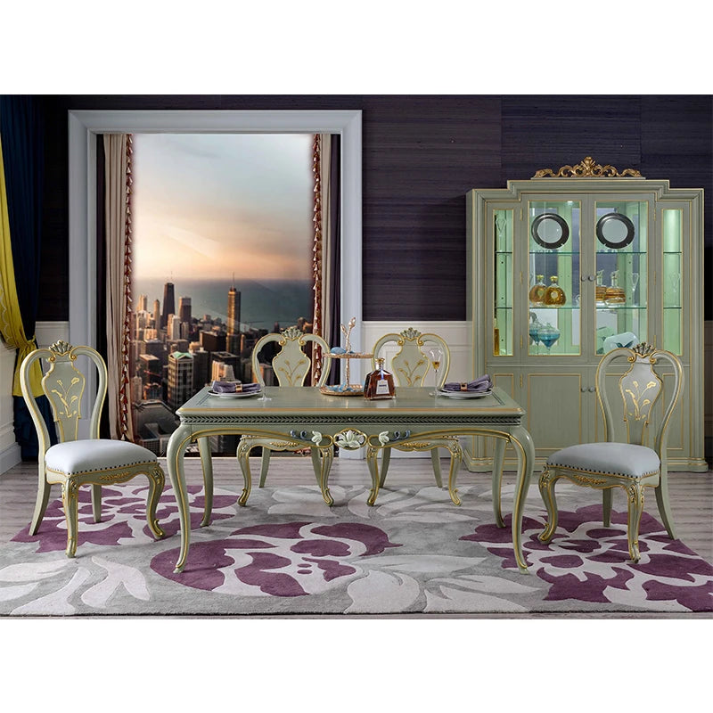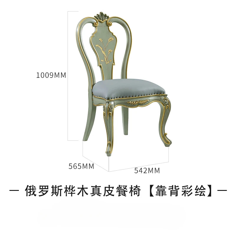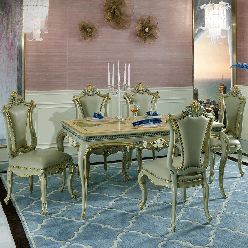 European dining table and chair set neoclassical full solid wood dining table leather carved dining chair dining table