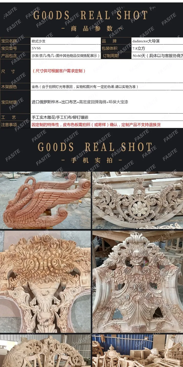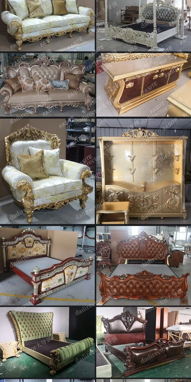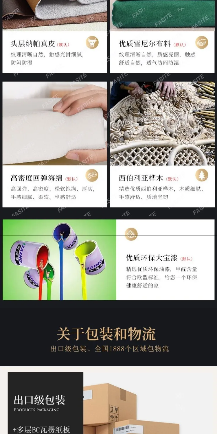 European fabric sofa combination large living room multi-person sofa French classical villa solid wood furniture gold