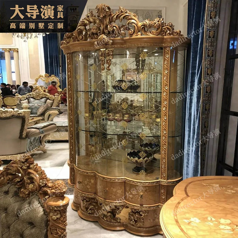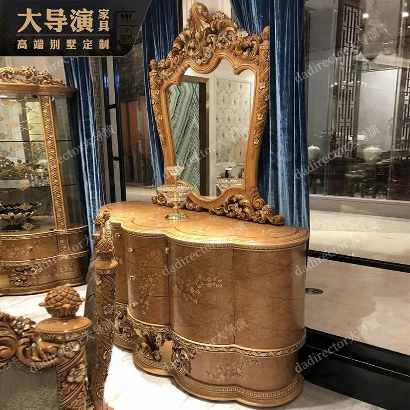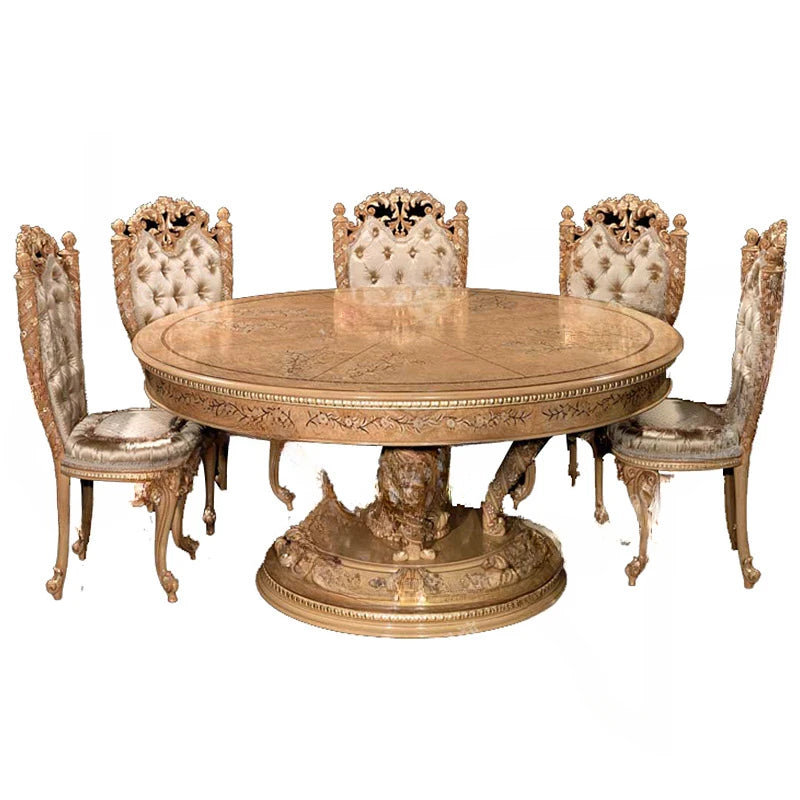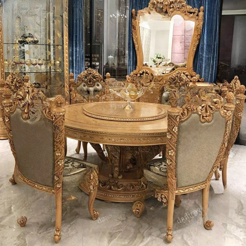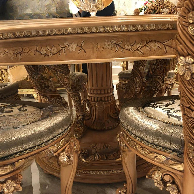 European Luxury Solid Wood Carved Dining Table Art Puzzle French Round Table with Rotary Table Palace Restaurant Furniture