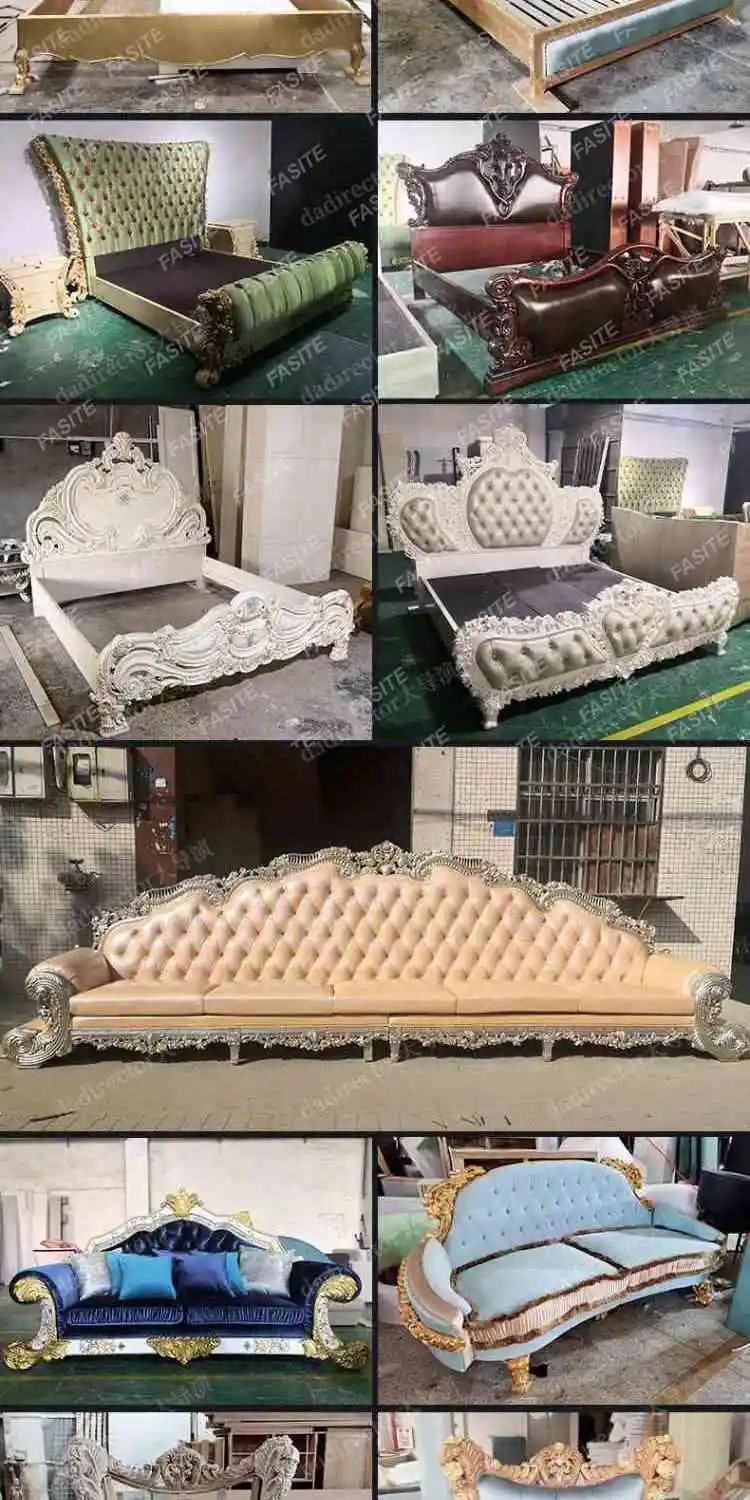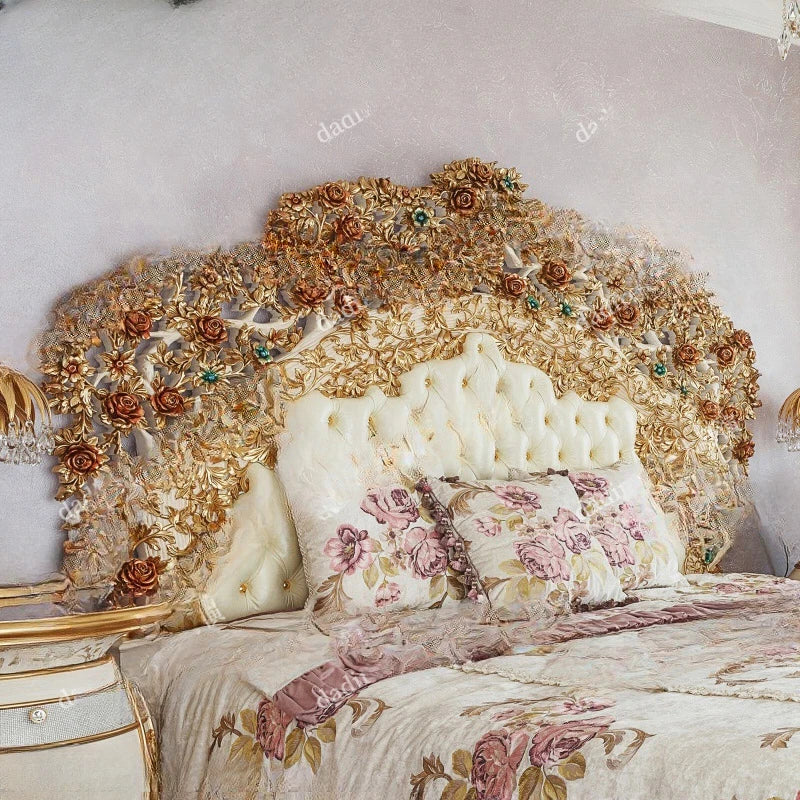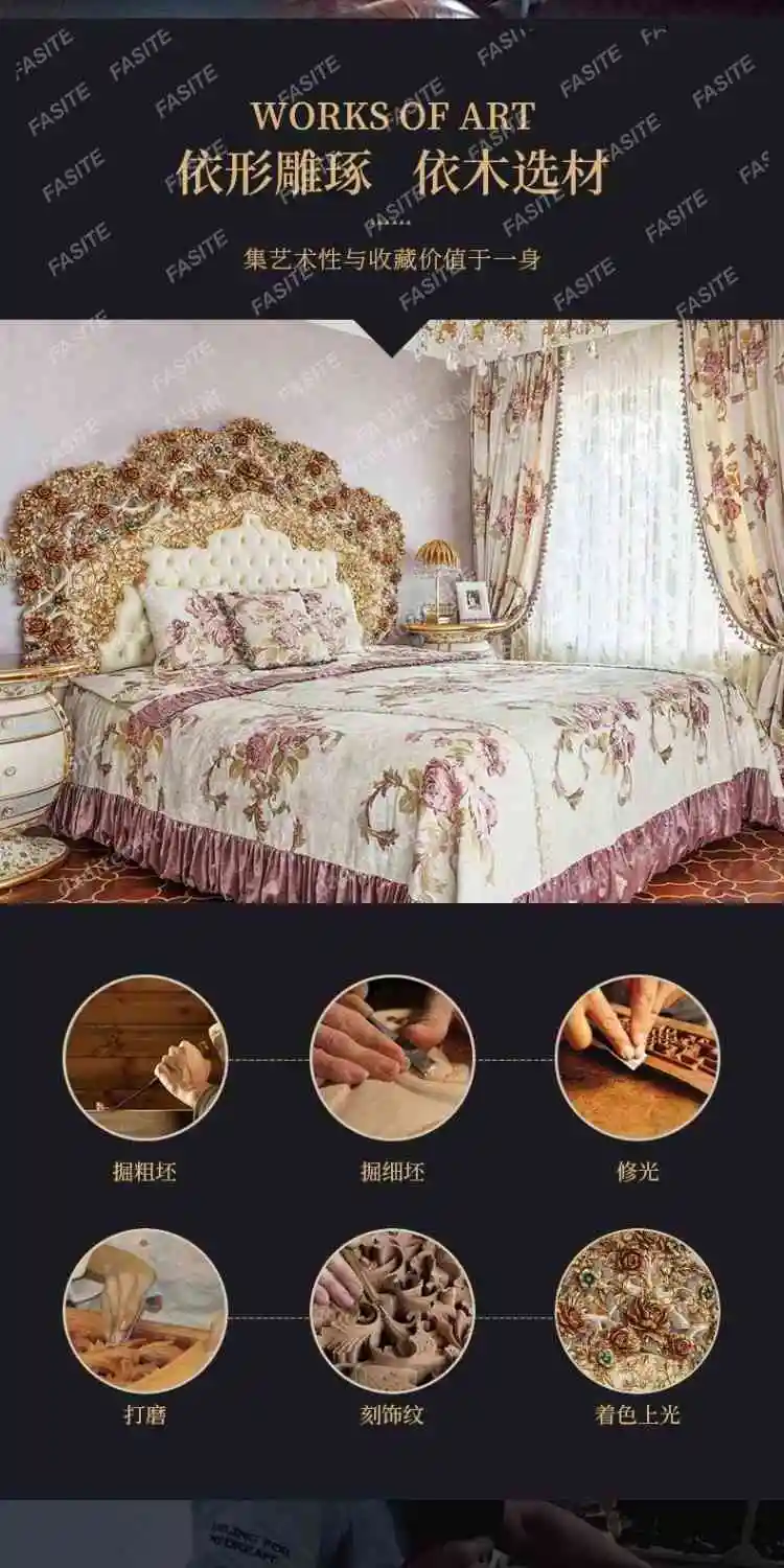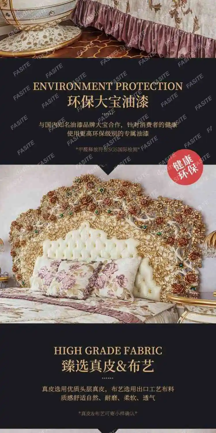 European luxury solid wood rose carved double bed French palace leather wedding bed villa master bedroom princess bed