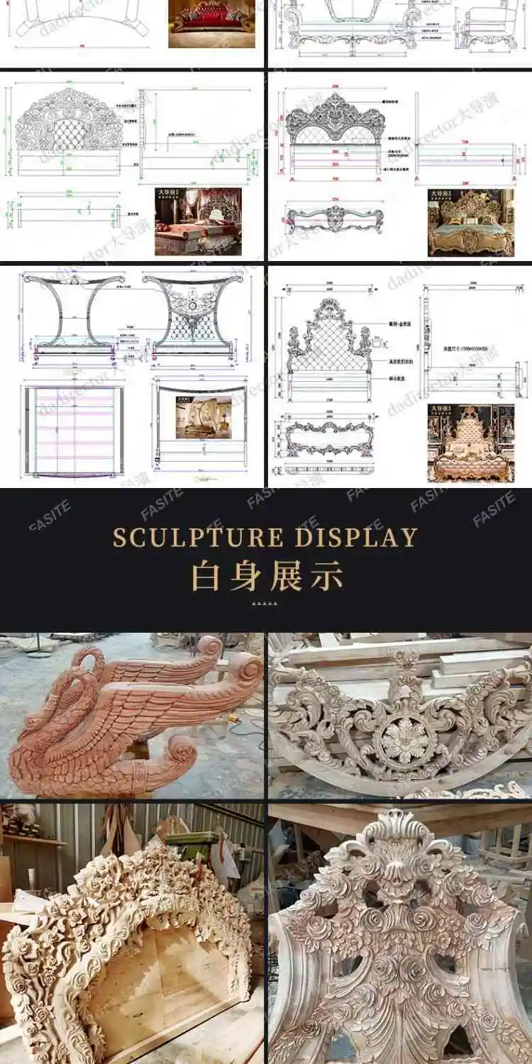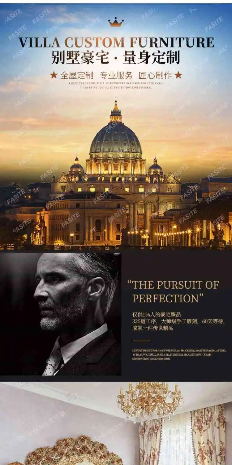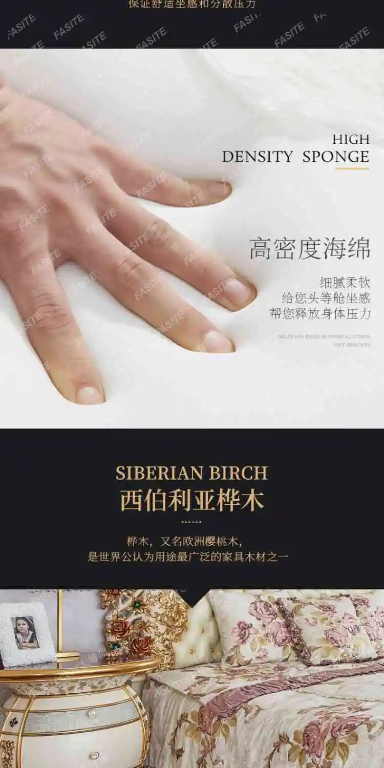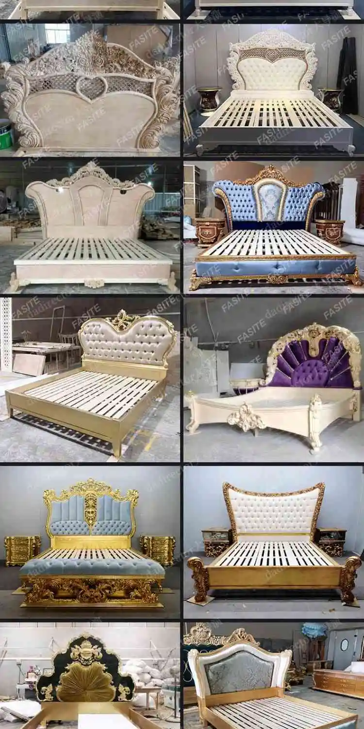 European luxury solid wood rose carved double bed French palace leather wedding bed villa master bedroom princess bed