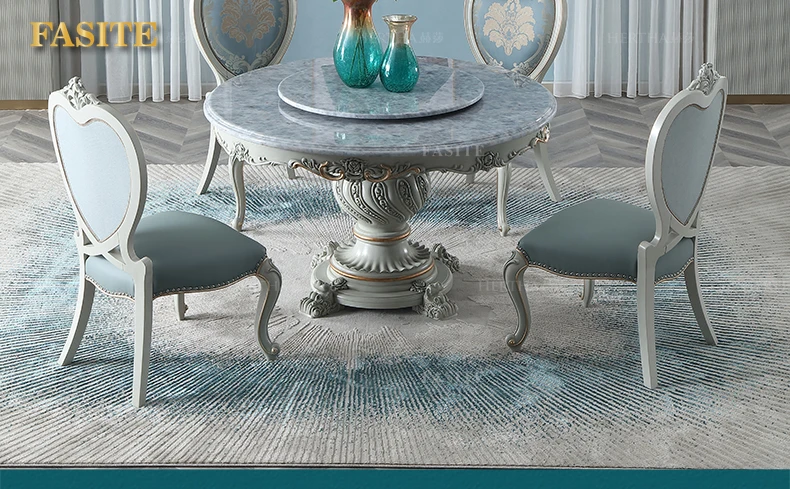 European marble countertop 1.4M round dining table small apartment with turntable dining table