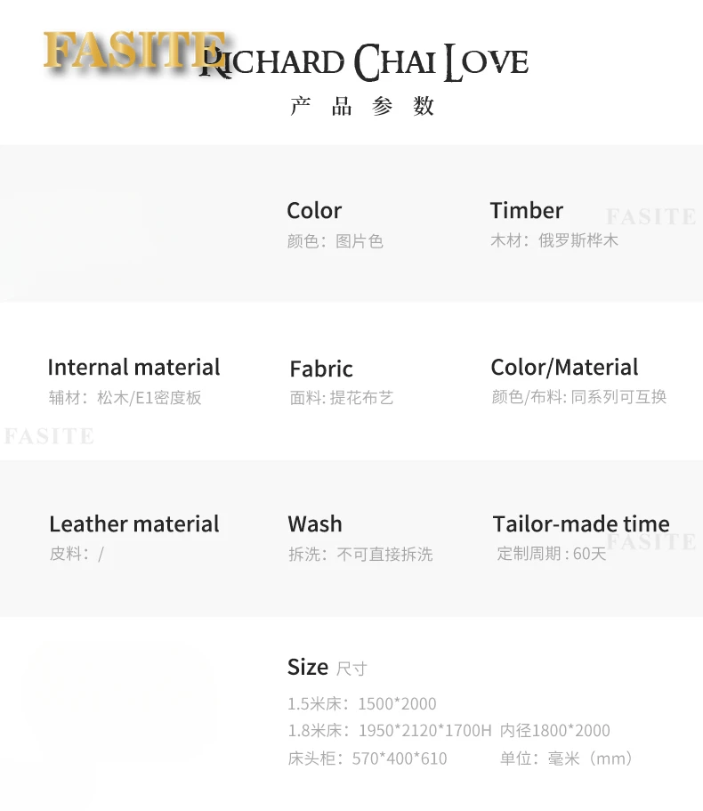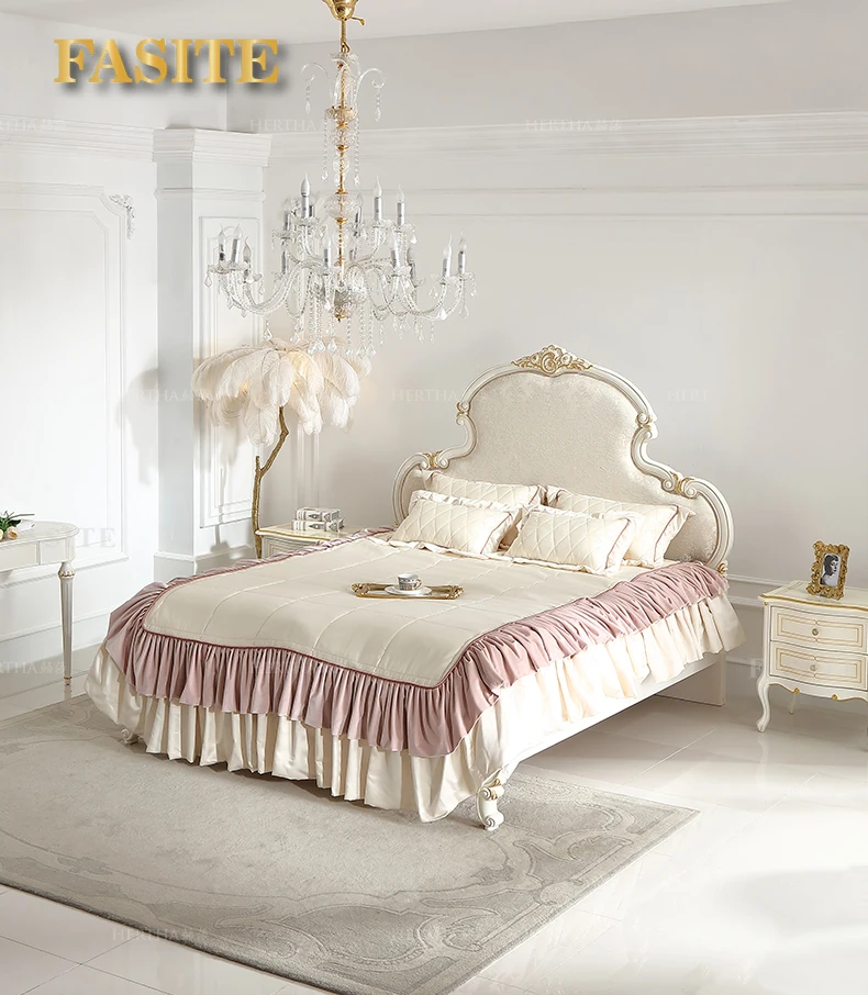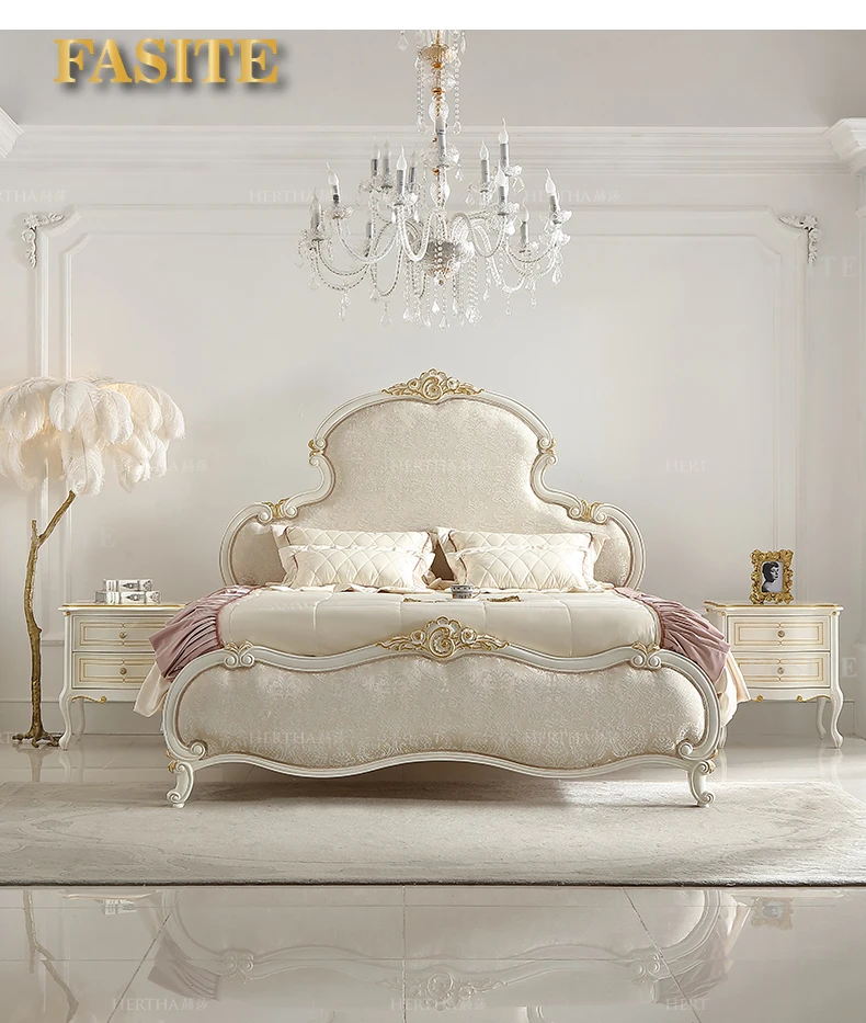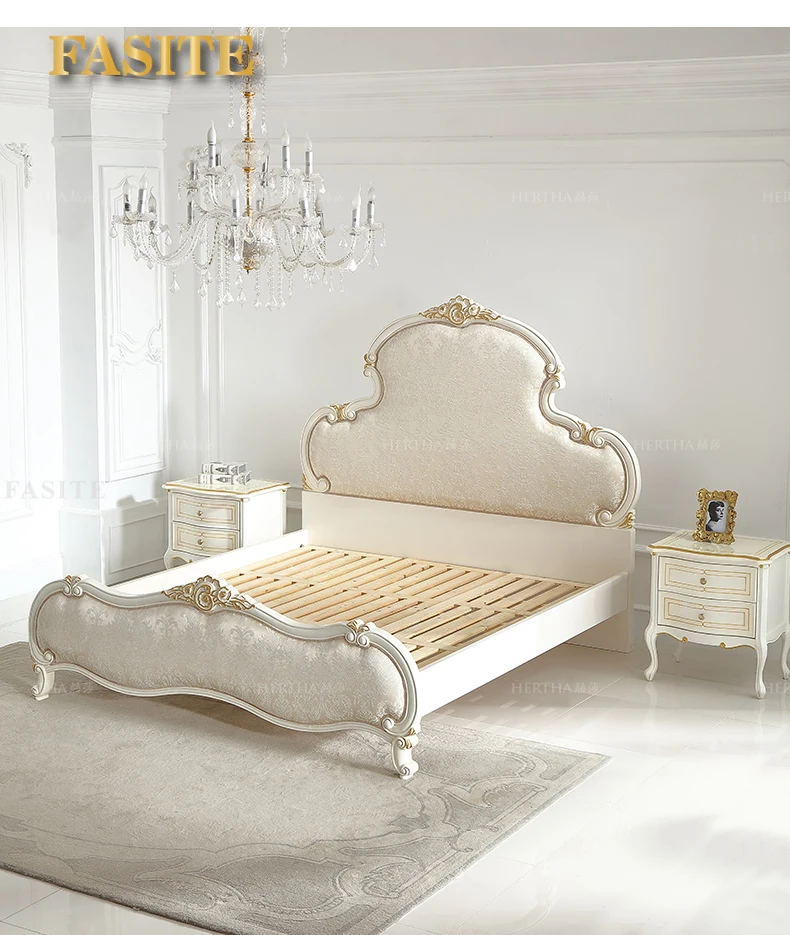 European minimalist small unit mercerized jacquard fabric 1.8M solid wood carving bed