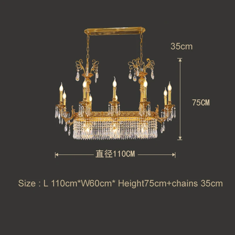 10 lights size : Long 110 cm *Wide 60 cm * Height 75 cm + Chains 35 cm