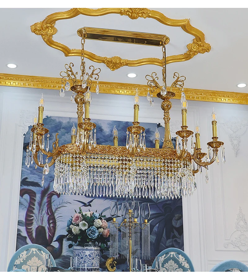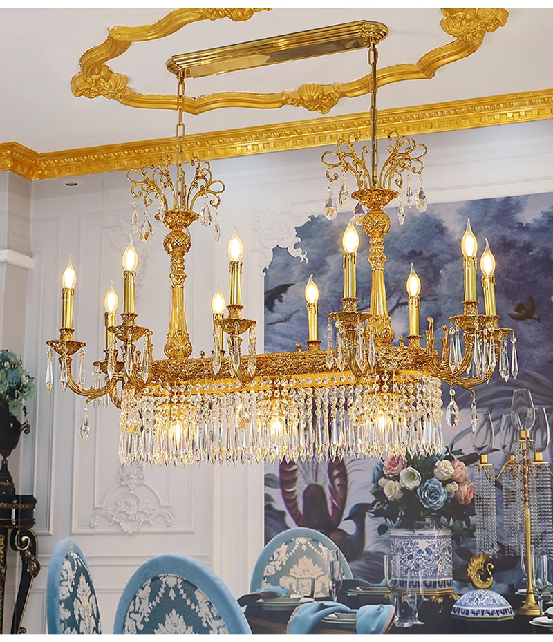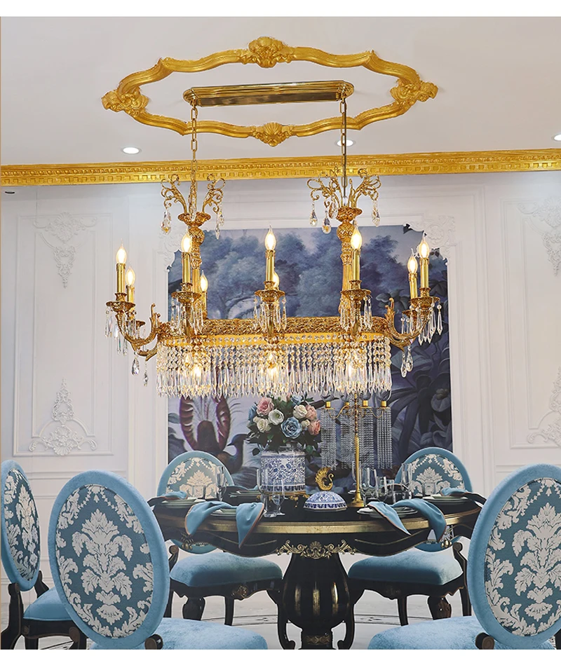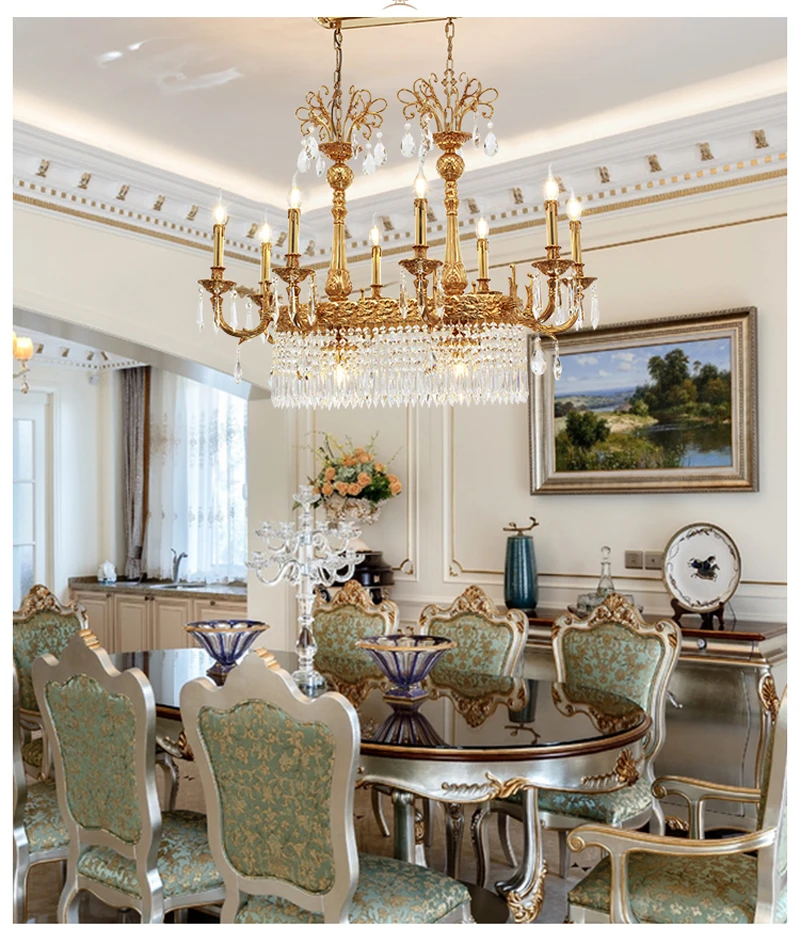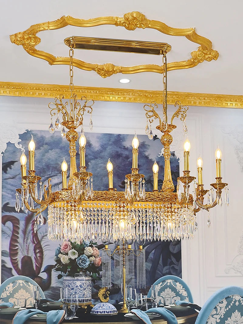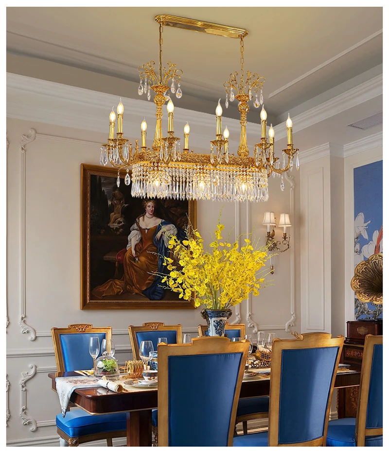 European Restaurant Crystal Chandelier French Brass Long Hanging Lamp Modern Villa Luxury Personality Creative Pendant Lights