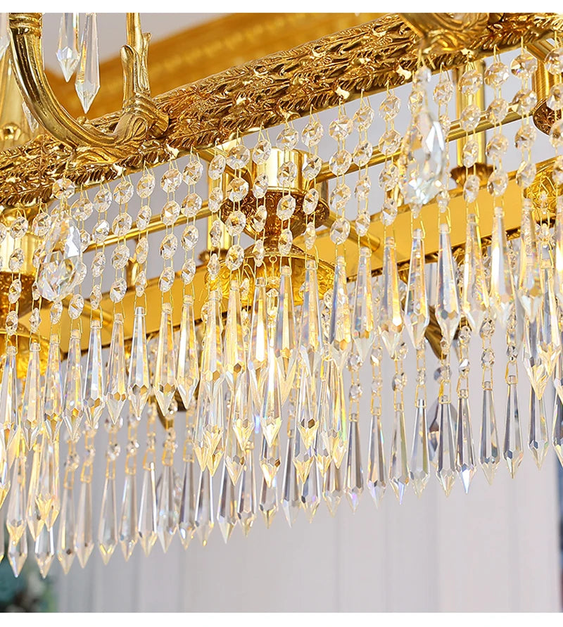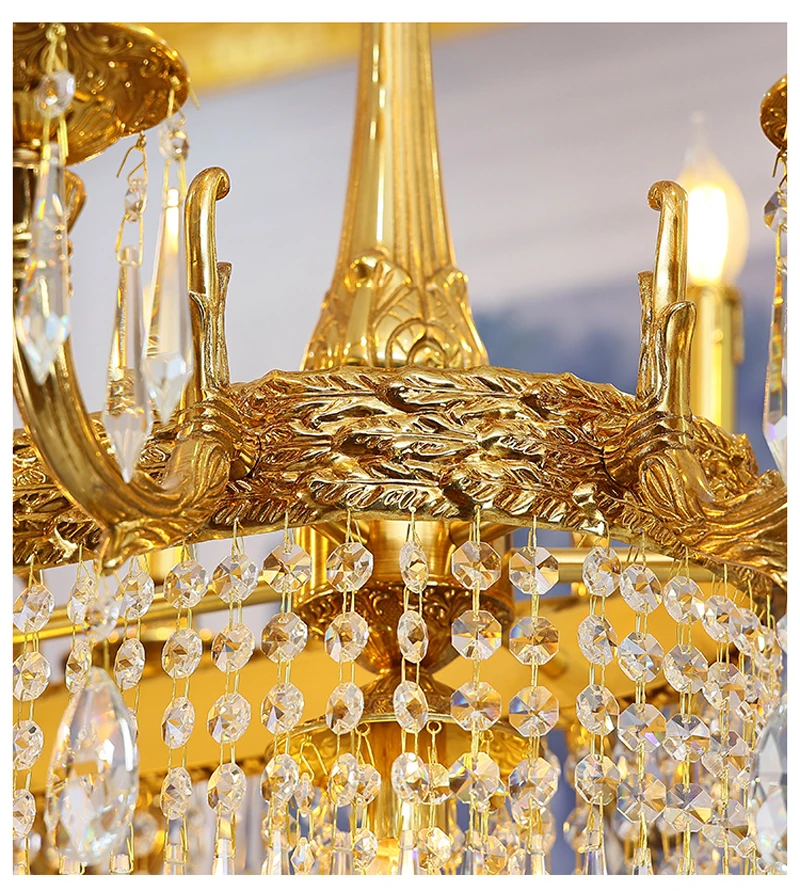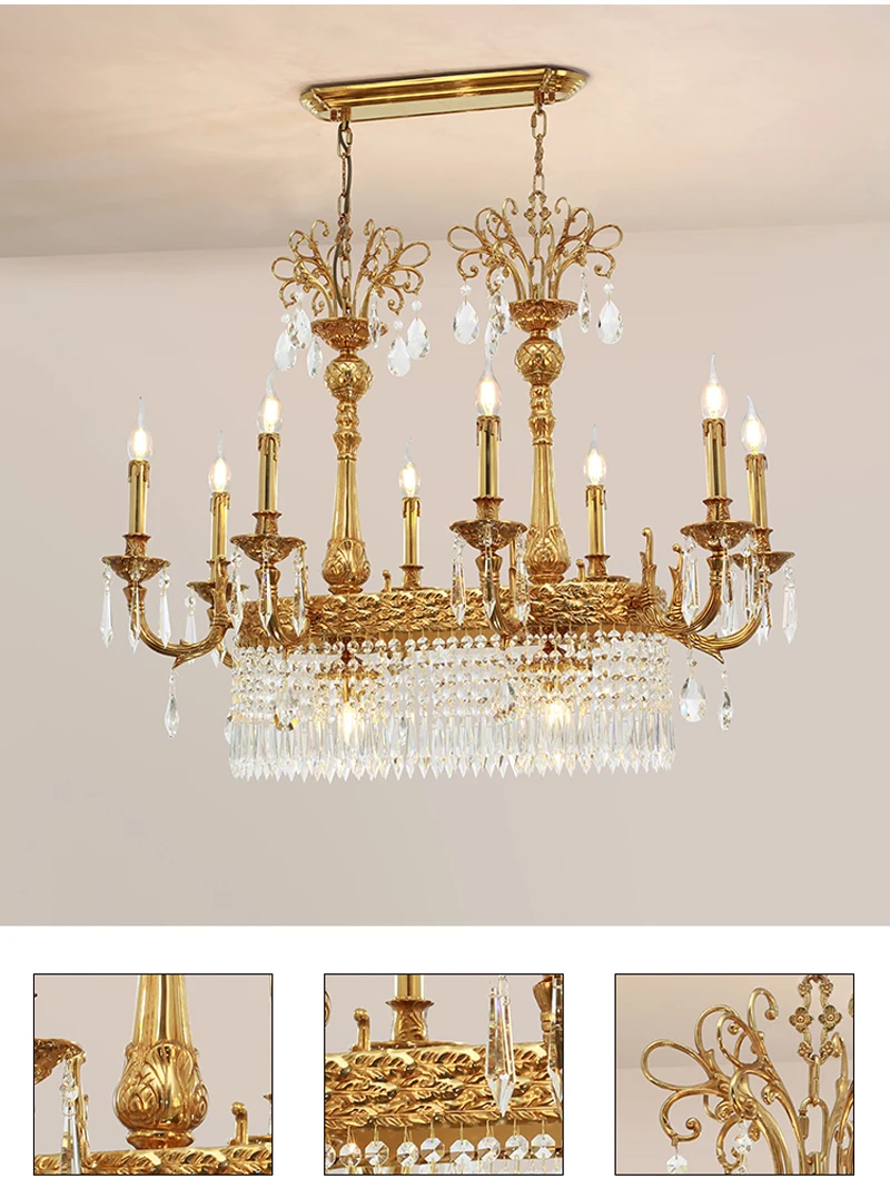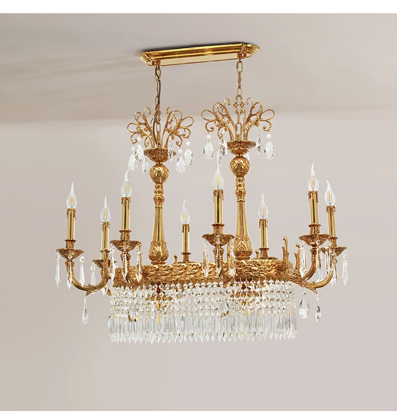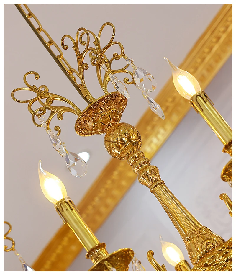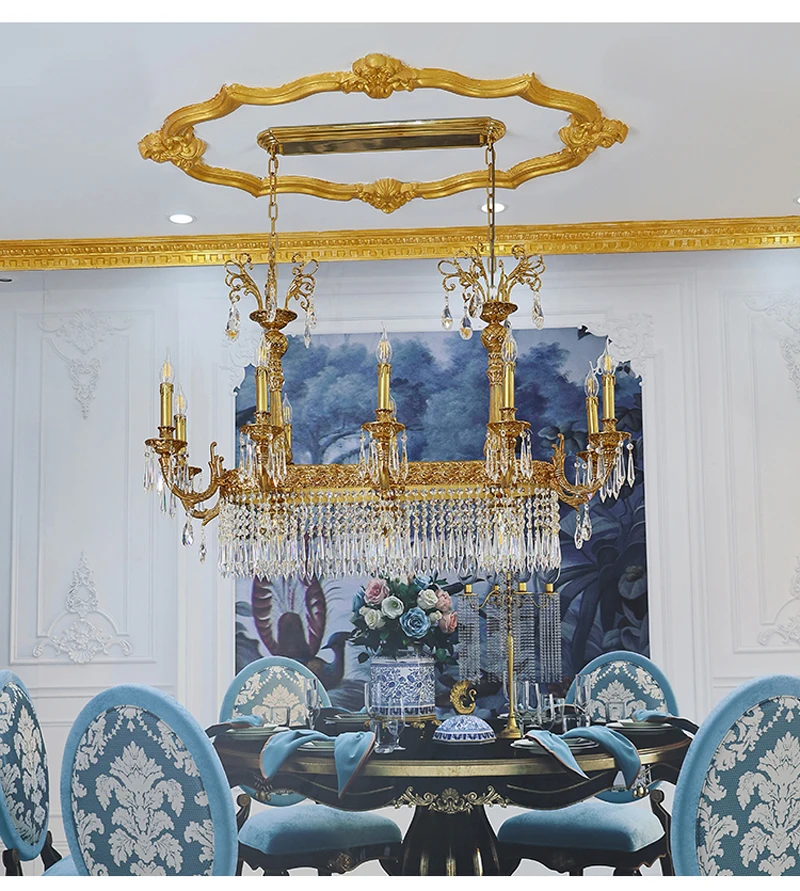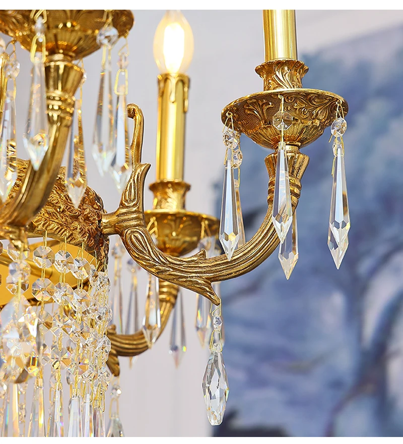 European Restaurant Crystal Chandelier French Brass Long Hanging Lamp Modern Villa Luxury Personality Creative Pendant Lights