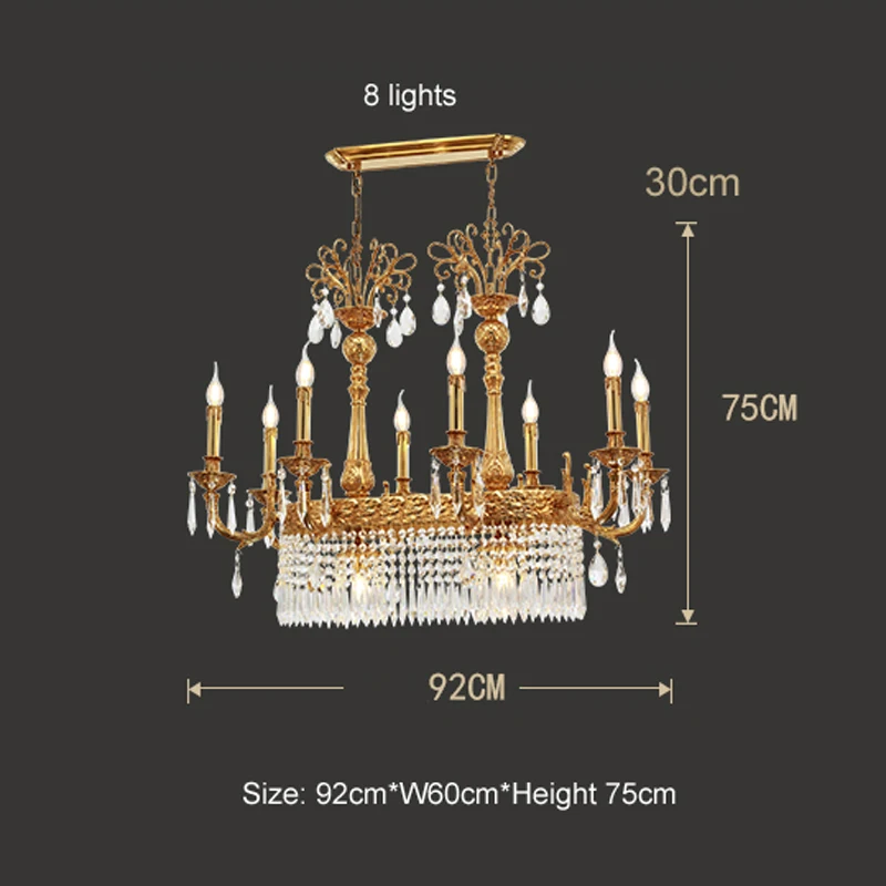 8 lights size : Long 92 cm *Wide 60 cm * Height 75 cm + Chains 35 cm