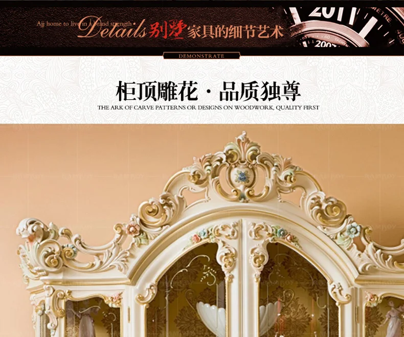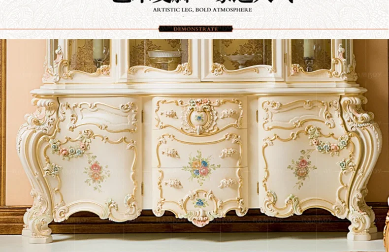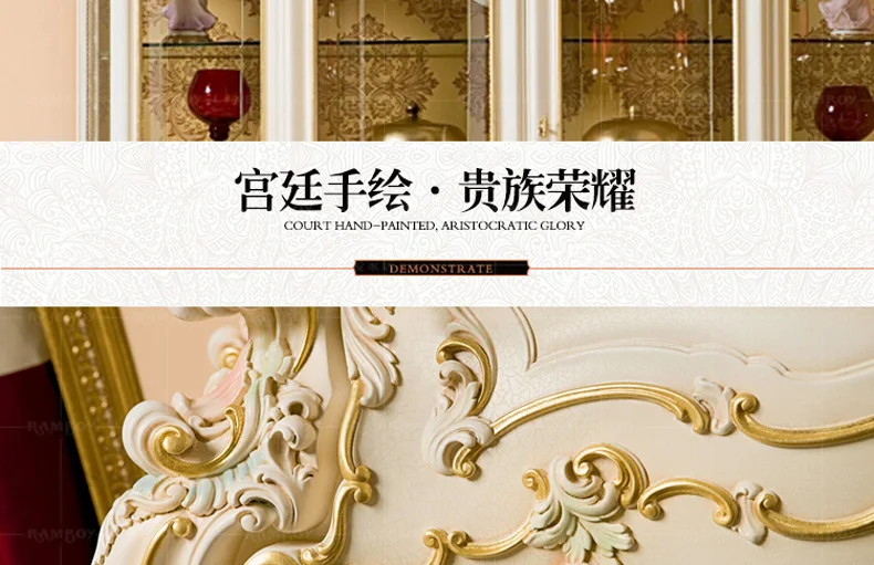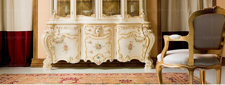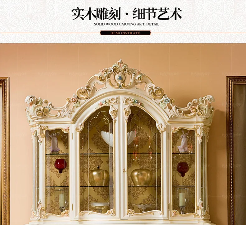 European solid wood carved wine cabinet French glass four door wine cabinet painted wine cabinet restaurant furniture