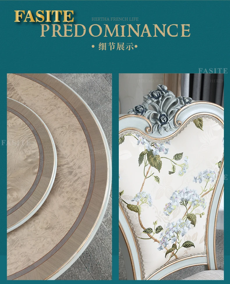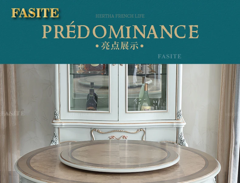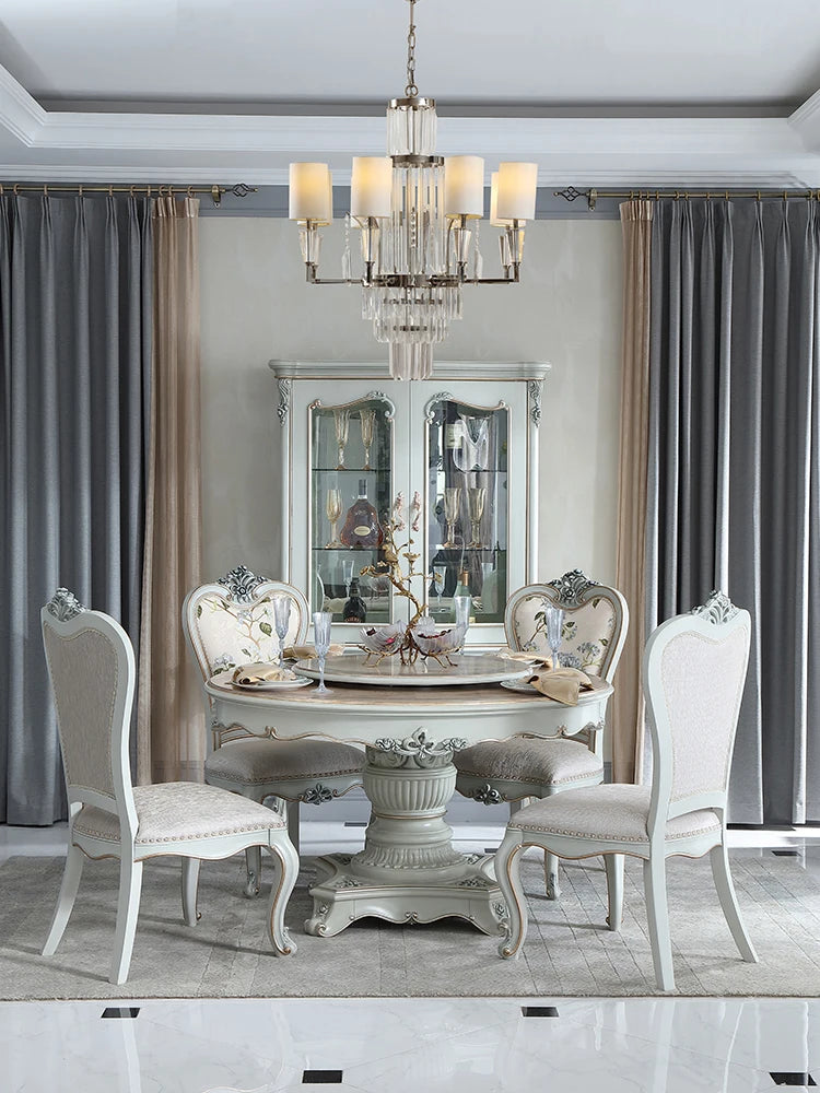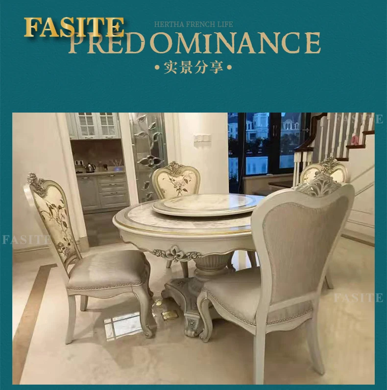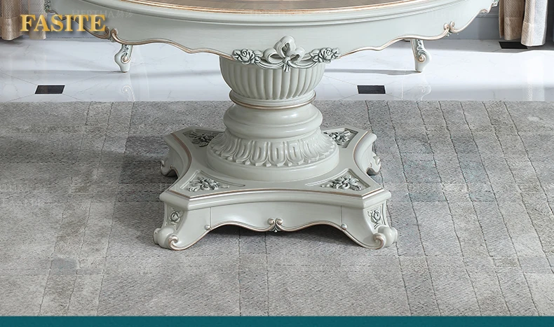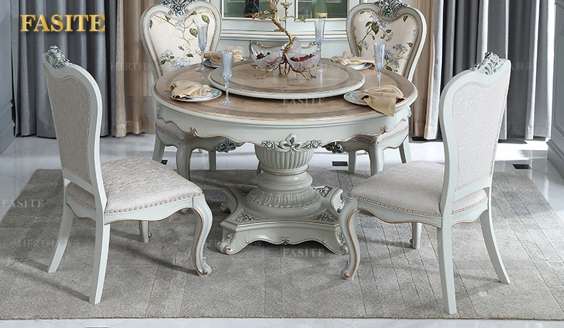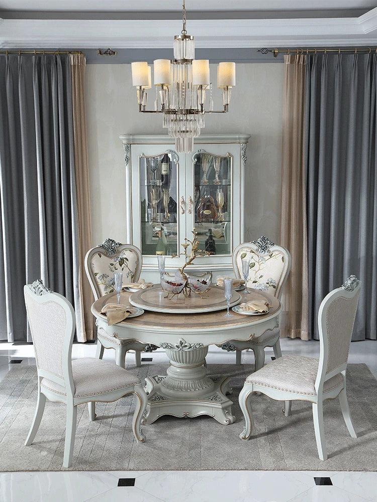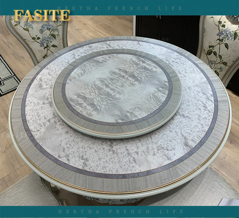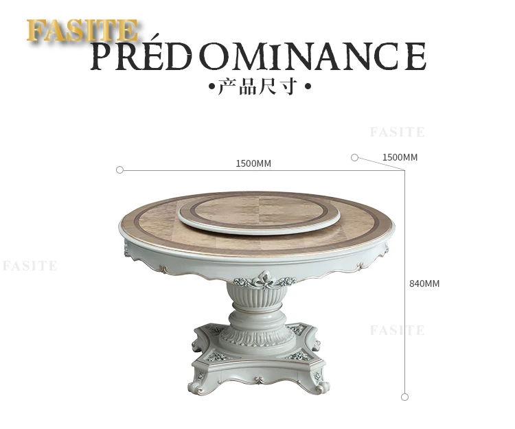 European solid wood carving 1.5m round table with turntable 1.35M dining table