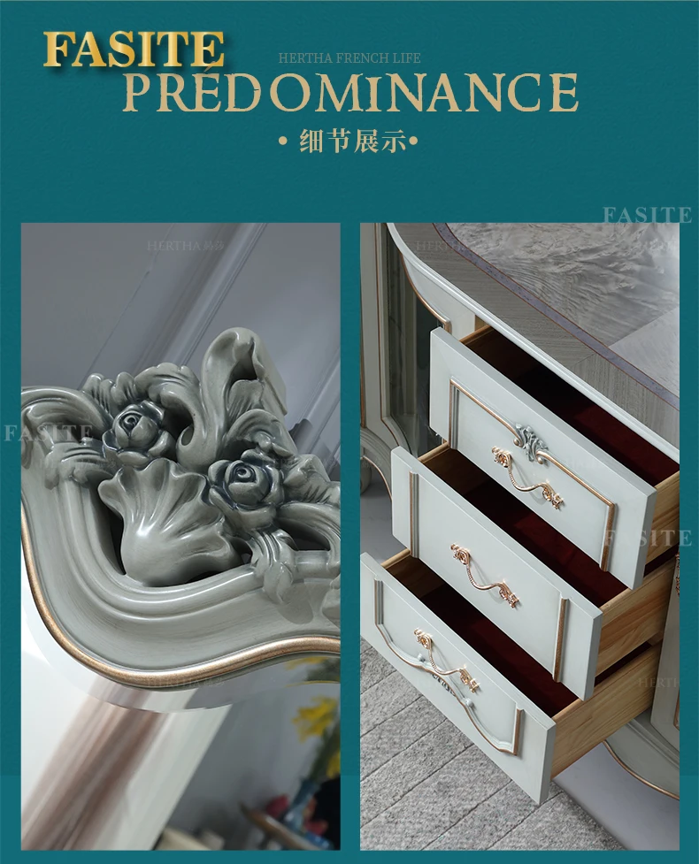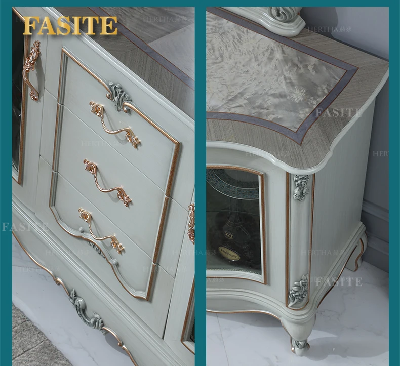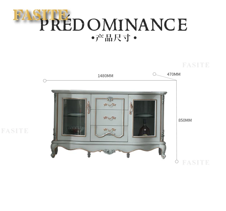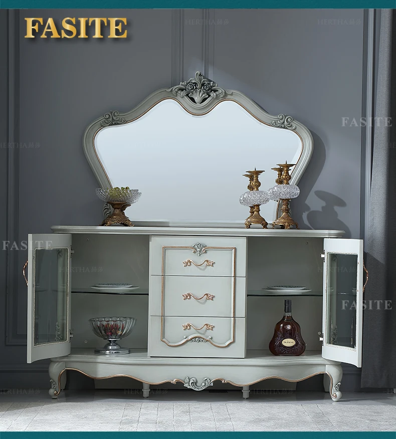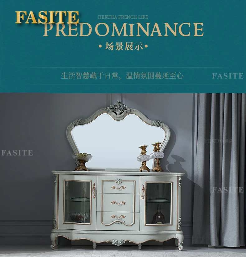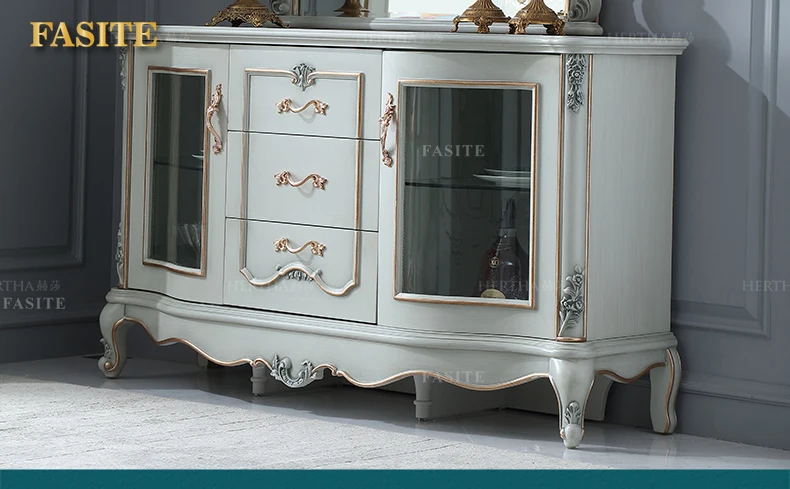 European style 1.48M gold carved flower dining cabinet Solid wood storage cabinet Floor cabinet