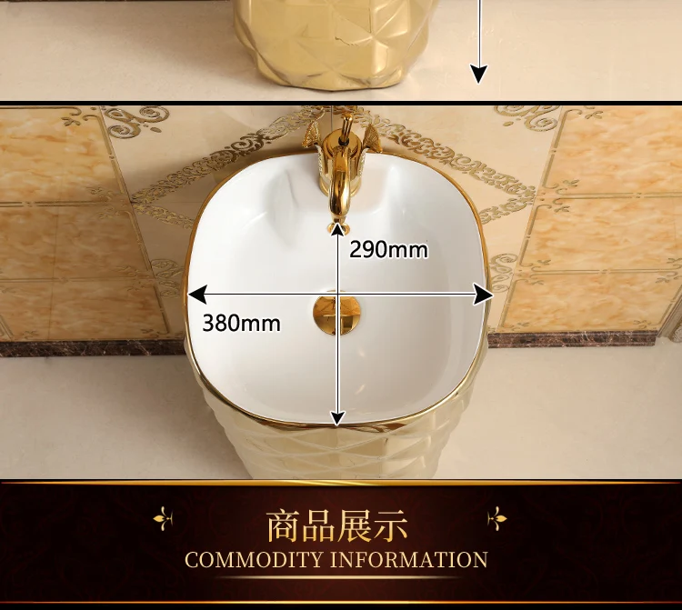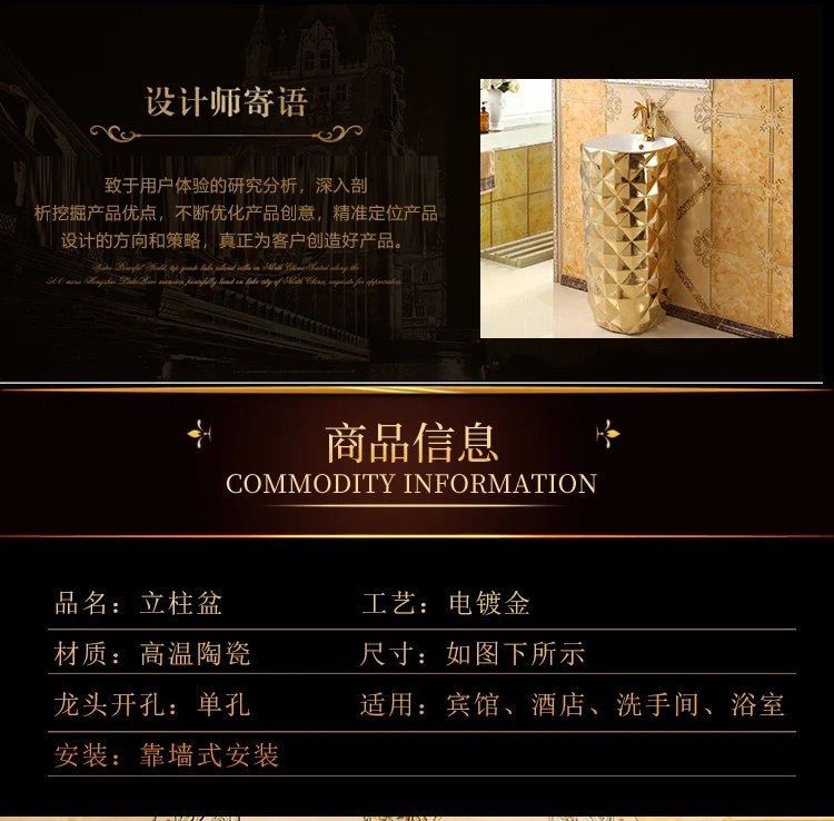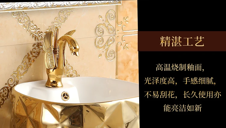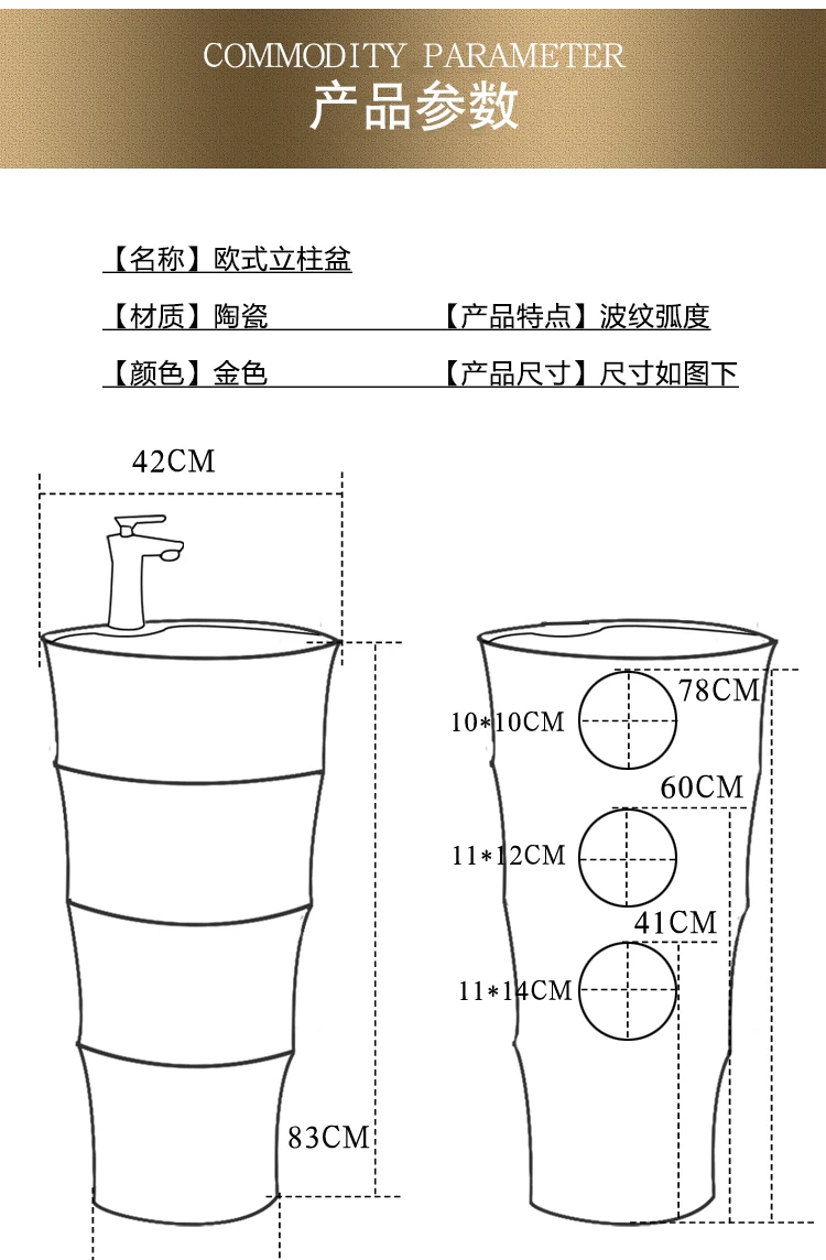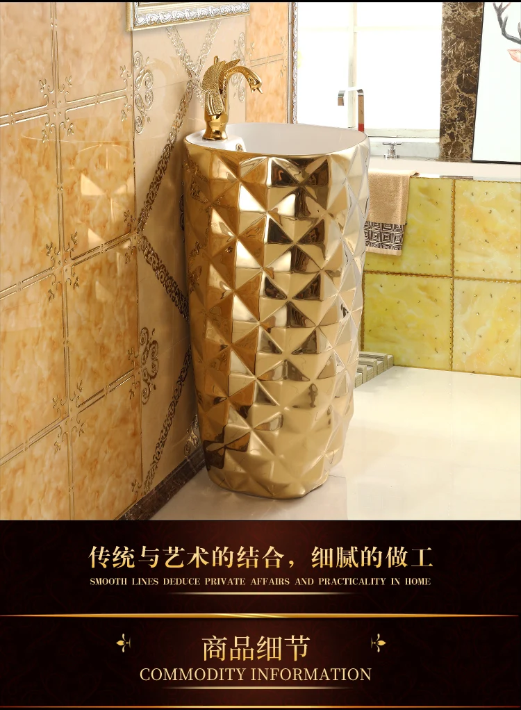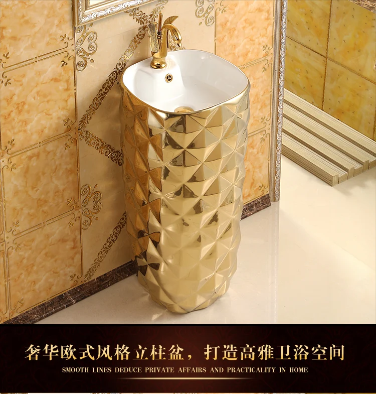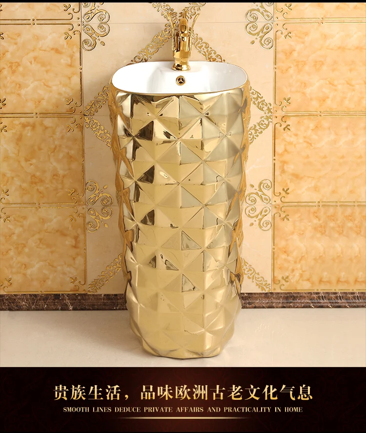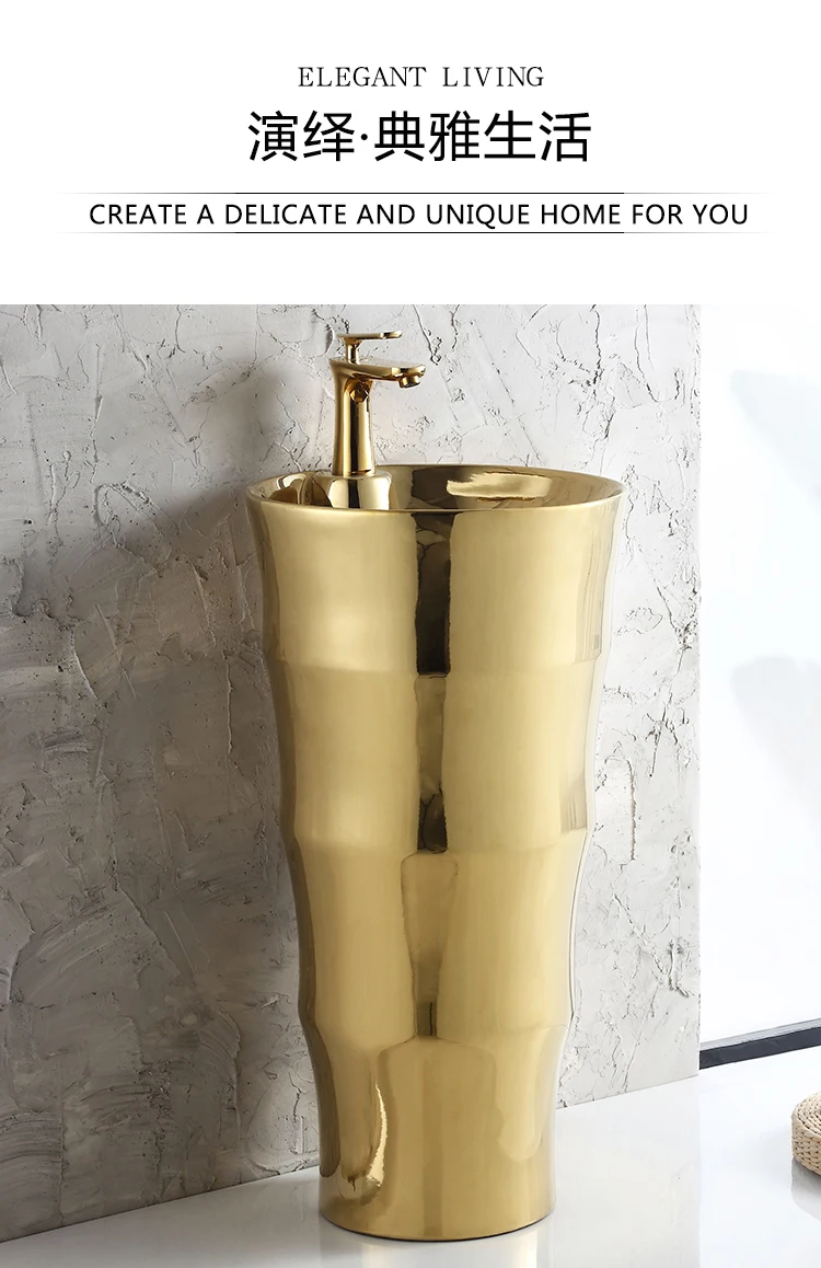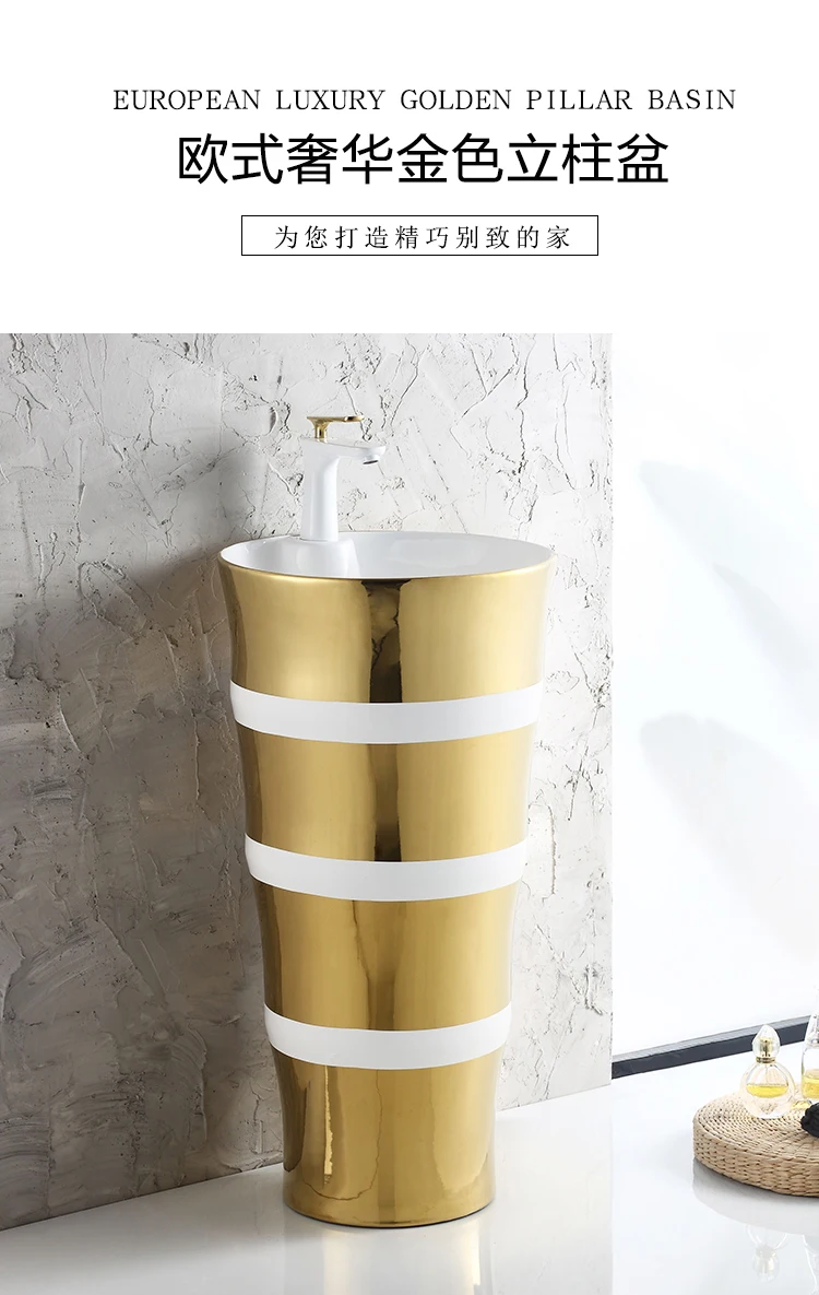 European-style art column basin washbasin bar floor-to-ceiling washbasin ceramic gold integrated washbasin