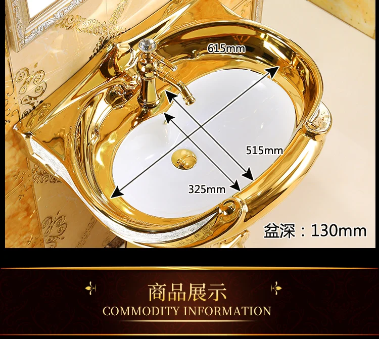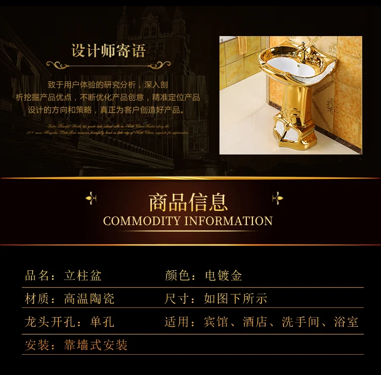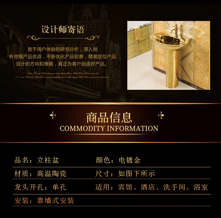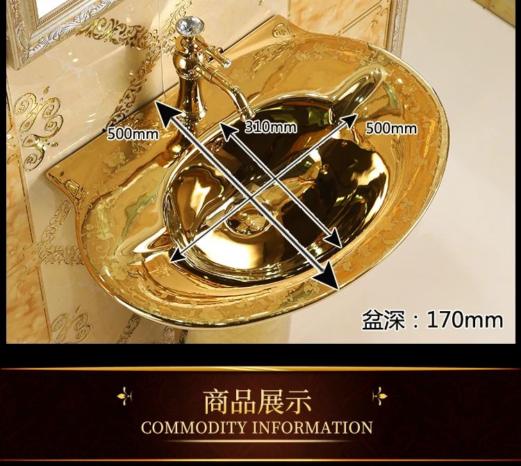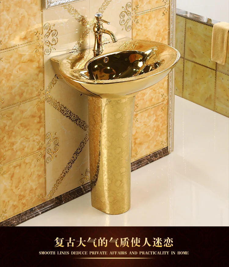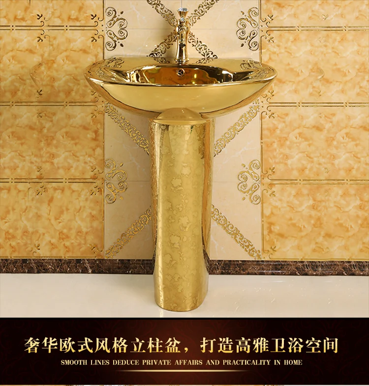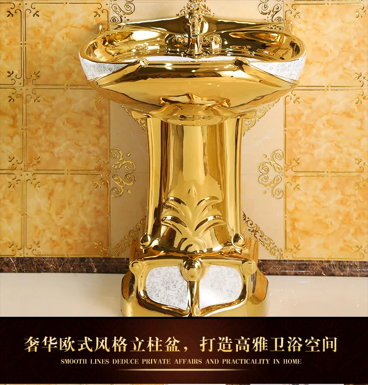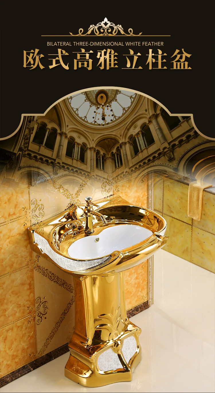 European-style art column basin washbasin bar floor-to-ceiling washbasin ceramic golden split washbasin
