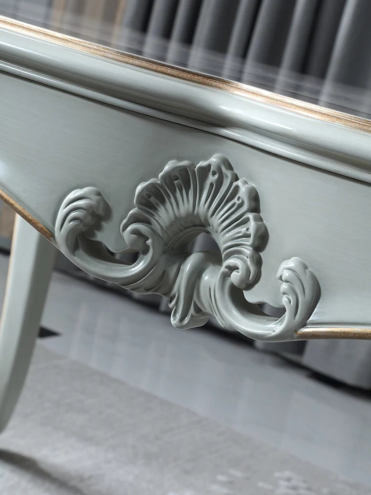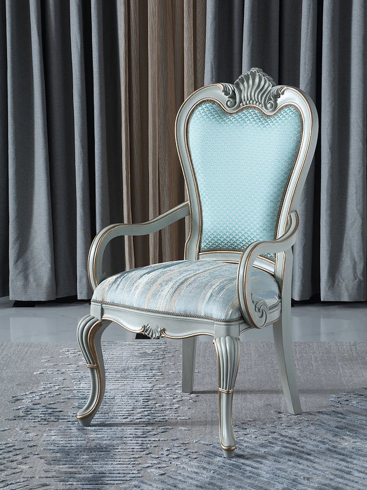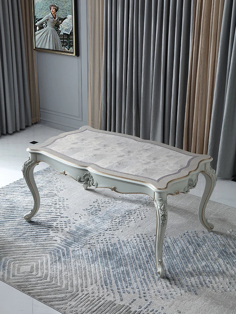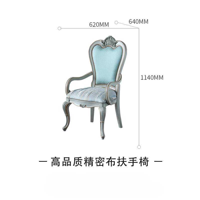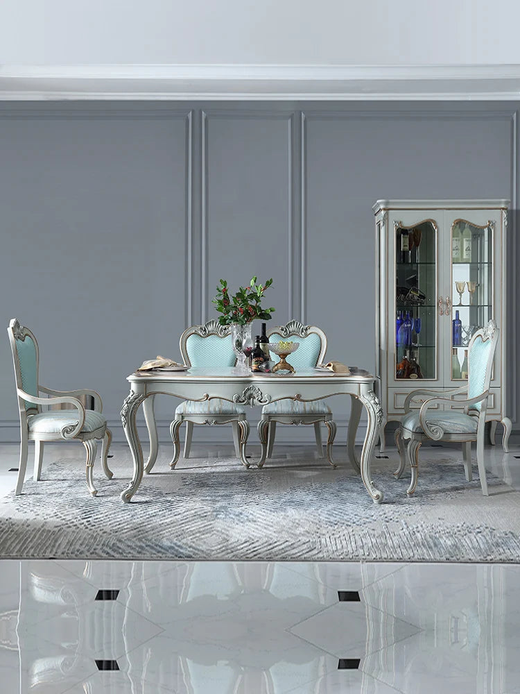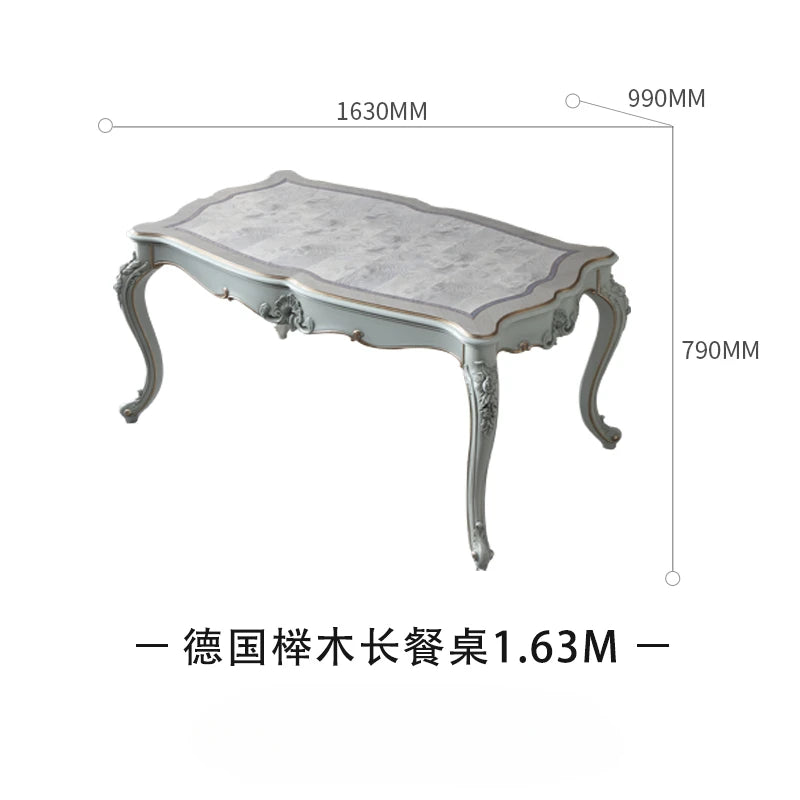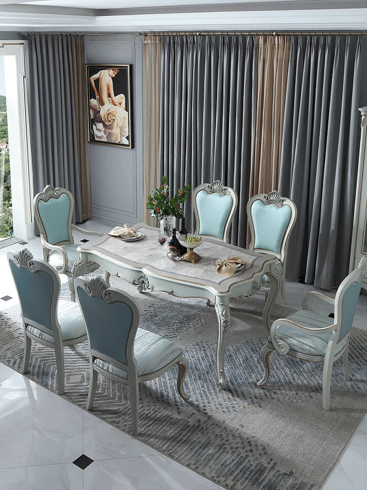 European style carved 1.6 dining table, painted wood grain dining table, solid wood dining table and chair combination