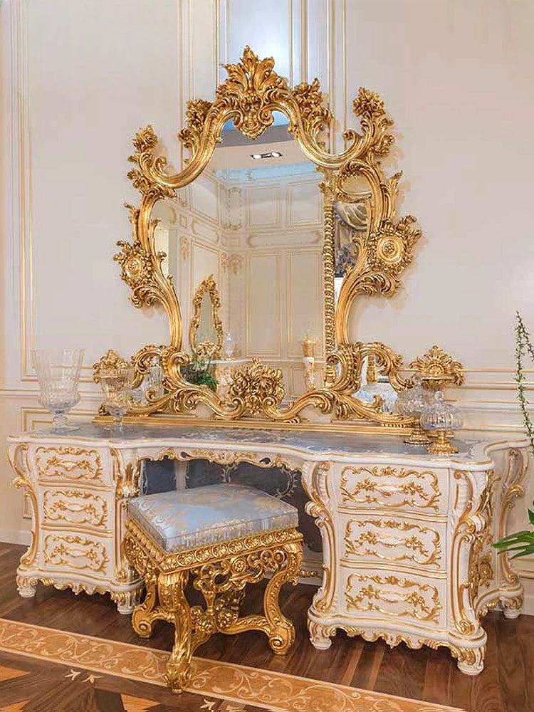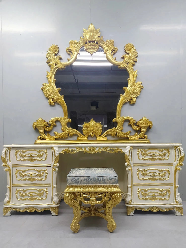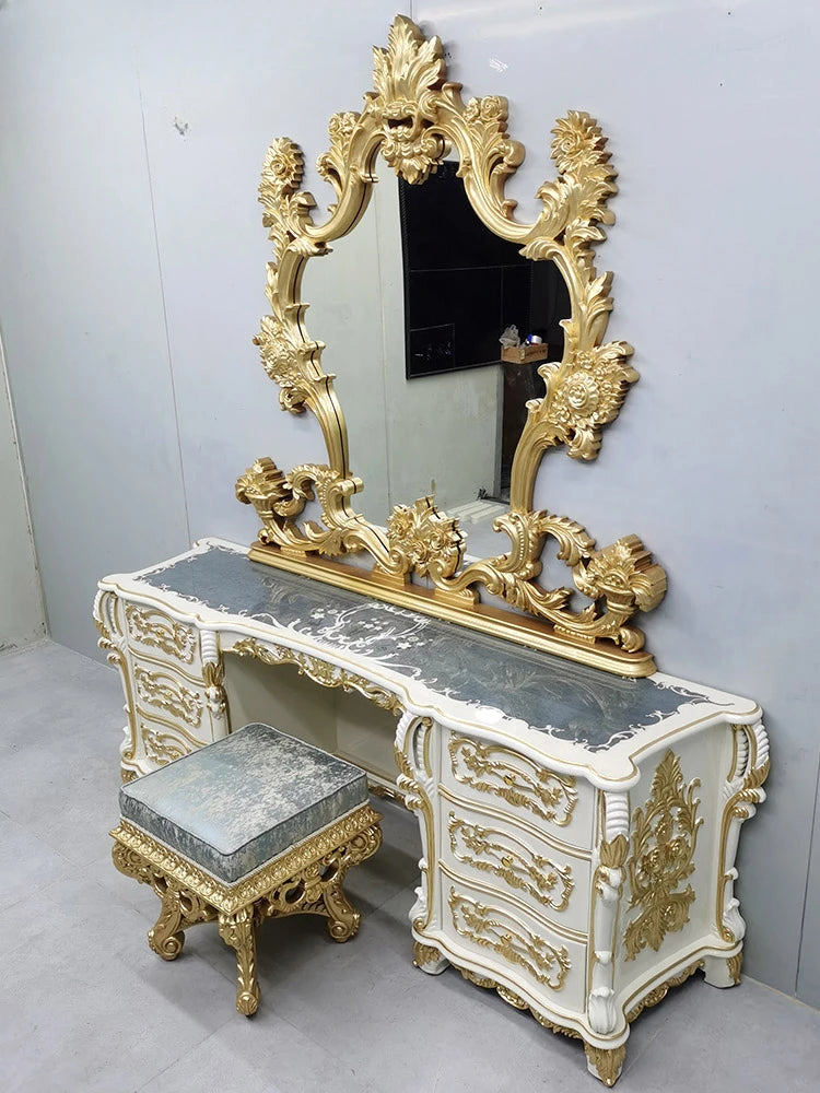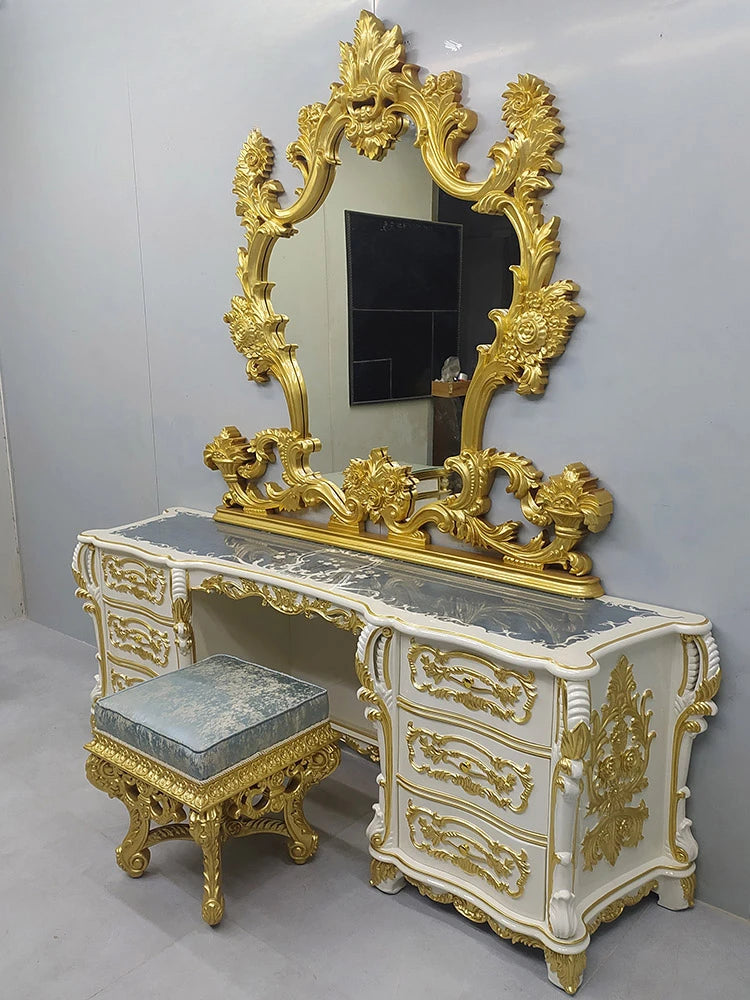 European-style carved solid wood dressing table villa dressing table mirror bedroom French large-sized luxury custom furniture
