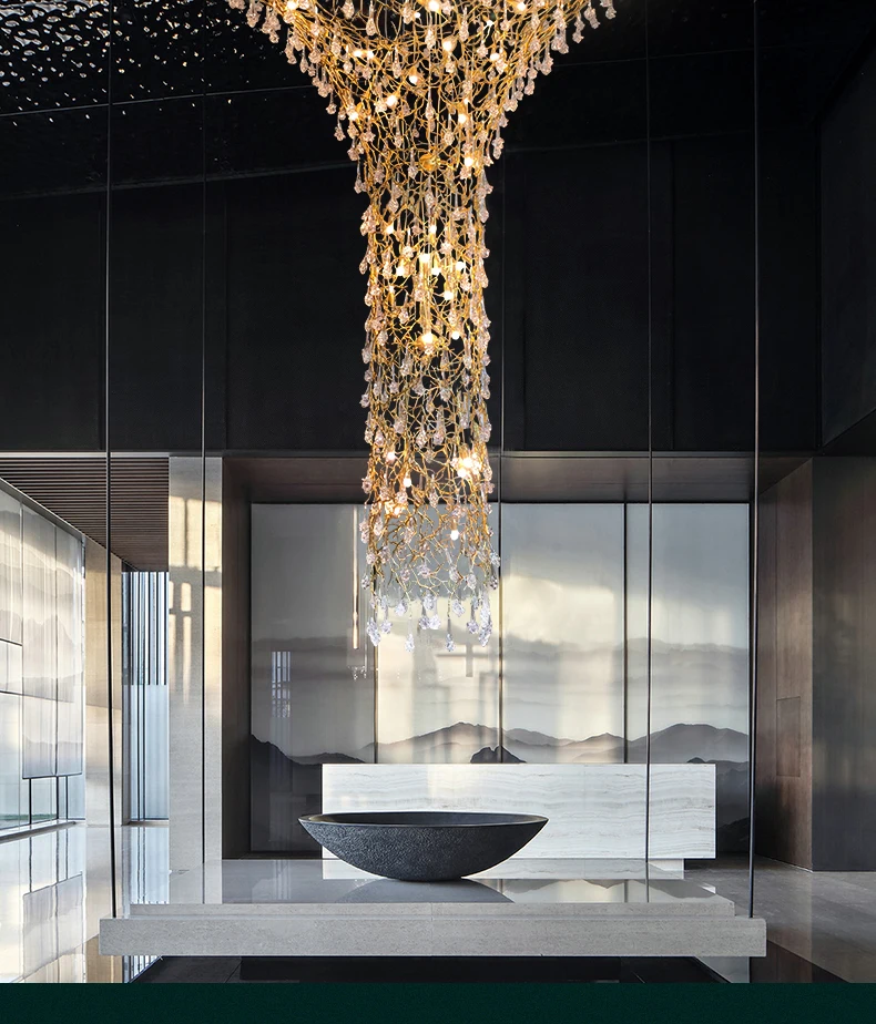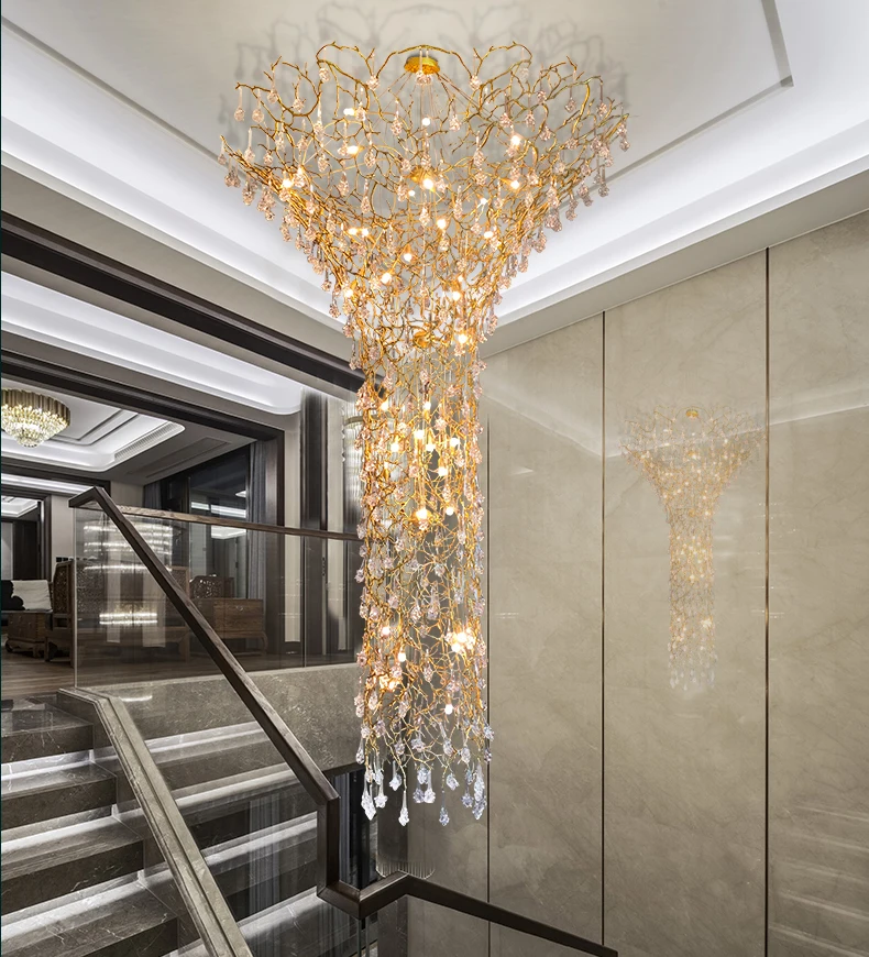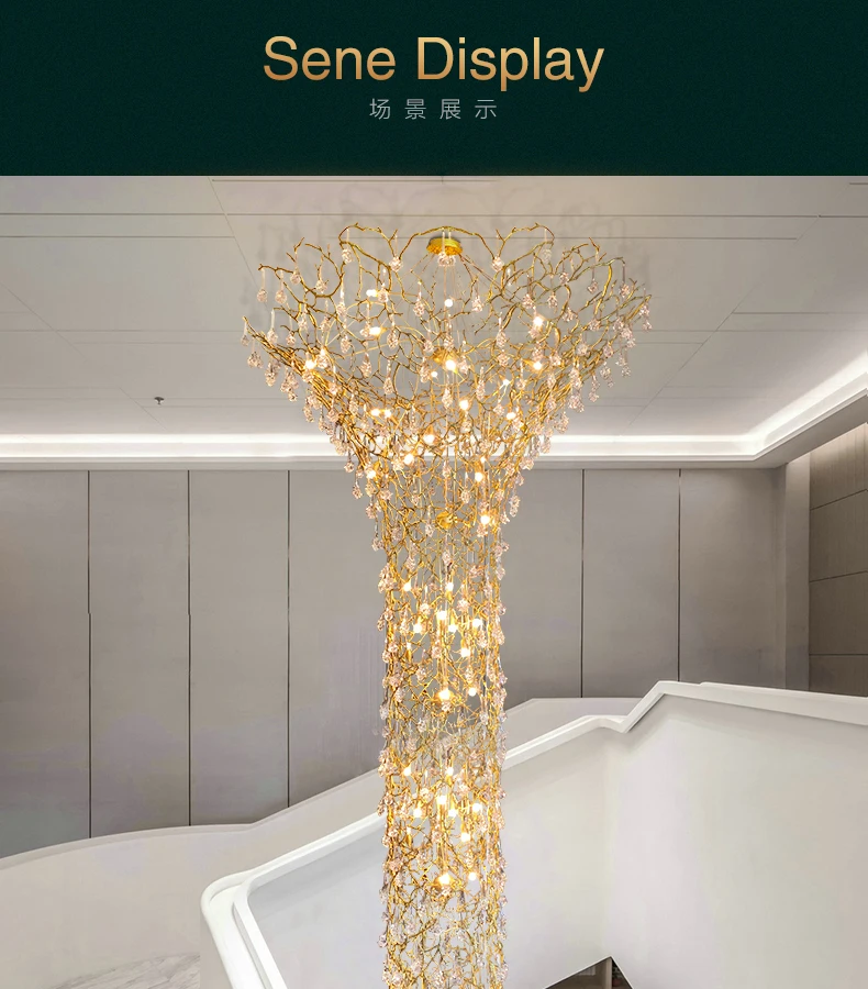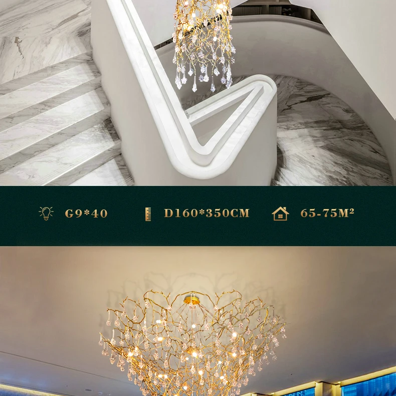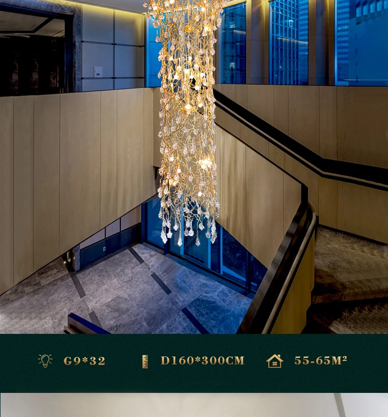 European Style Crystal Chandelier duplex Villa Hotel staircase lamp luxury atmosphere Sales Department lobby engineering lamps