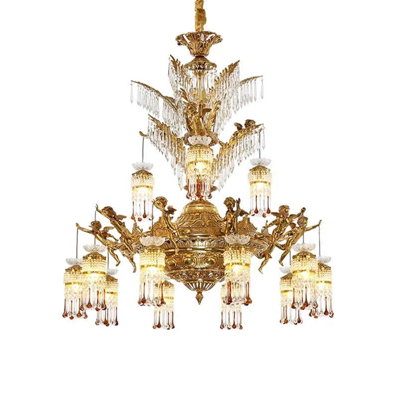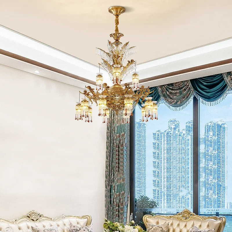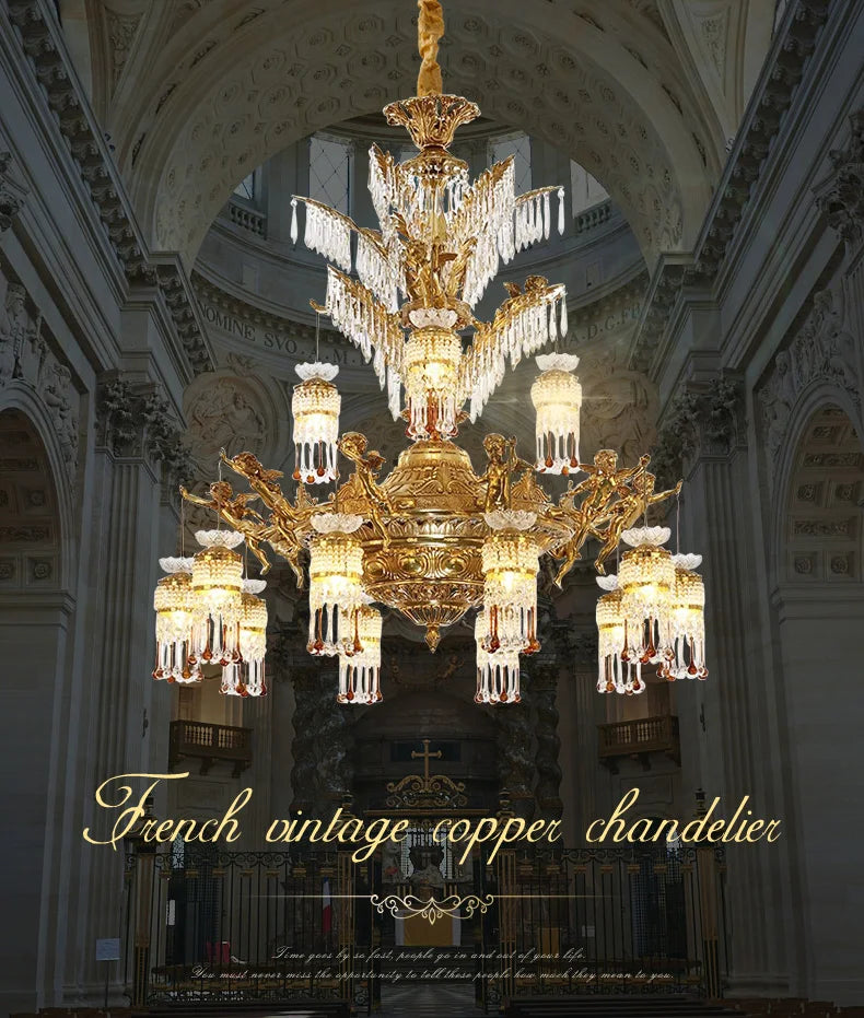 European Style Decorative Church Crystal Chandeliers Antique Villa Living Room Pendant Light French Retro Luxury Classical Lamp