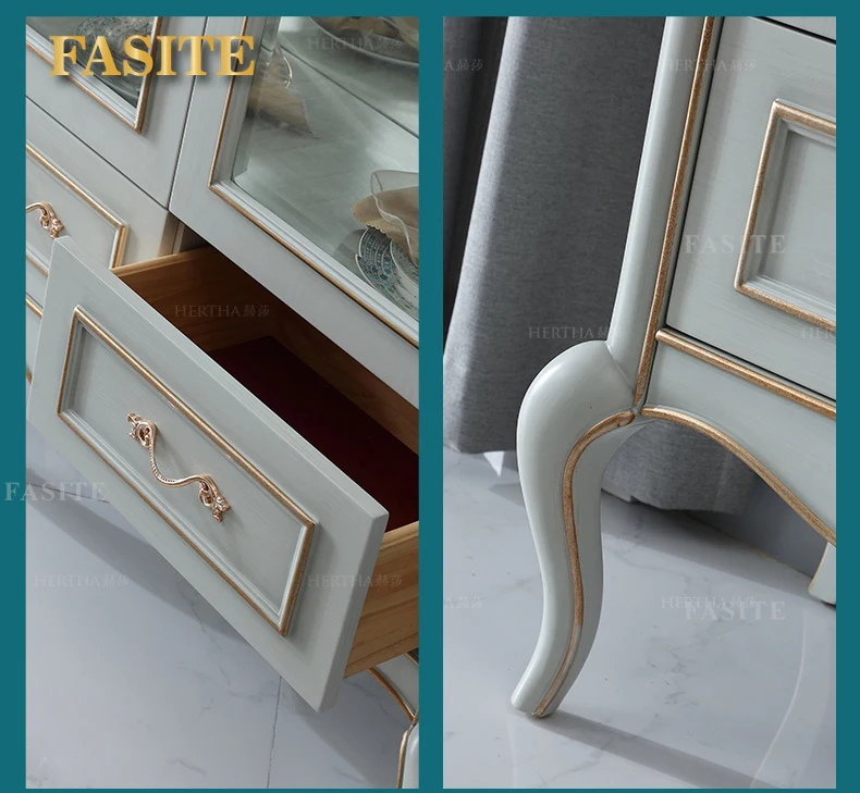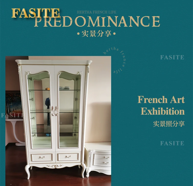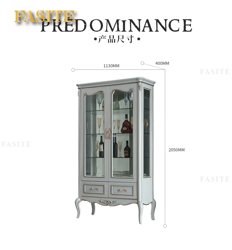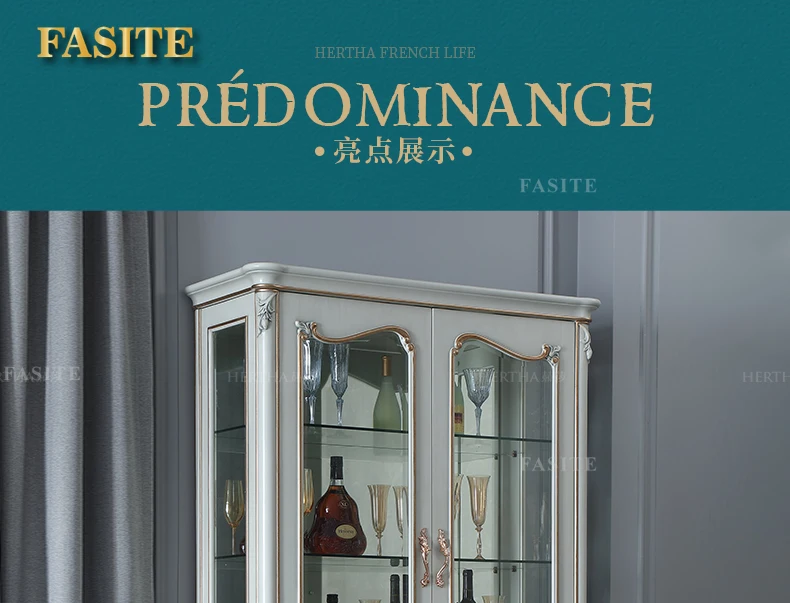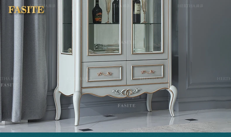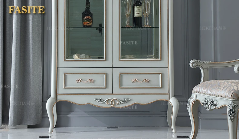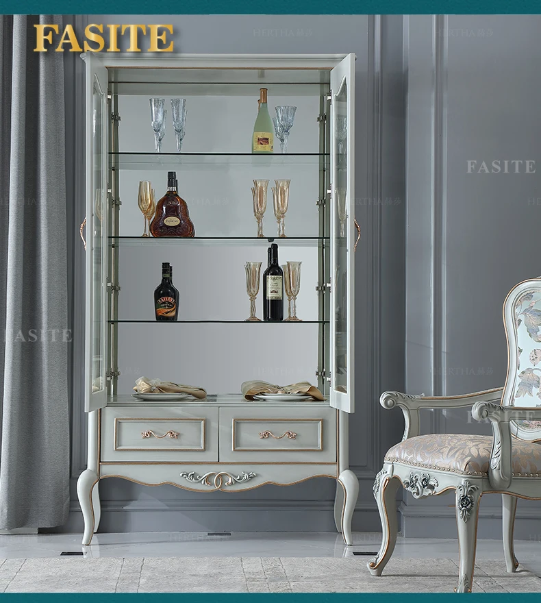 European style double door carved 1-meter wine cabinet, living room glass storage cabinet, floor cabinet