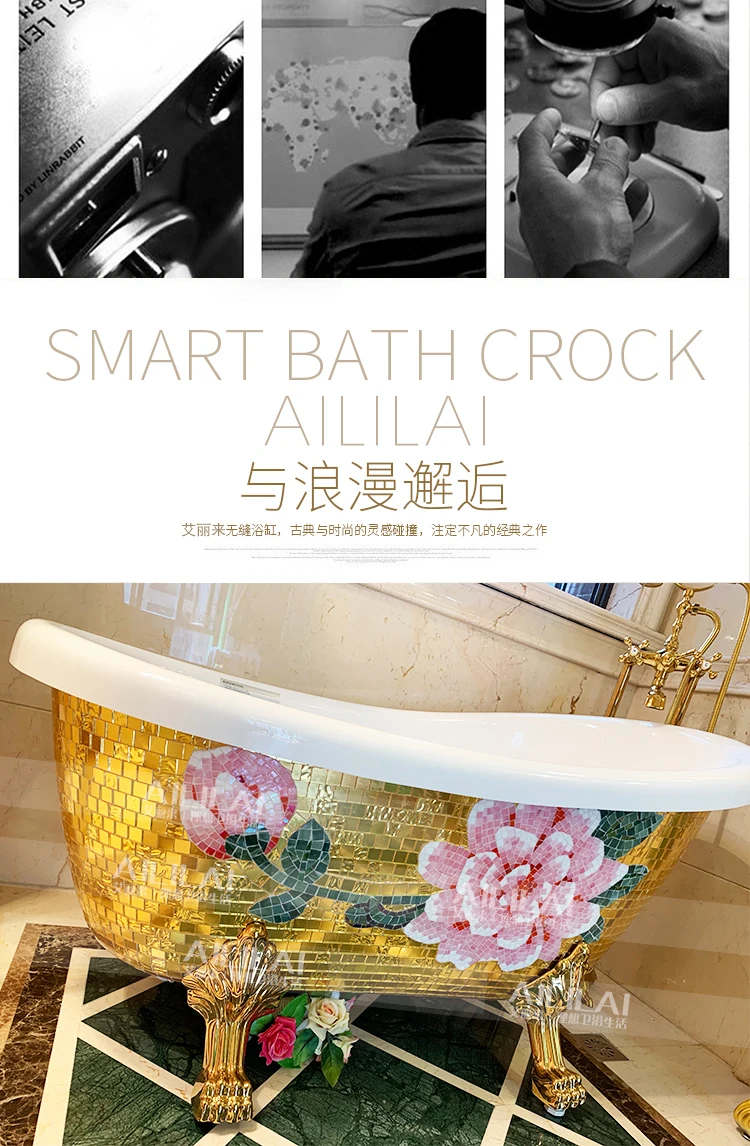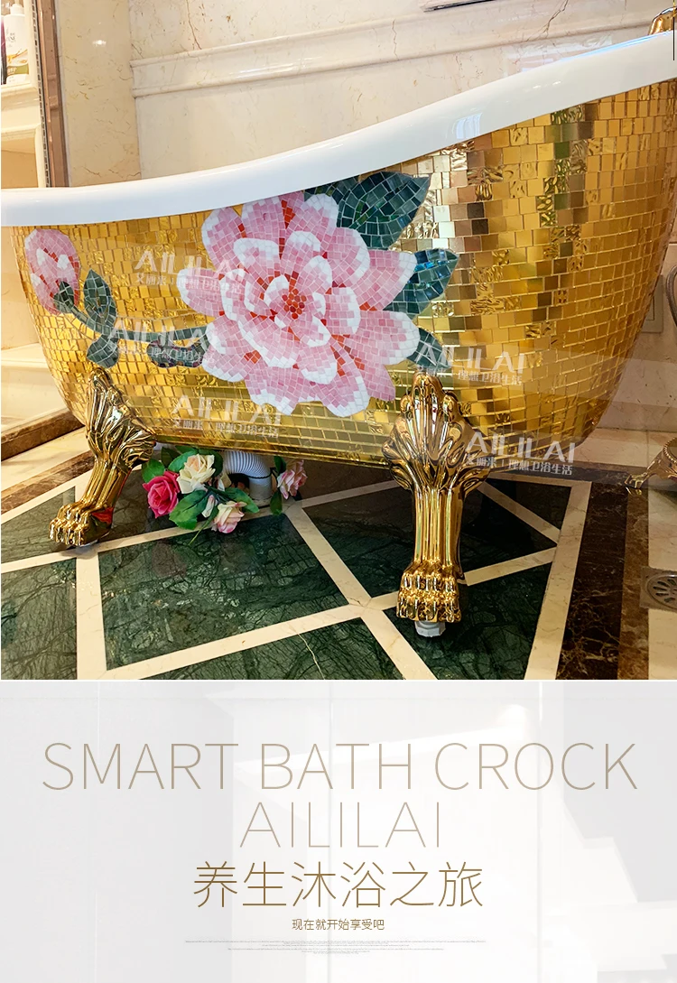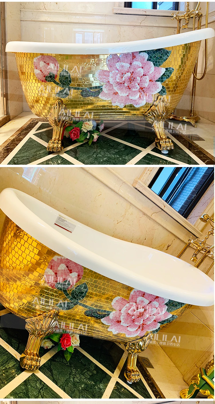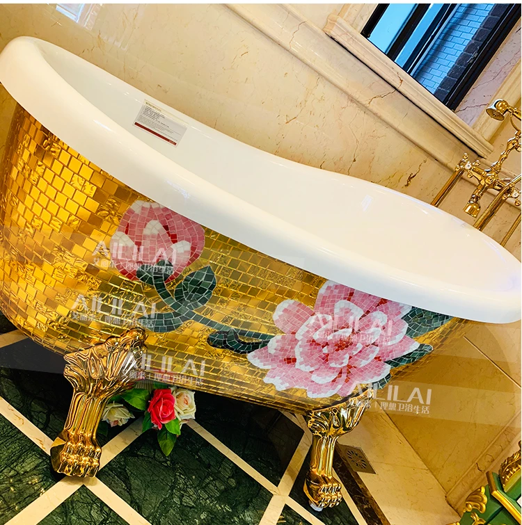European-style freestanding imperial concubine golden bathtub small apartment pearl acrylic home adult bathtub 1.5 m