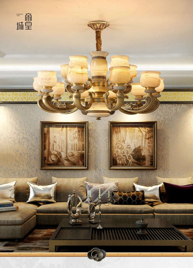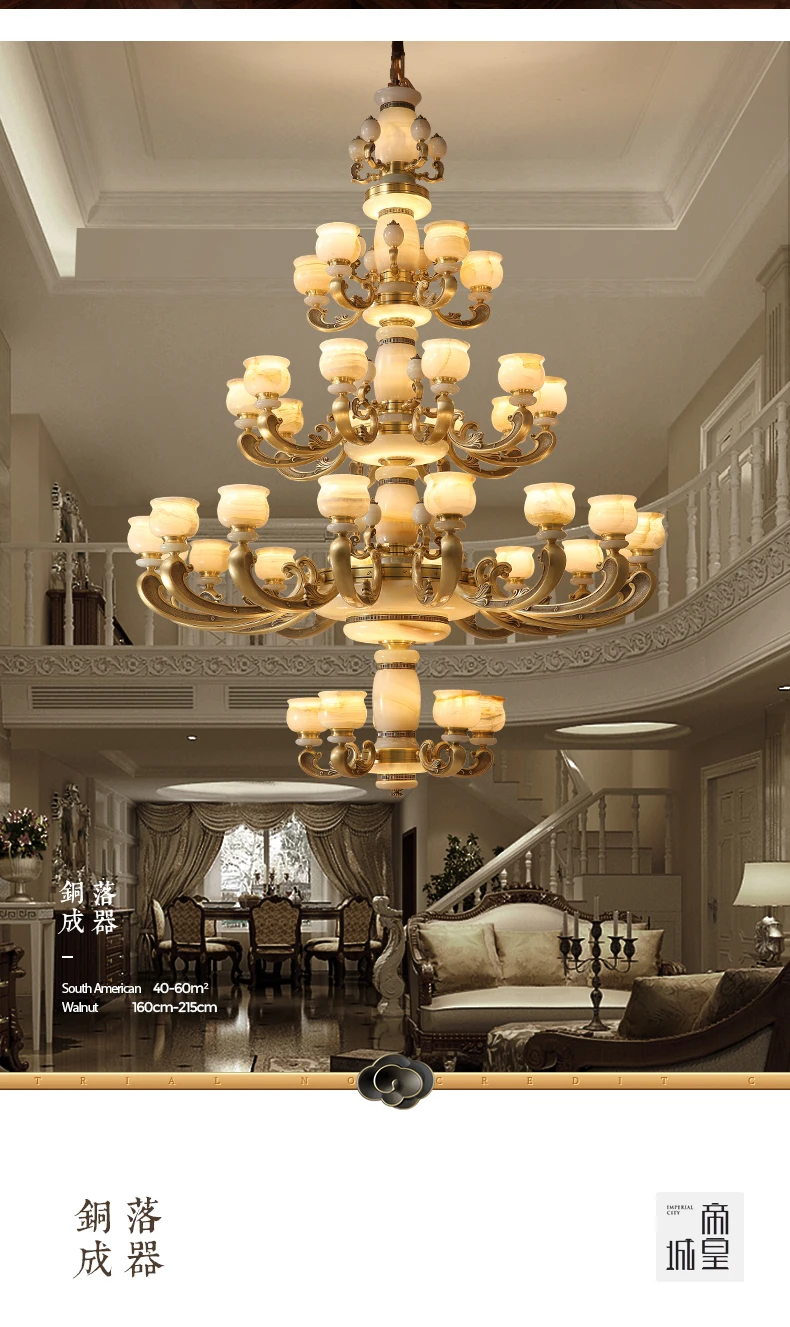 European style living room chandelier simple European style atmospheric luxury jade light luxury villa duplex floor lamp
