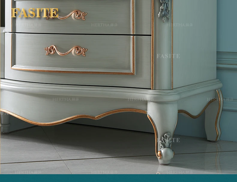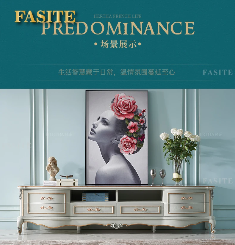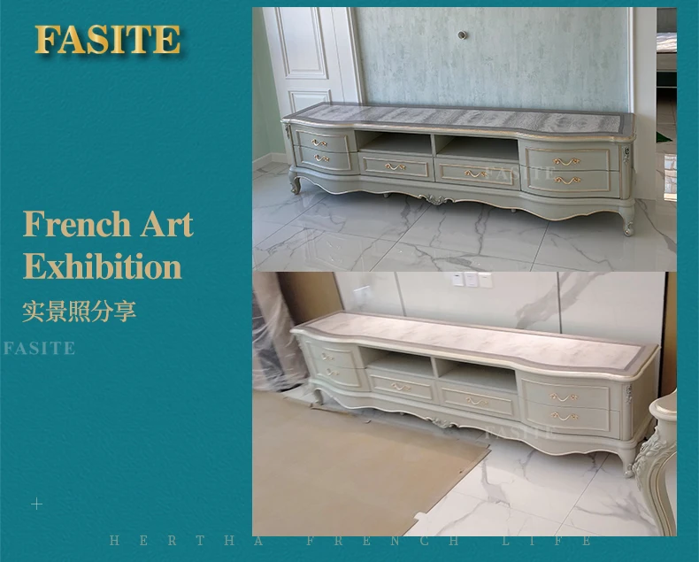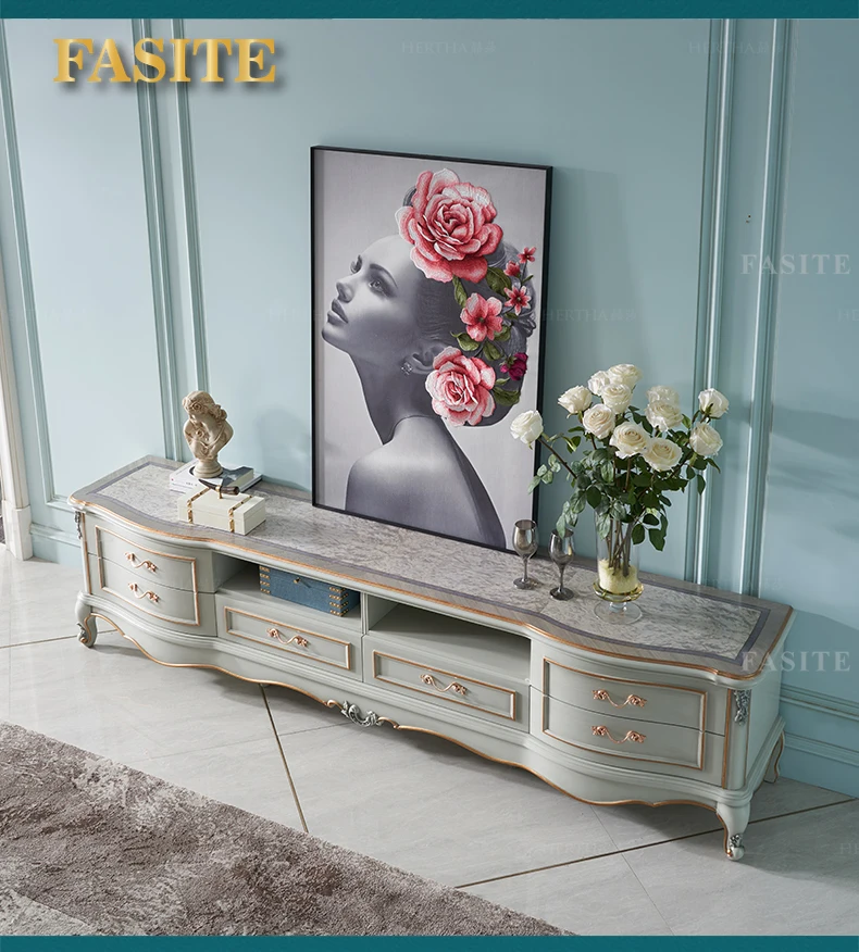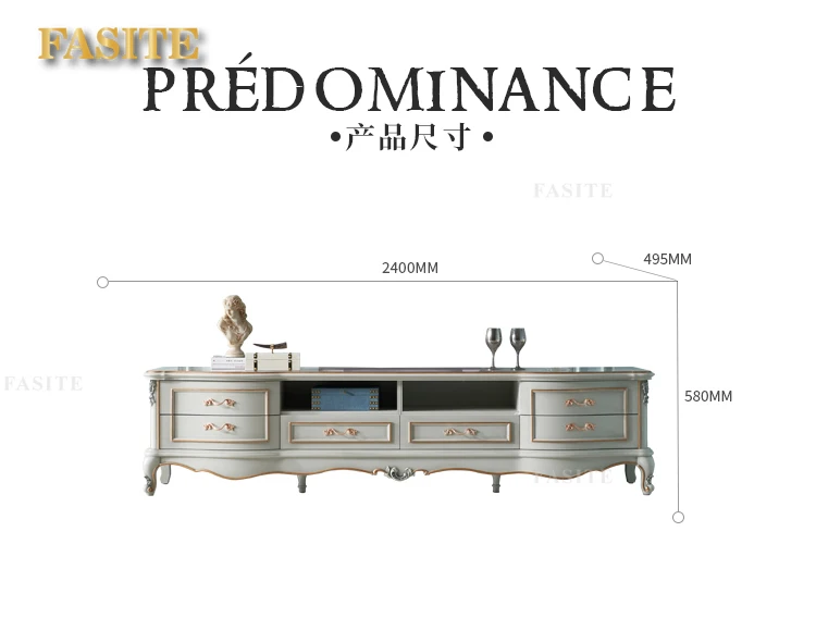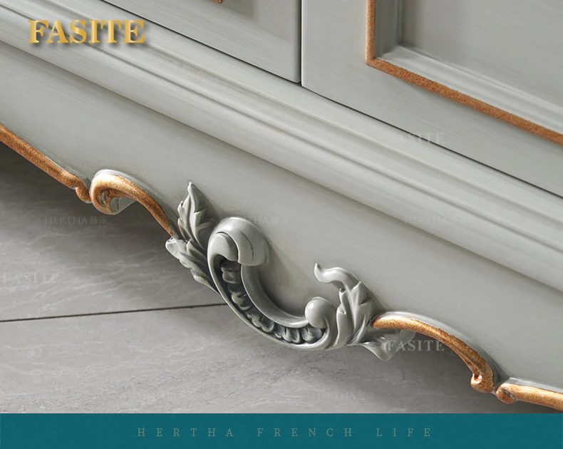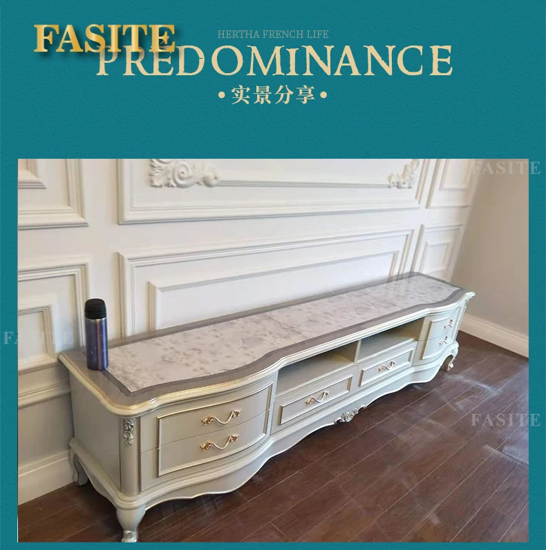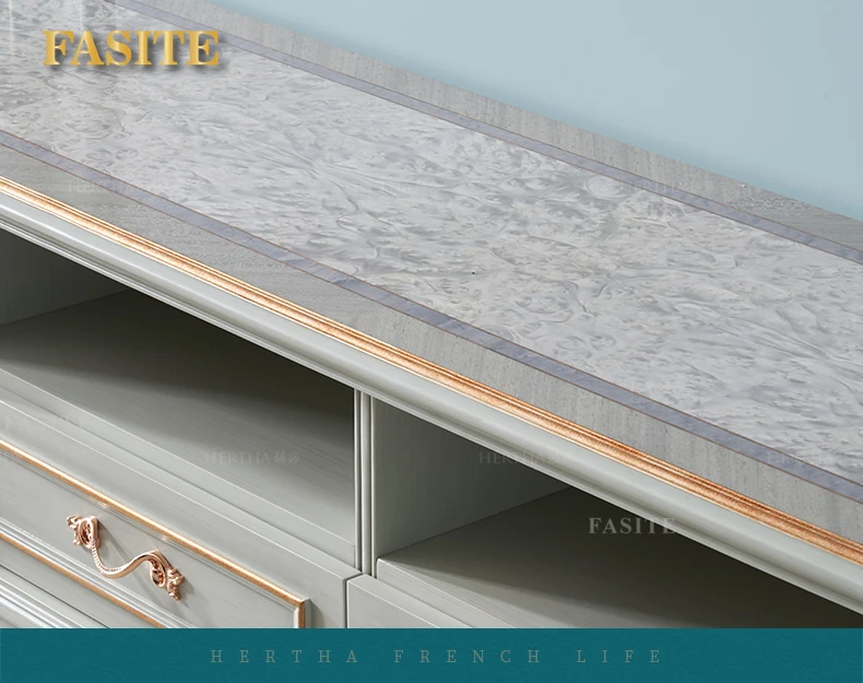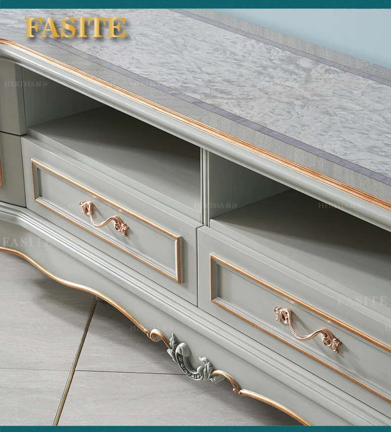 European style solid wood 2.4m TV cabinet living room old gold drawing cabinet storage cabinet
