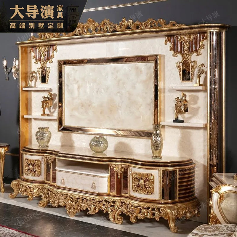 European style solid wood carving combination fabric sofa French style gold foil art sofa Luxury furniture customization