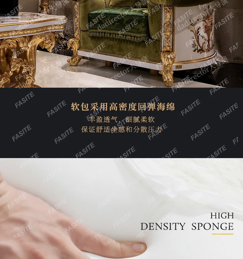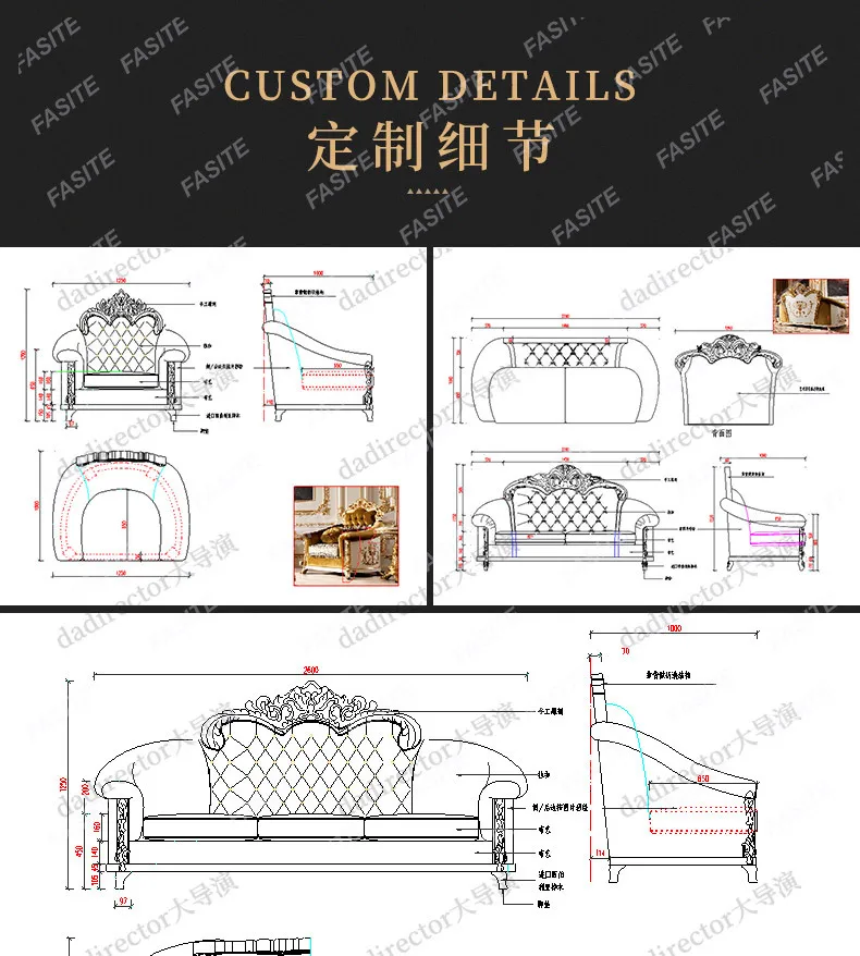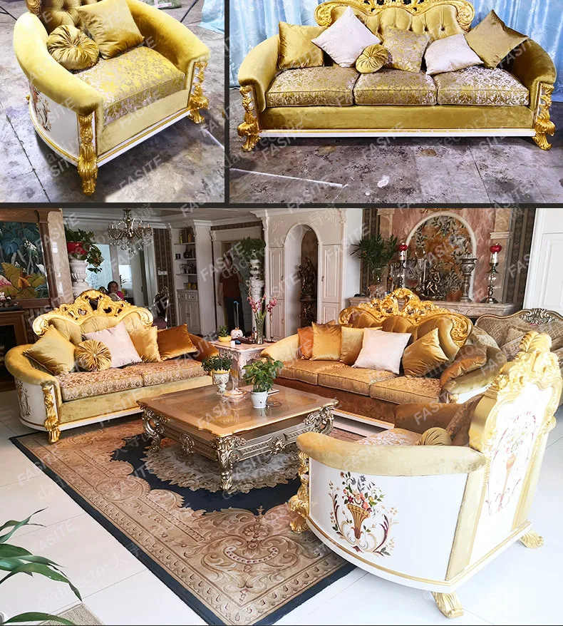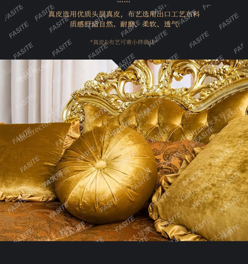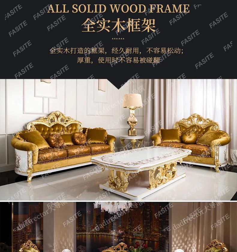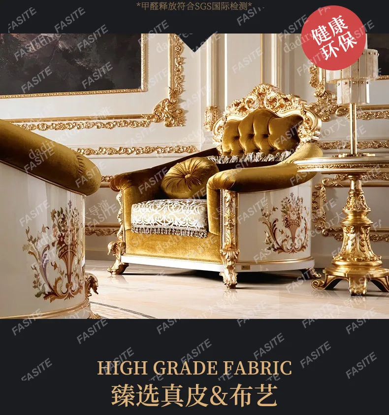 European style solid wood fabric sofa combination French style palace luxury villa living room gold foil sofa customization