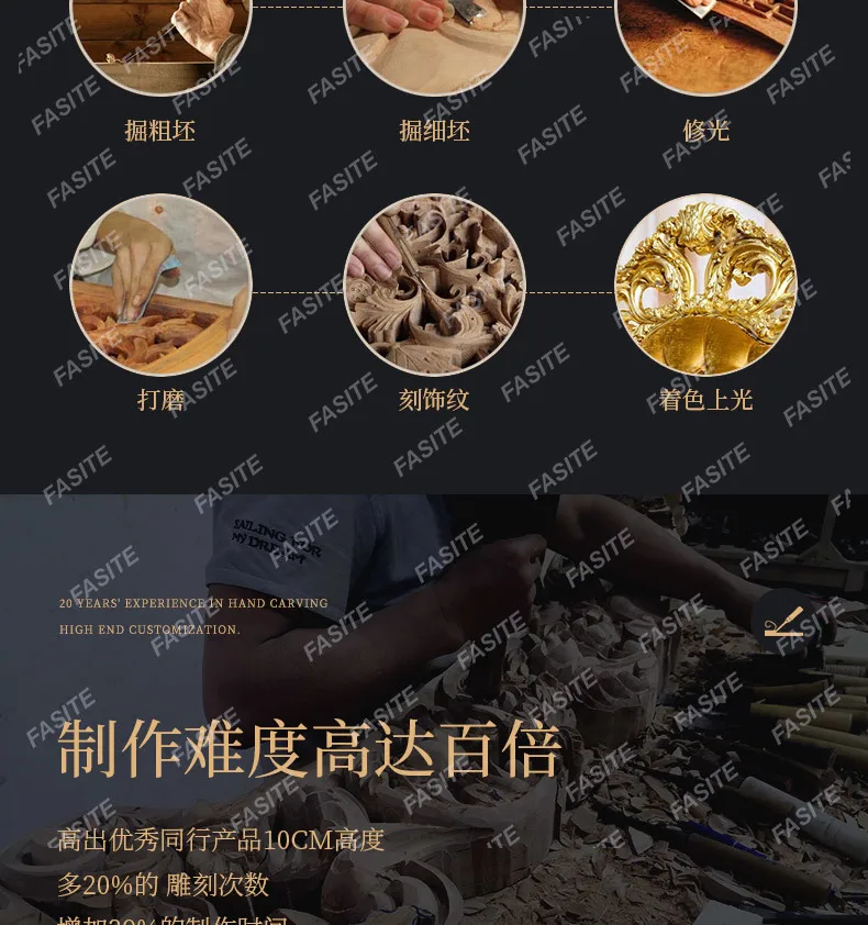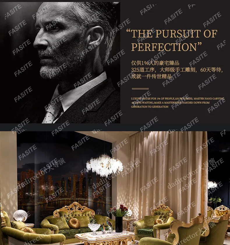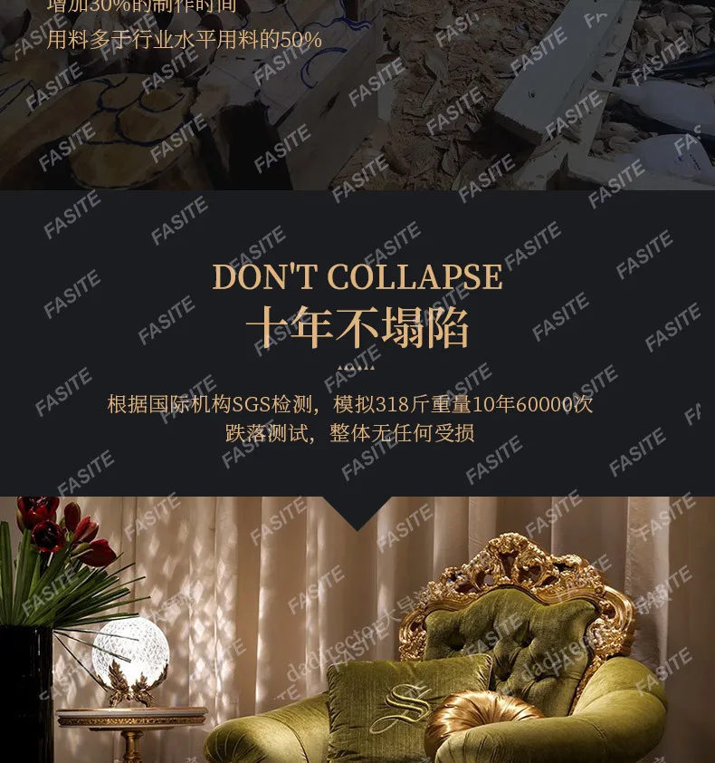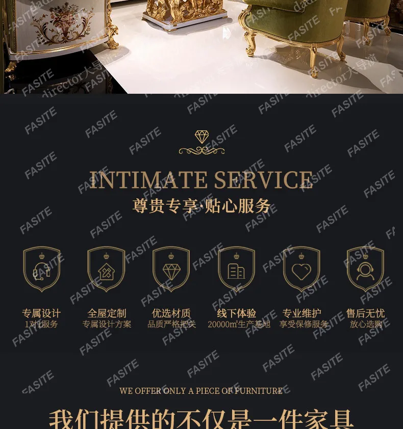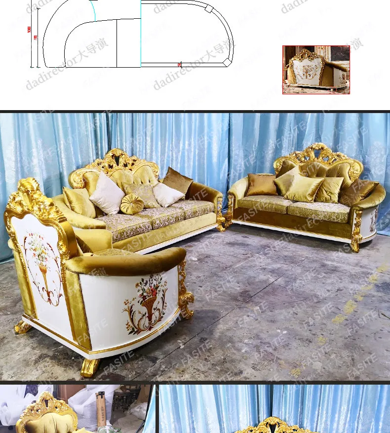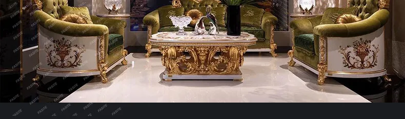 European style solid wood fabric sofa combination French style palace luxury villa living room gold foil sofa customization
