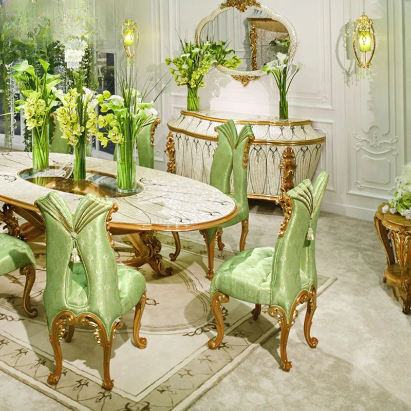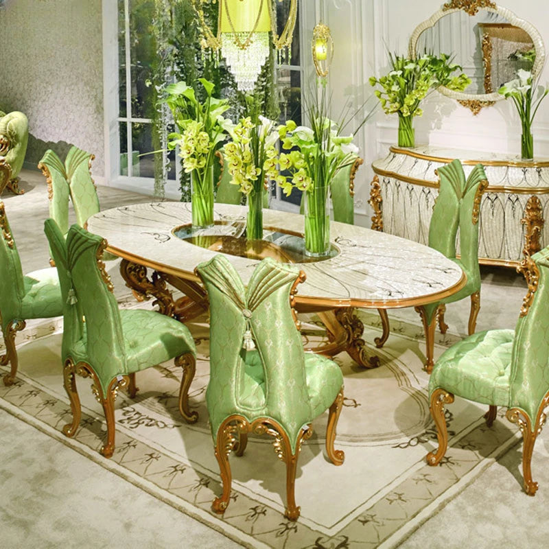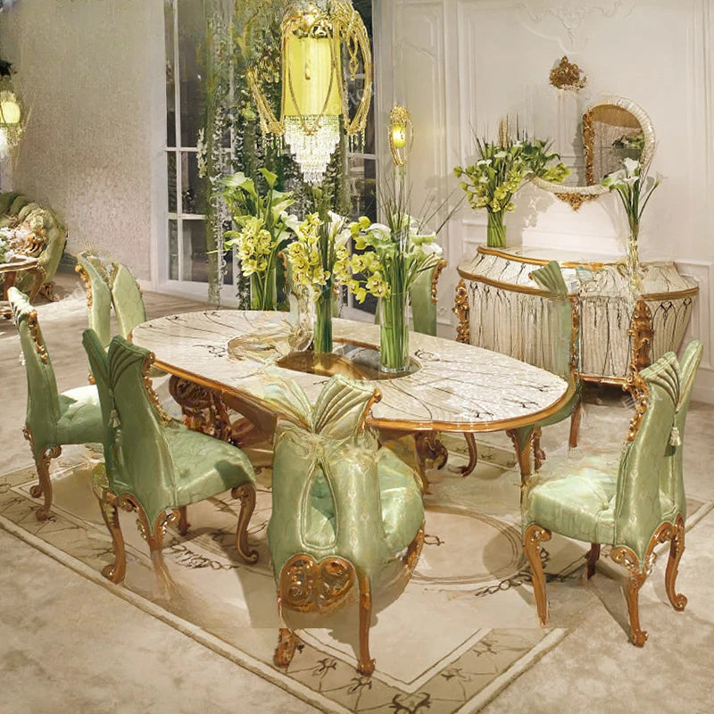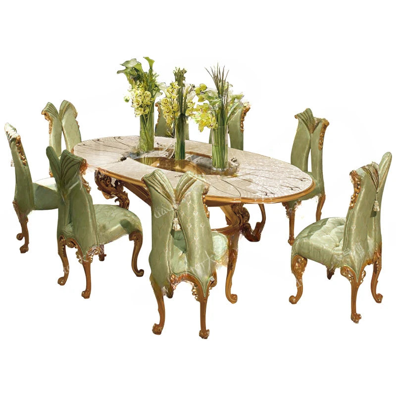 European style solid wood oval large dining table apartment French palace dining table and chair combination luxury villa