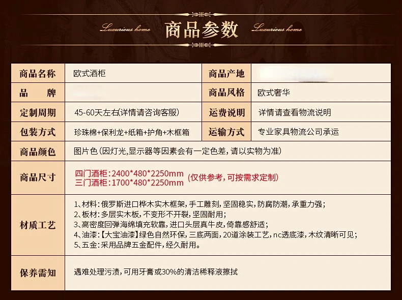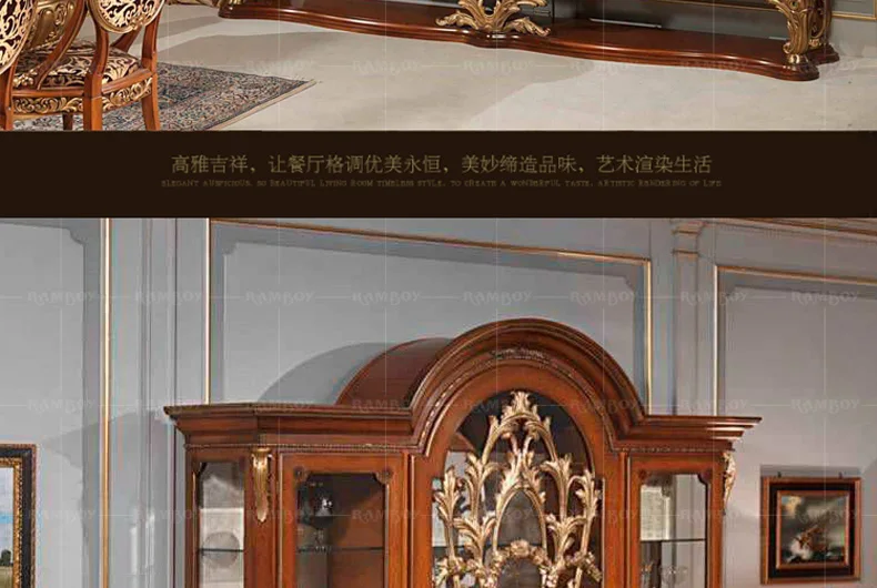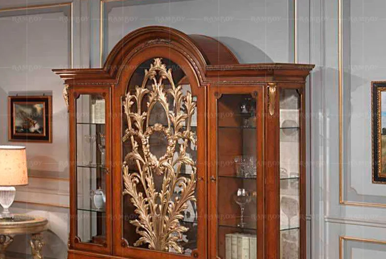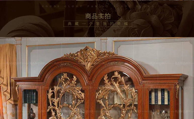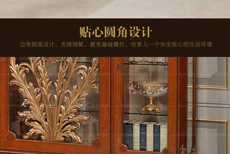 European style villa living room furniture solid wood carved glass door display cabinet luxury four door wine cabinet