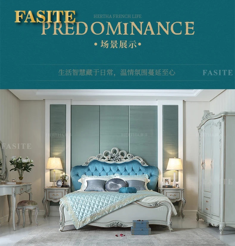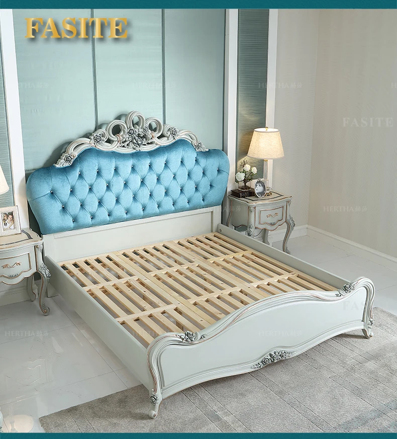 European style villa solid wood 1.8 double bed, master bedroom carved wedding princess bed