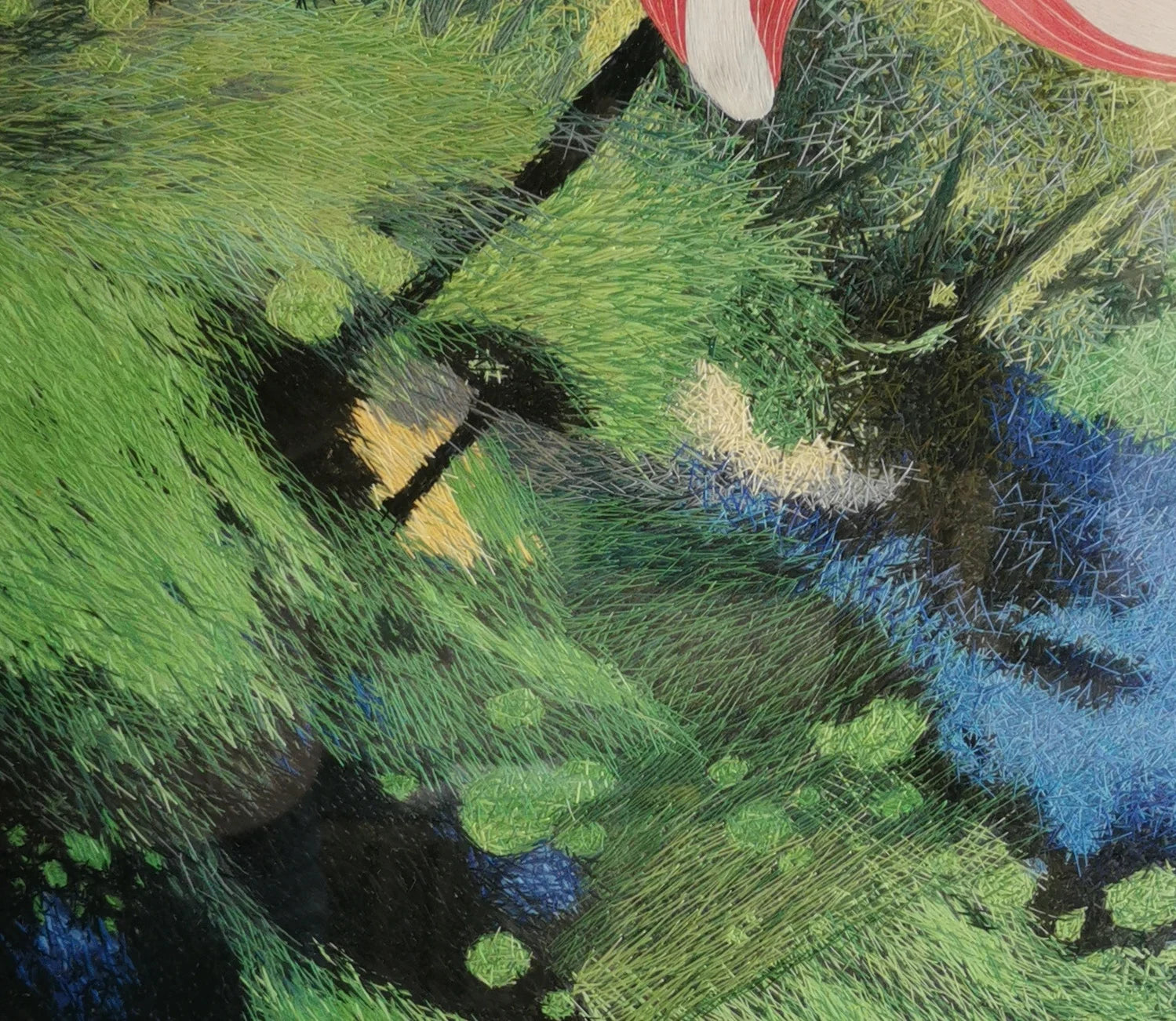 This is a beautiful silk embroidery painting from China, the entire silk base is fully covered by dense hand stitches.