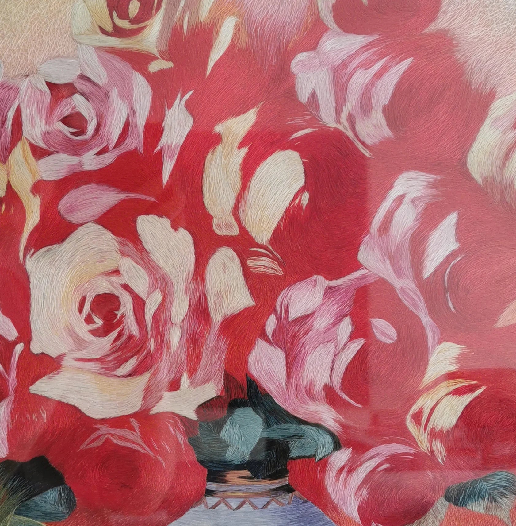 A very fine and beautiful hand embroidery painting from China, it is 100% hand embroidered with millions of silk threads on silk fabric base, the silk base is fully covered by fine split silk and the thinnest silk used for this embroidery is 1/8 of a single silk, there are 3-5 layers of stitches on the fabric base, please check the pictures for details.