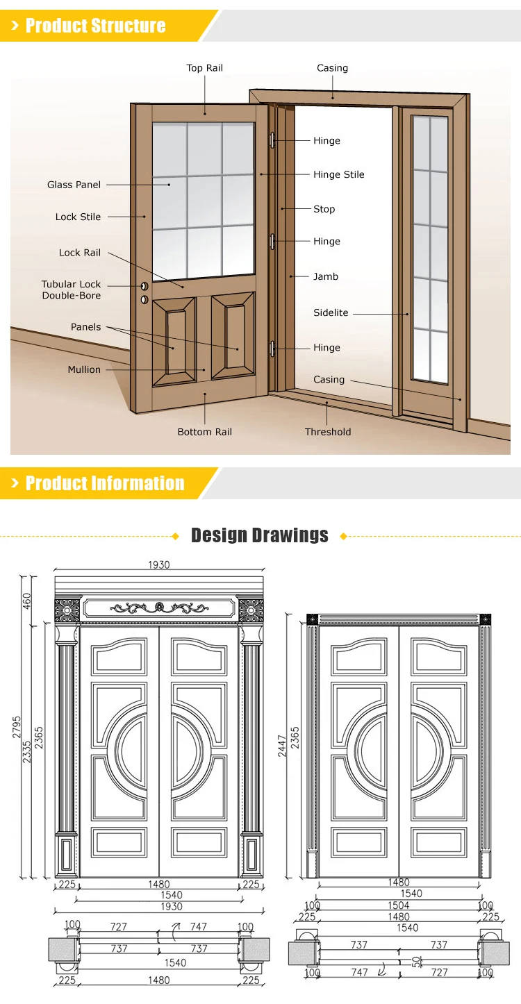 Exterior Front Entry Teak Wood Doors Customized Design Wood Main Front Entry Doors For Sale