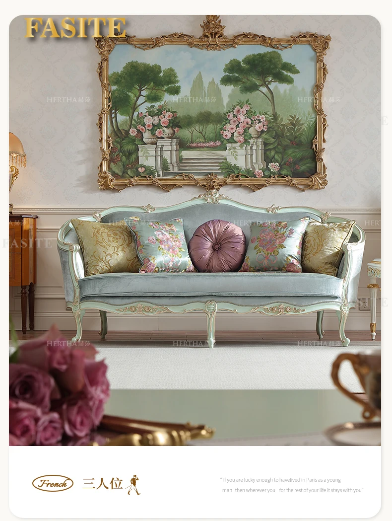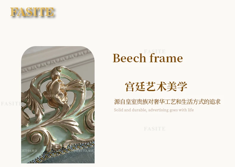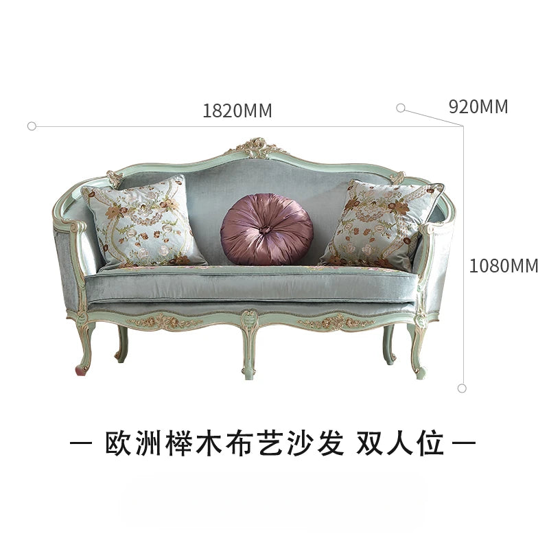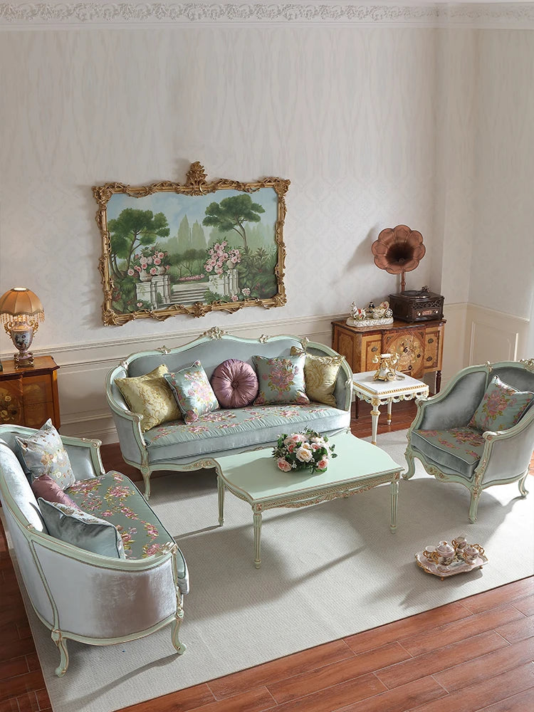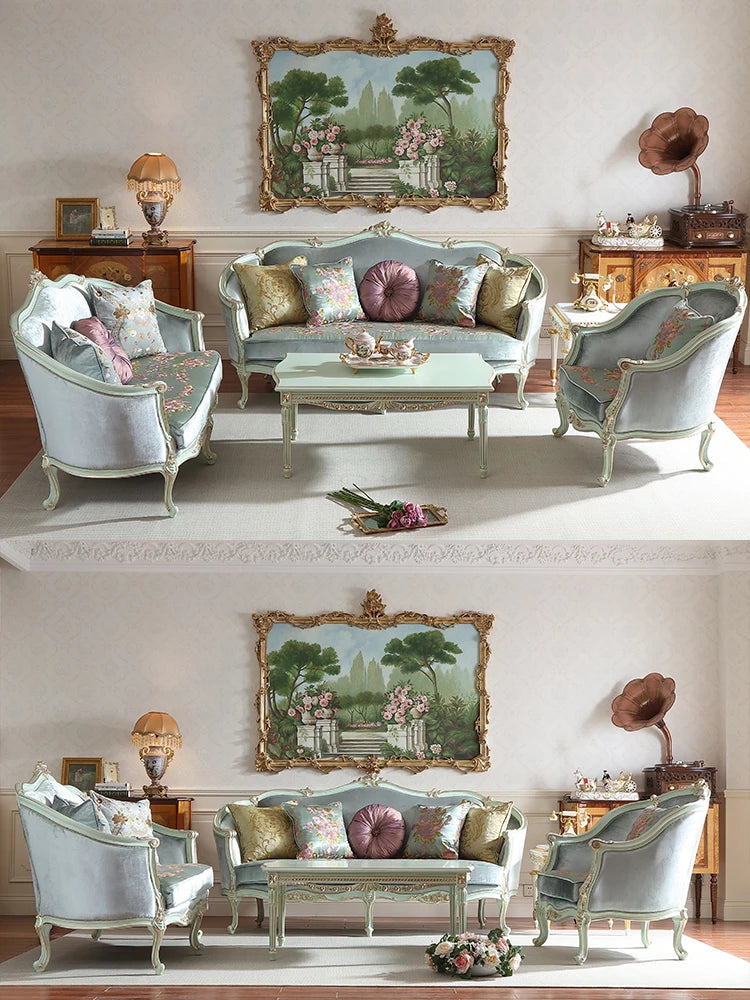 Fabric sofa combination beech wood light luxury retro European style solid wood carving