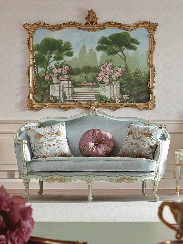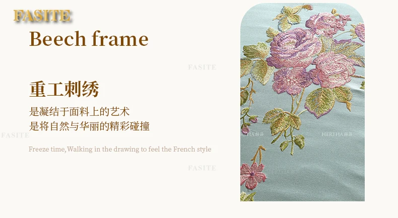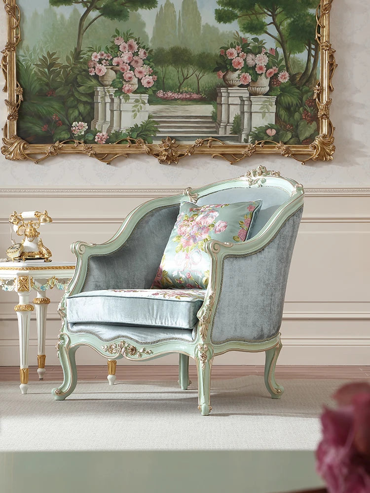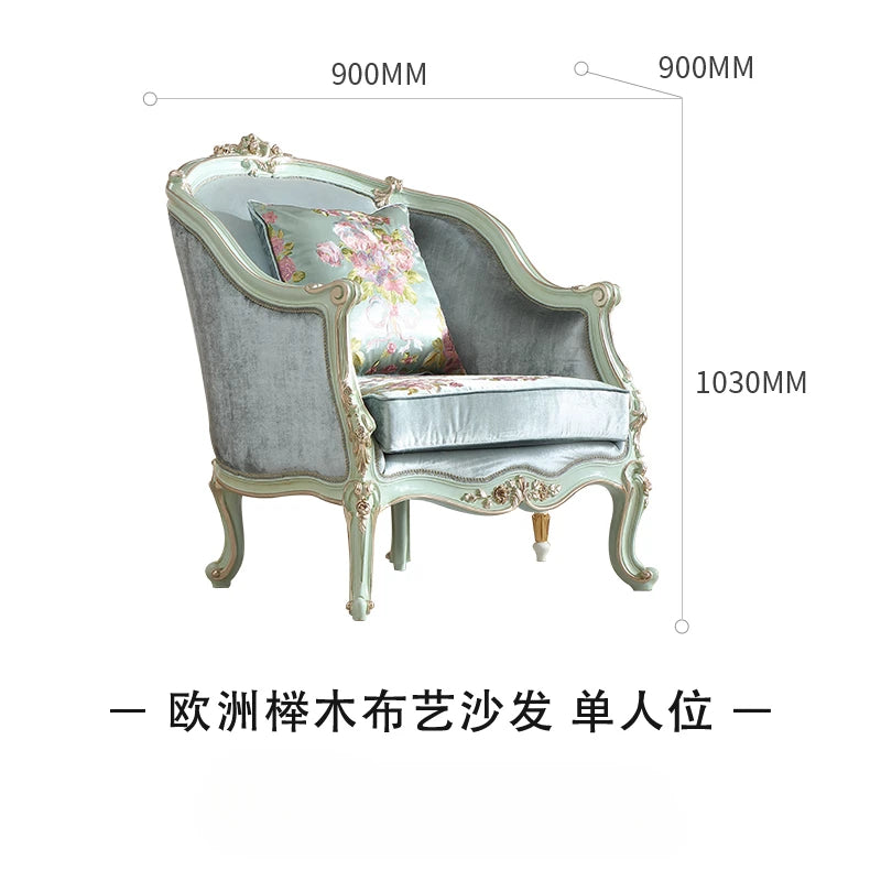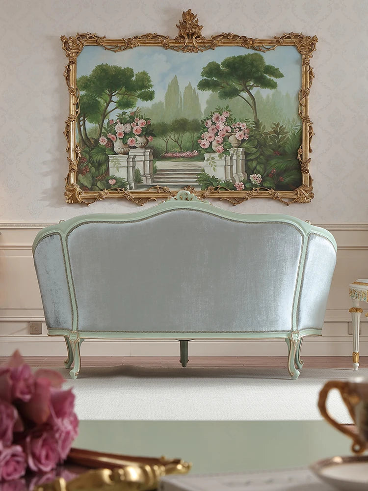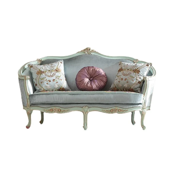 Fabric sofa combination beech wood light luxury retro European style solid wood carving