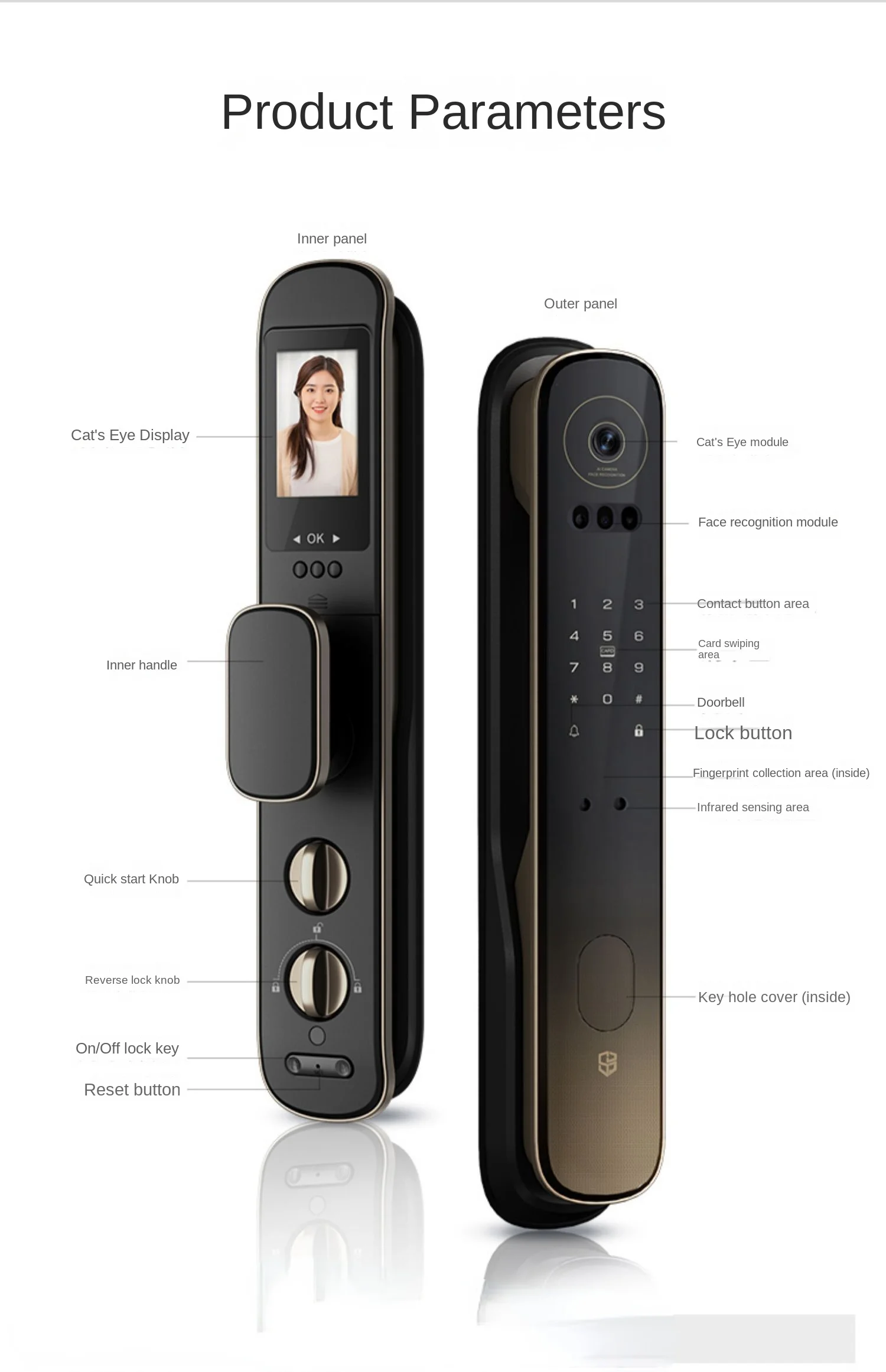 Face recognition fingerprint lock, household anti-theft door password lock, fully automatic intelligent visual electronic cat