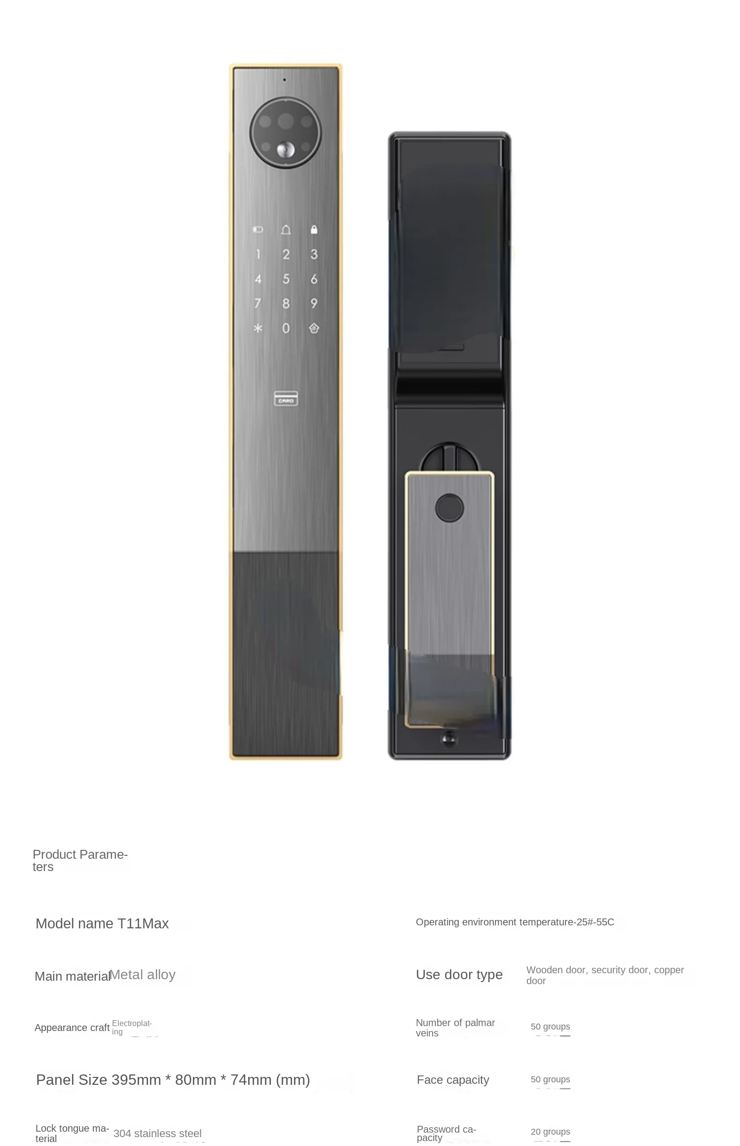 Facial recognition intelligent lock, household anti-theft door, electronic lock, fingerprint password lock, T11MAX