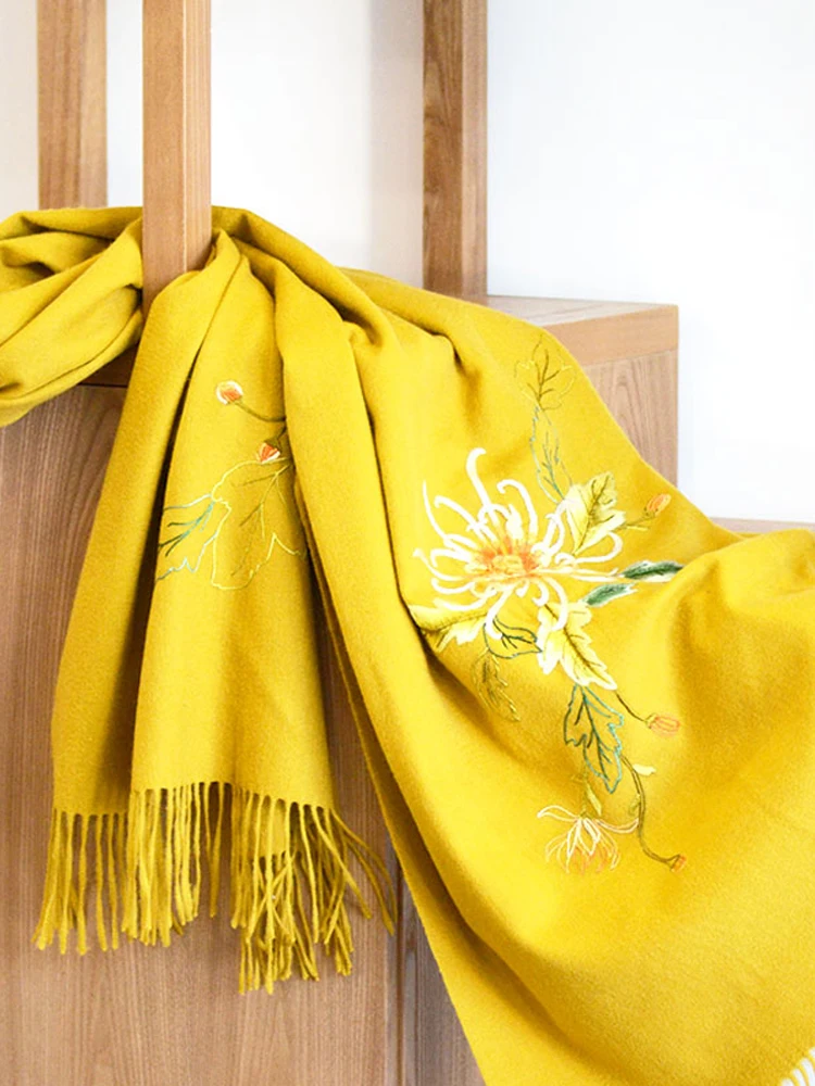 Famous Ancient Embroidery New Autumn and Winter Women's Scarves Handmade Su Embroidered Cashmere Shawl "Autumn Chrysanthemum Fra