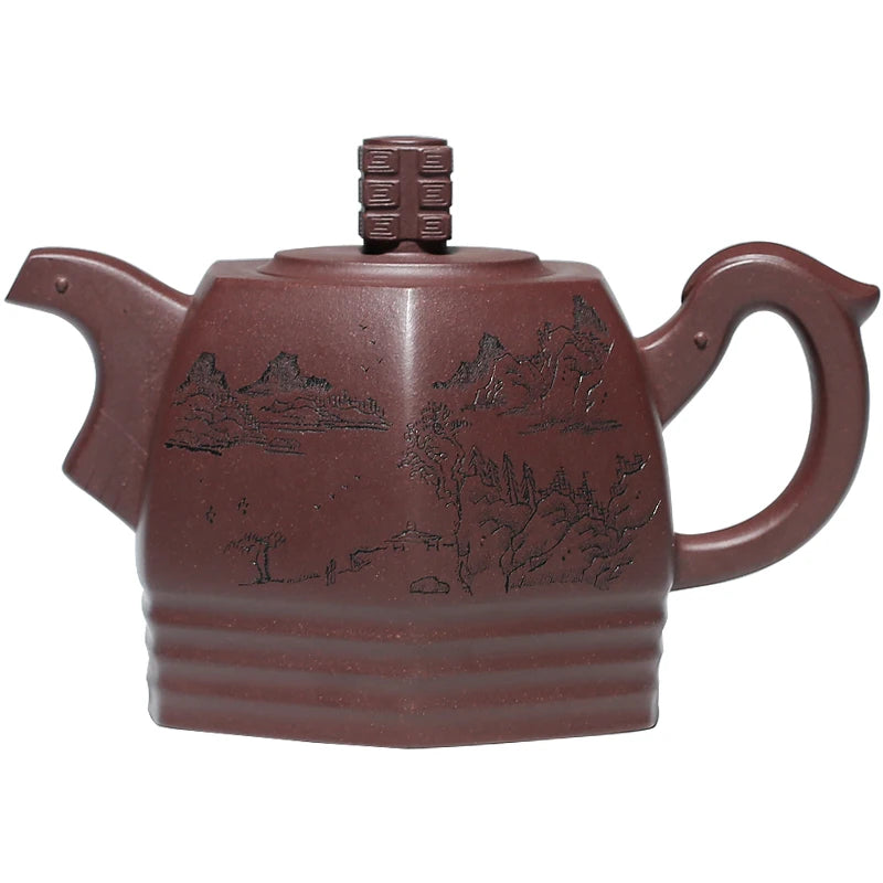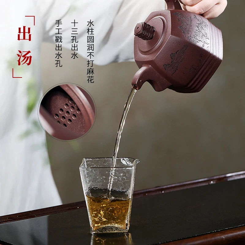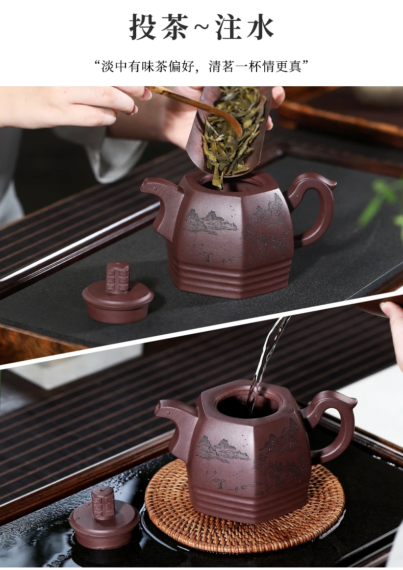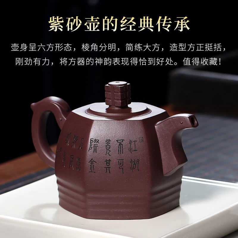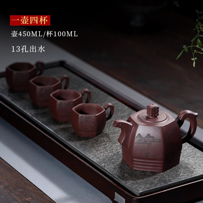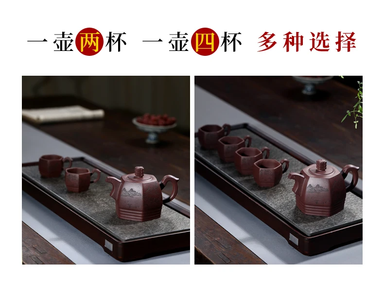 |Famous craftsman Zisha teapot six square teapot landscape kungfu tea set one pot four cups home tea new product