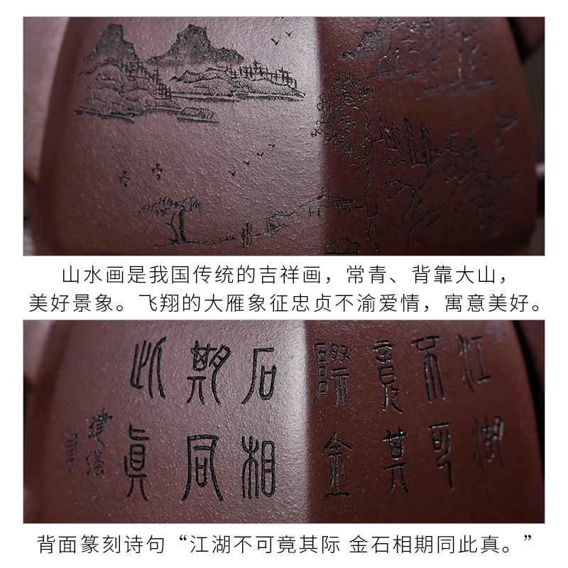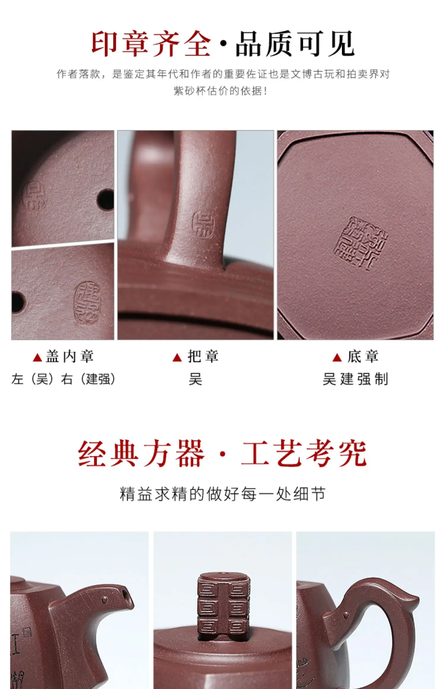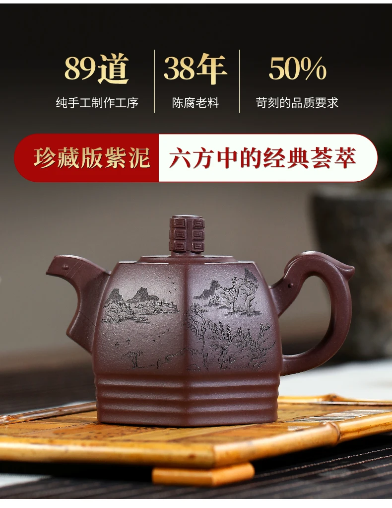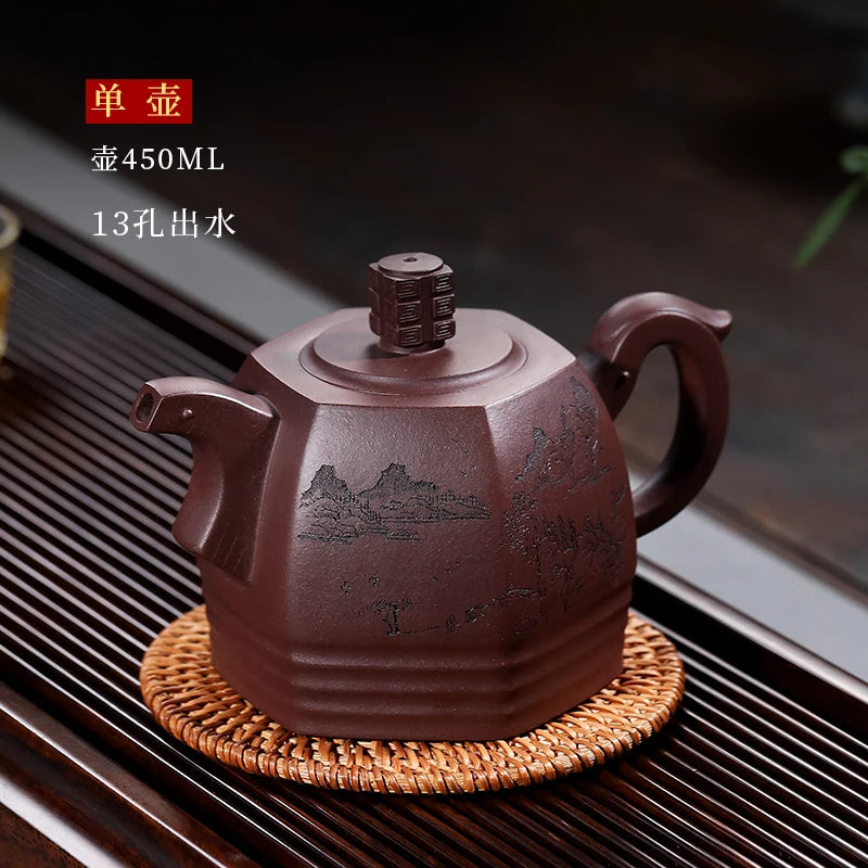 |Famous craftsman Zisha teapot six square teapot landscape kungfu tea set one pot four cups home tea new product