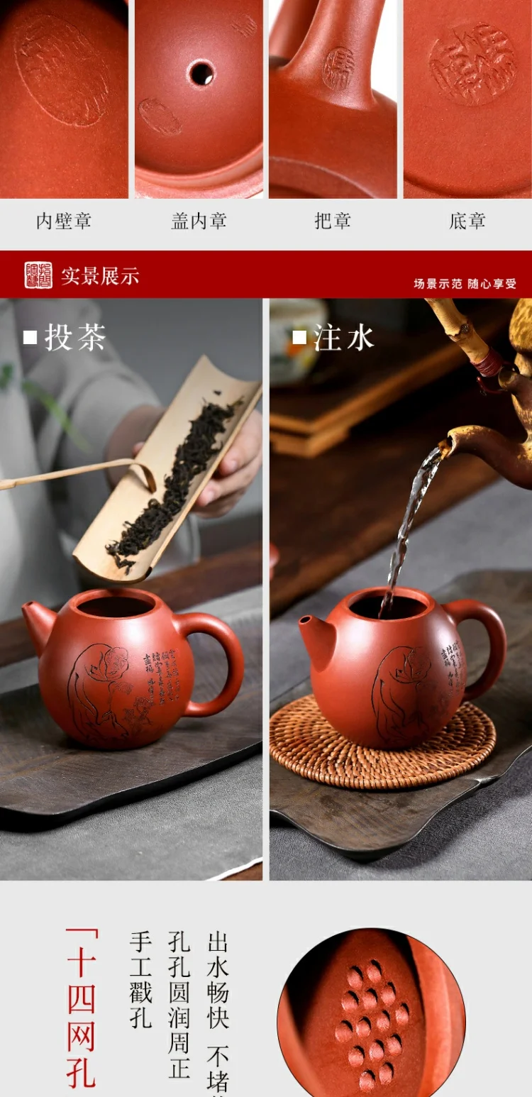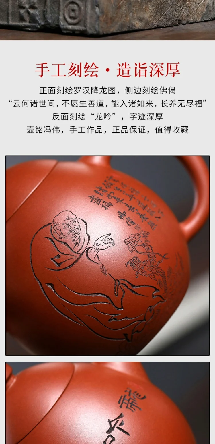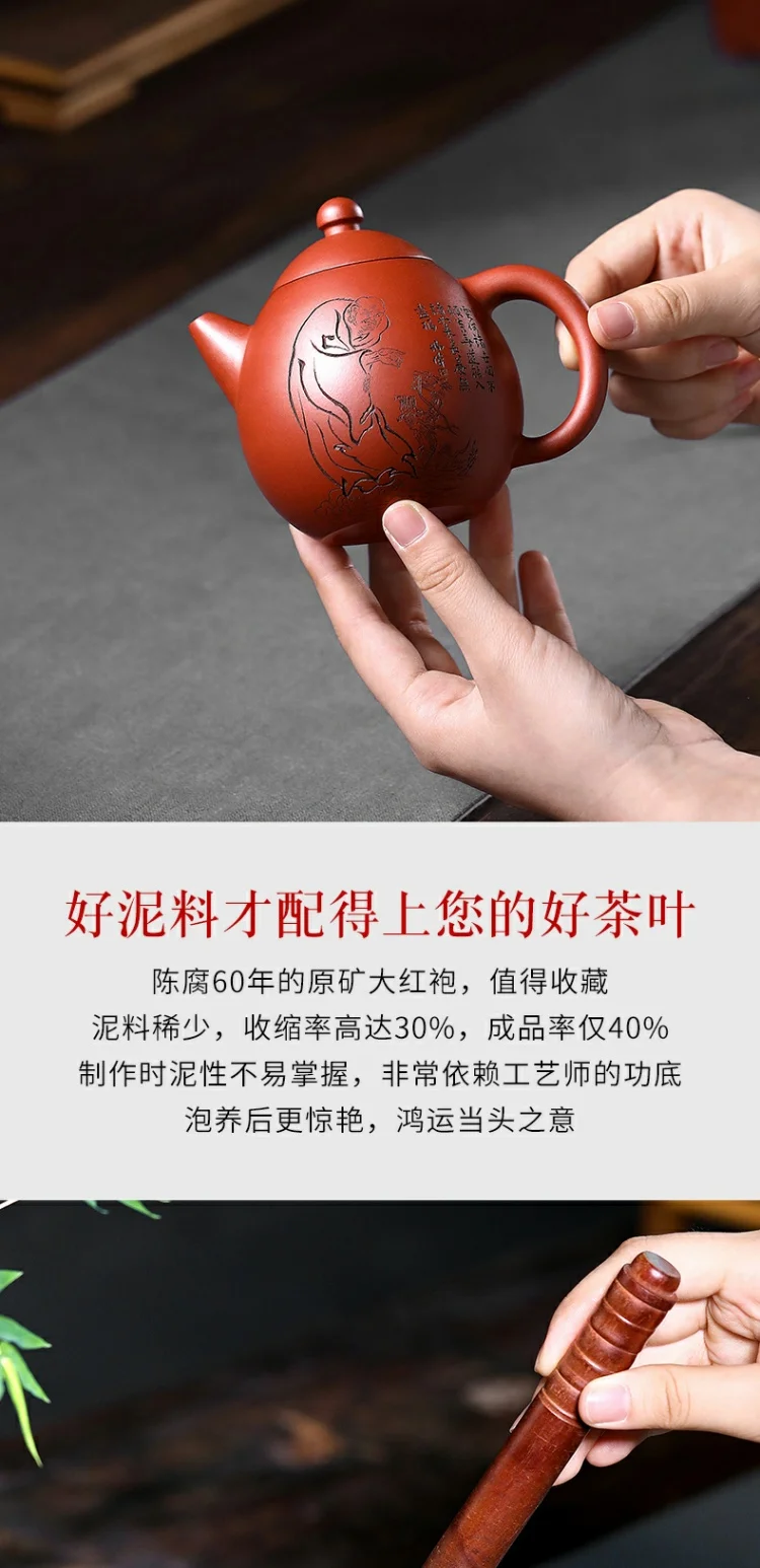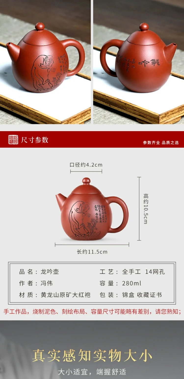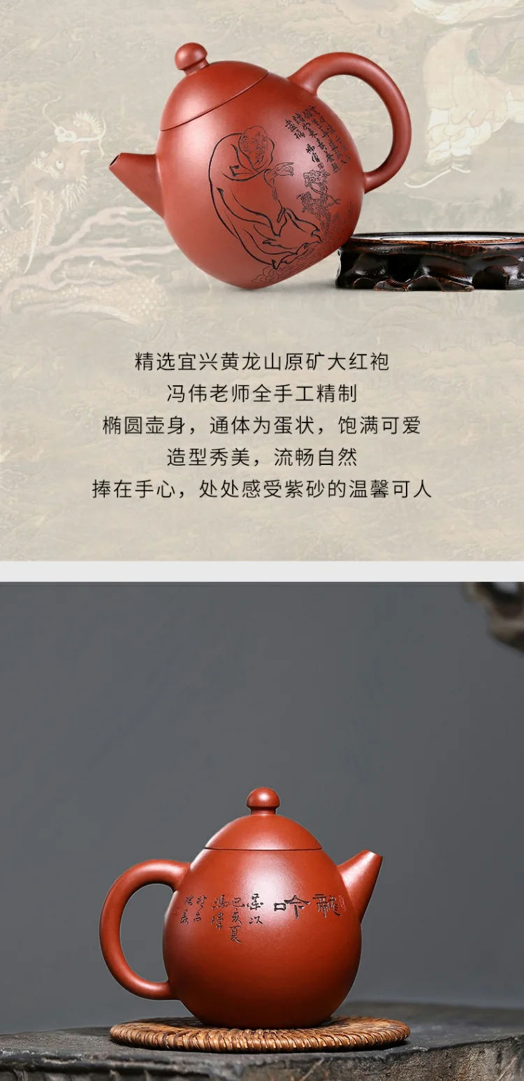 |Famous senior craft teapot feng wei zhu mud dahongpao recommended handmade pot home outfit dragon eggs