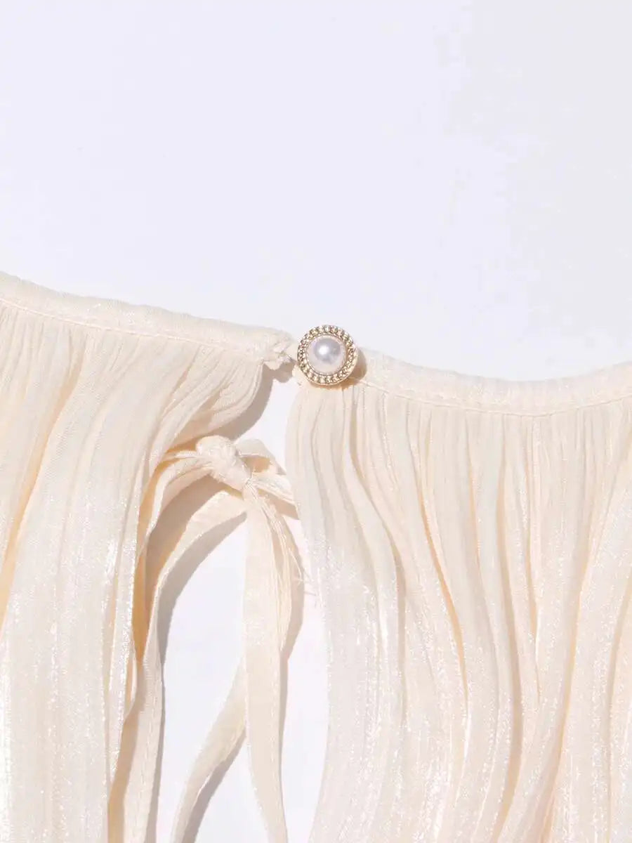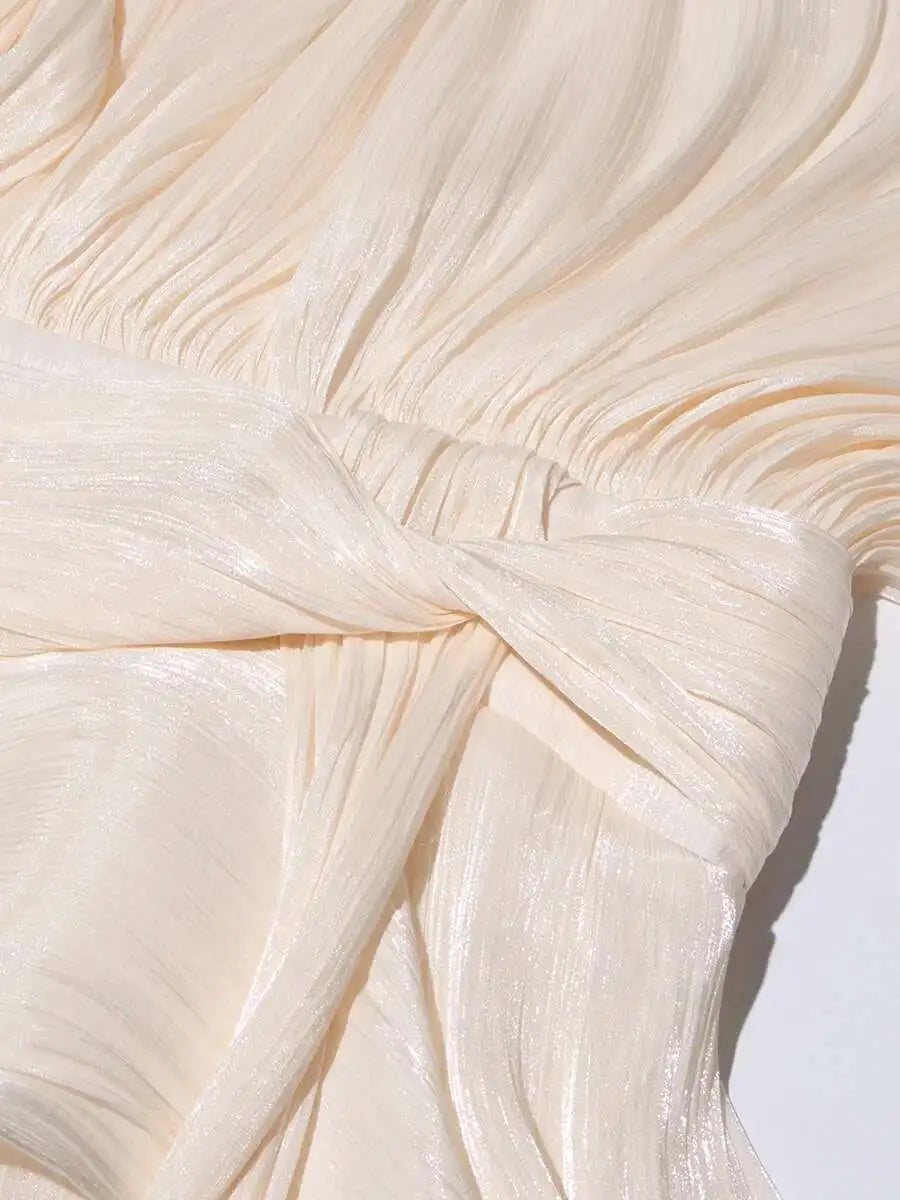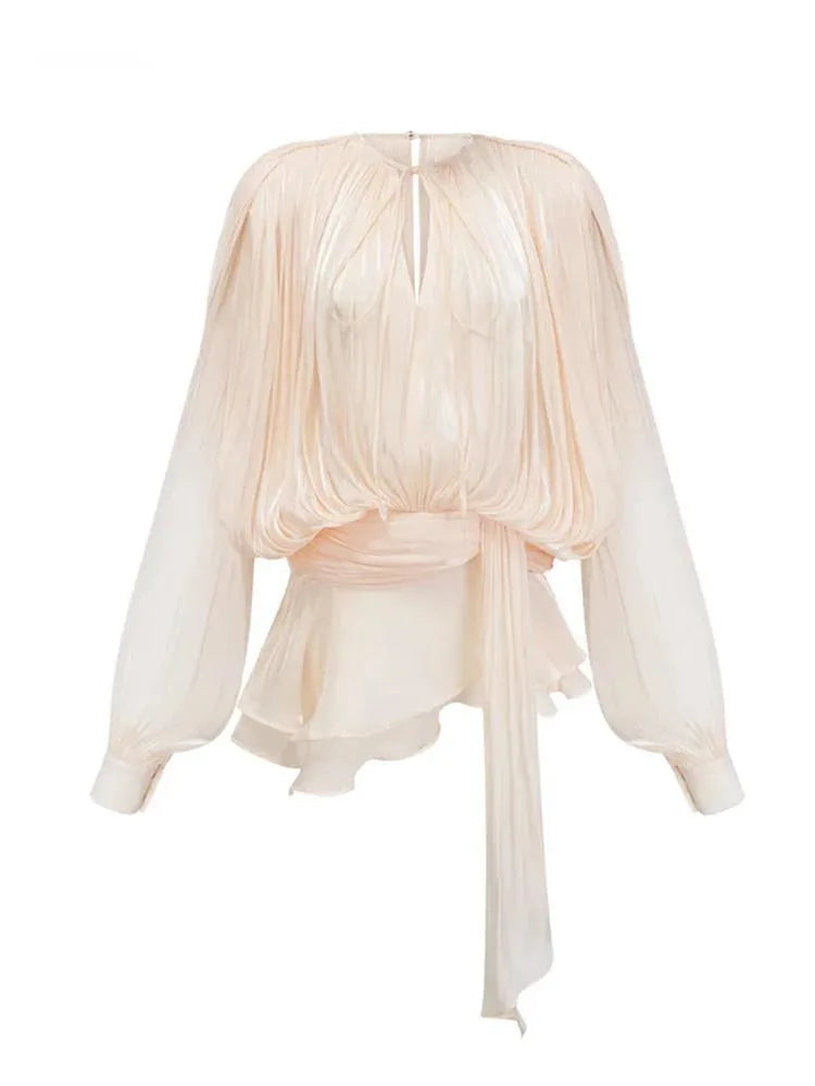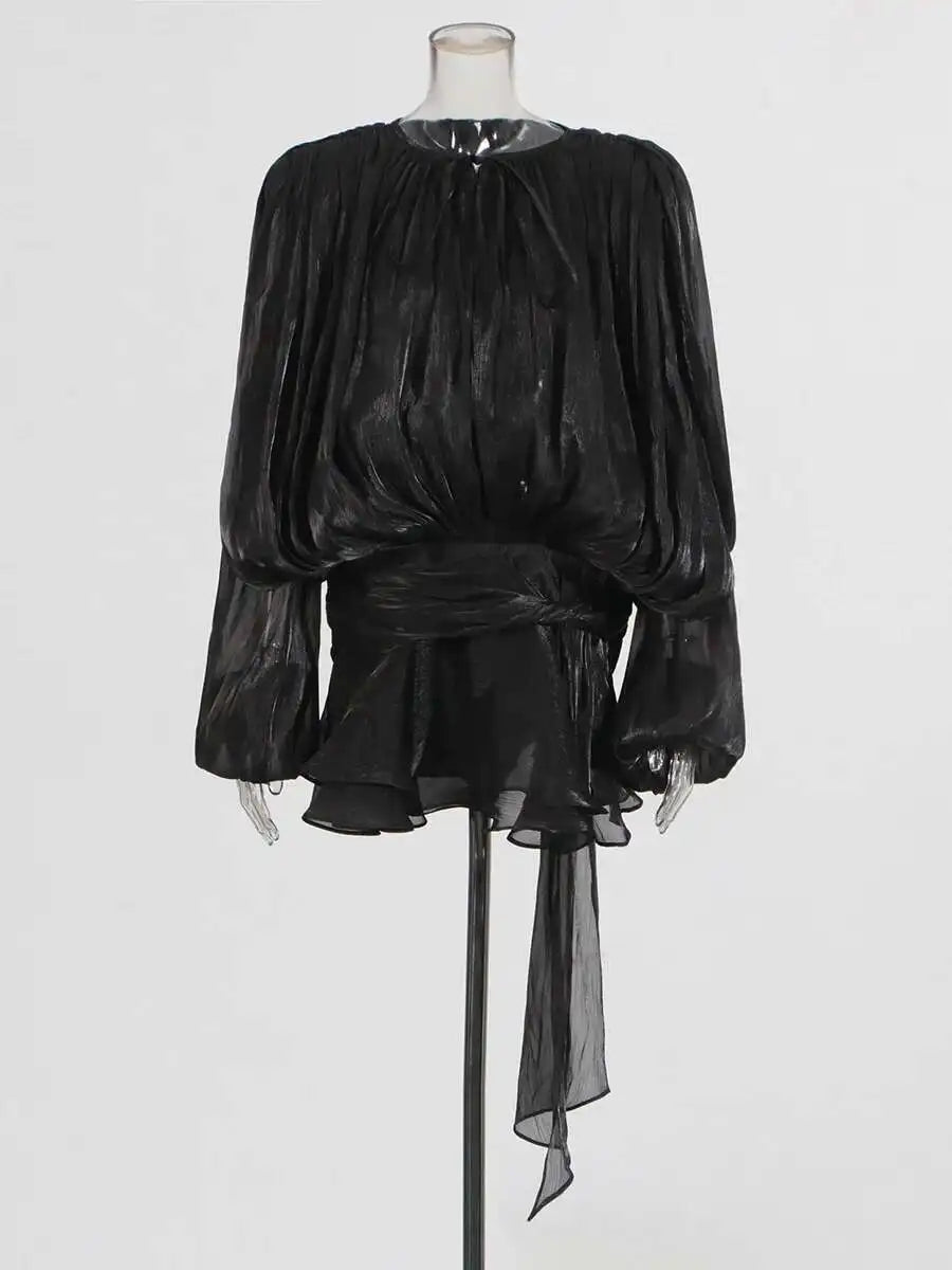 Fashion Elegant Ruched Mini Dress For Women Round Neck Lantern Long Sleeve High Waist Temperament Dresses Female Fashion P4CE